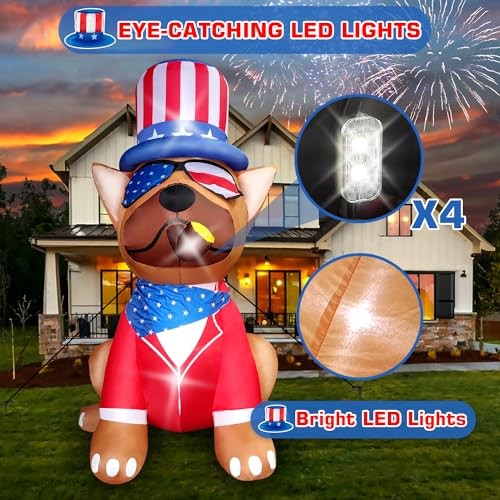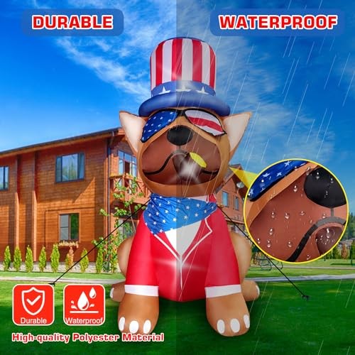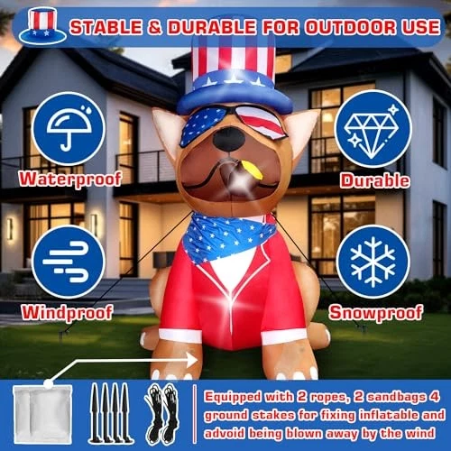This 5FT patriotic inflatable dog is such a fun and festive way to celebrate the 4th of July! It instantly grabs attention with its bright LED lights and self-inflates in seconds—super easy to set up. Perfect for yard decor, it adds a playful patriotic touch to any party. The quality is great, and it arrived fast. Highly recommend for a cheerful holiday display!