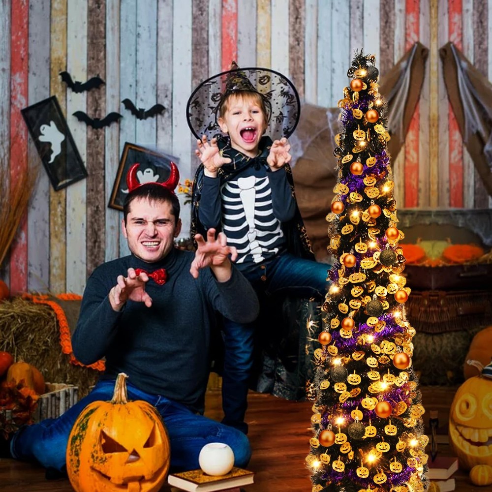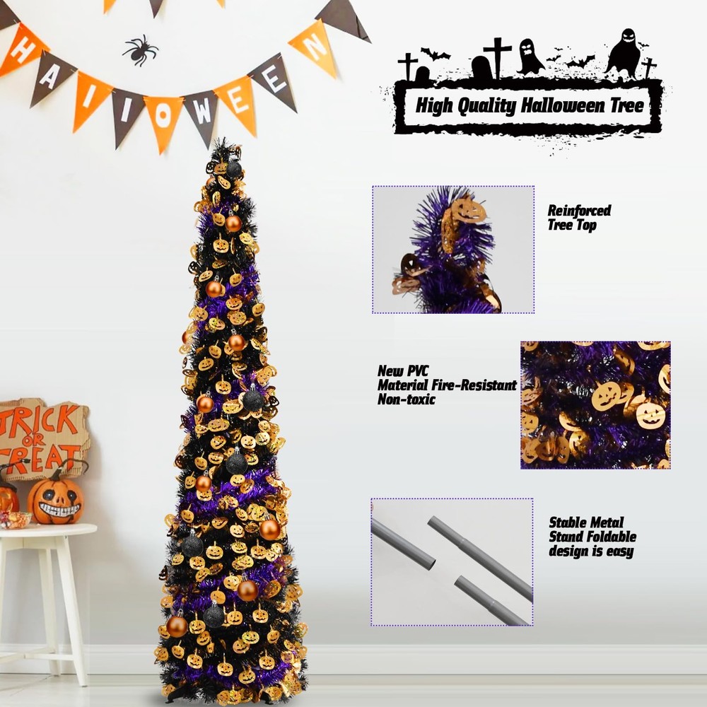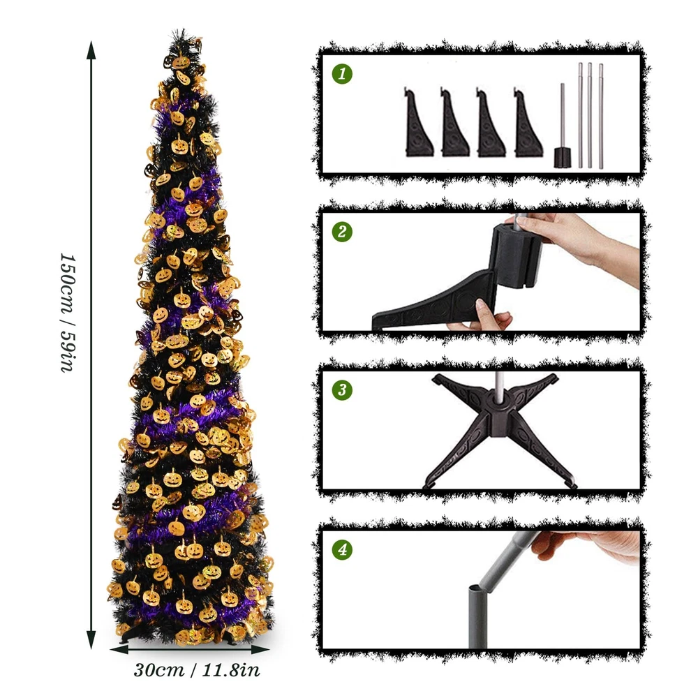 Christmas Halloween tree Effortless Setup & Storage: Designed with convenience in mind, this tree features a pull-up design that requires no tools—assembly takes just two minutes! The collapsible metal stand is not only sturdy but also reusable, making it easy to set up and pack away in a compact box for next year’s festivities. Versatile Holiday Decor: Standing at 5 feet tall, this tinsel Christmas Halloween tree pop up tree is the ideal addition to any space—whether it’s your porch, living room, bedroom, office, fireplace, backyard, terrace, or garden. It instantly elevates your holiday ambiance, lighting up any corner of your home with festive cheer. Space-Saving Design: With its slim profile, this tree fits seamlessly into small spaces, making it an ideal choice for those who want to maximize their living area without compromising on holiday cheer. Premium Quality: Crafted from high-quality PVC and metal, this pop-up Christmas Halloween tree pop up tree is built to last. The sturdy metal stand, coupled with a robust four-leg base made of thick plastic, ensures enhanced stability and durability. Thoughtful Gift: Surprise your friends or family with this unique tinsel tree! It's a delightful gift that’s sure to bring joy and laughter to any home, office, or outdoor gathering. Watch as everyone’s faces light up with holiday cheer when they see this shiny, charming tree surrounded by gifts.