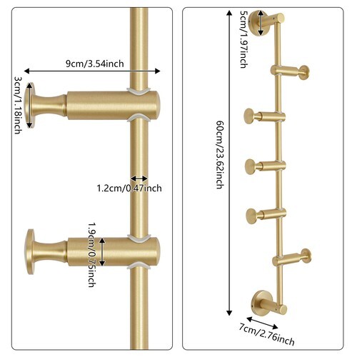 Specification Material: Brass Process: Anti-oxidation Color: Brassy Assembly Required: Yes Mounting Type: Wall-mounted Hook Rotatable Degree: 180° Hook Spacing Adjustable: Yes Total Load Capacity: About 20kg/44.09lbs Package Size: 64*12.5*9cm/25.2*4.92*3.54in Rack Size(H*L): 61*7cm/24.02*2.76in Hook Size(H*L): 3*8.5cm/1.18*3.35in Gross Weight: 1.2kg/2.65lbs Net Weight: 1.14kg/2.51lbs Package Included 1* Coat Rack Coat Rack with 5 Adjustable Hooks Wall Mounted Vertical Coat Hat Umbrella Hanger Description This coat rack combines functionality and design in a thoughtful way, offering a strong mix of practicality and style. Its sturdy construction ensures stability, while features like adjustable and rotatable hooks provide great flexibility for organizing items. The sleek, modern aesthetic fits well into different decor styles, making it both a useful storage solution and a stylish addition to your space. Key Features Build to Last: Made of premium brass with an anti-oxidation process, this product is wear-resistant, corrosion-resistant, and not easy to deform, ensuring a long service life. Powerful Function: Equipped with 5 hooks, it provides sufficient hanging space. Whether it's for coats, hats, bags, or other accessories, there's enough room to organize and store multiple items, helping to keep spaces tidy. Stable Structure: With 2 solid bases and premium materials, this product can handle a weight of about 44.09 lbs, making it suitable for relatively heavy clothing and reducing the risk of bending or breaking. Flexible Use: The 180° rotating hook provides great adaptability, allowing you to adjust angles for easier hanging and access. The spacing between hooks can also be adjusted, making it easier for you to hang items of different sizes and lengths and optimizing space layout. Space-Saving : By mounting directly to the wall, it makes use of wall space. Whether in a compact apartment or dorm room, it doesn't take up any floor space, making it a practical and space-efficient storage solution for home or personal space. Open Design : It allows you to effortlessly reach for your items and offers good ventilation to prevent odor and keeps the surrounding space pleasant. Aesthetically Pleasing : The elegant color and unique structure design give it a sleek and modern look that can blend well with different room decors in a home or storage area. Easy to Clean: Just a simple wipe can remove dirt and stains on the smooth surface, which is time-saving and effort-saving in maintenance. Easy Assembly : With its simple structure, you can quickly install the product and put it into use, which is convenient. Buy with Confidence: We stand behind all our guests and look forward to assisting you with your purchase. It is our pleasure to answer your confusion and questions. Details Smooth Edges: The rounded and smooth edges not only add to the aesthetics of the product but also improve the safety of use. Practical Washers: They can enhance the friction between the hooks and the rod, preventing them from slipping. Application It is suitable for entryways, bedrooms, cloakrooms, hallways, dressing rooms, etc. It can hold coats, hats, scarves, bags, umbrellas, belts, robes, and other accessories. How to Install Confirm the installation location and mark it with a marker (not included). Remove the fixed base of the product. Mark the drilling positions with a marker (not included). Drill holes at the perforation positions with an electric drill (not included). Knock in the expansion screws and trim the protruding silicone head (all not included). Align the holes and tighten the screws of the fixed base. Match the base with the fixed base and tighten the screws to fix the product. Specification Material: Brass Process: Anti-oxidation Color: Brassy Assembly Required: Yes Mounting Type: Wall-mounted Hook Rotatable Degree: 180° Hook Spacing Adjustable: Yes Total Load Capacity: About 20kg/44.09lbs Package Size: 64*12.5*9cm/25.2*4.92*3.54in Rack Size(H*L): 61*7cm/24.02*2.76in Hook Size(H*L): 3*8.5cm/1.18*3.35in Gross Weight: 1.2kg/2.65lbs Net Weight: 1.14kg/2.51lbs Package Included 1* Coat Rack Notes Please check the product size carefully before purchasing. Please note that clothing and other items are not included. Please allow the slight color difference caused by the shooting light and the 1-3 cm error due to manual measurement, and make sure you do not mind before ordering. Payment Delivery details Terms of sales About us Contact us Payment We accept ebay payment 。 Fees such as import duties, taxes are not included in the item price or shipping costs. These charges are the buyer's responsibility. Delivery details Shipping: 2-9 working days to: USA Terms of sales We maintain high standards of excellence and strive for hundred percent customer satisfaction. Feedback is very important to us. We hope that you contact us immediately before you give neutral or negative feedback, so that we can address your concerns. It is impossible to address issues if we do not know about them! About us Your satis faction is our ultimate goal. We work hard to earn your trust and future business. Our certified technicians have tested each item before shipping. The unit comes with 1 year limited warranty on all manufacturing defects. a) If you receive a defective item, you may return it or ask for a discount. Please contact us within 14 days after you receive the package. b) What you returned must be intact and in its original packaging as re? u. Customer is responsible for shipping costs of the returned item. c) We will cover the cost of shipping back t with the shipping rate indicated in the registration page. We will send you a new unit or refund the full payment you paid. Thank you. Contact us Business Hour Business Hour: Monday To Friday: 8:30 AM to 5:00 PM (Beijing China time) Due to time zones, our reply to your questions may not be immediately. But within above working time, we will reply your email within 24 hours. I