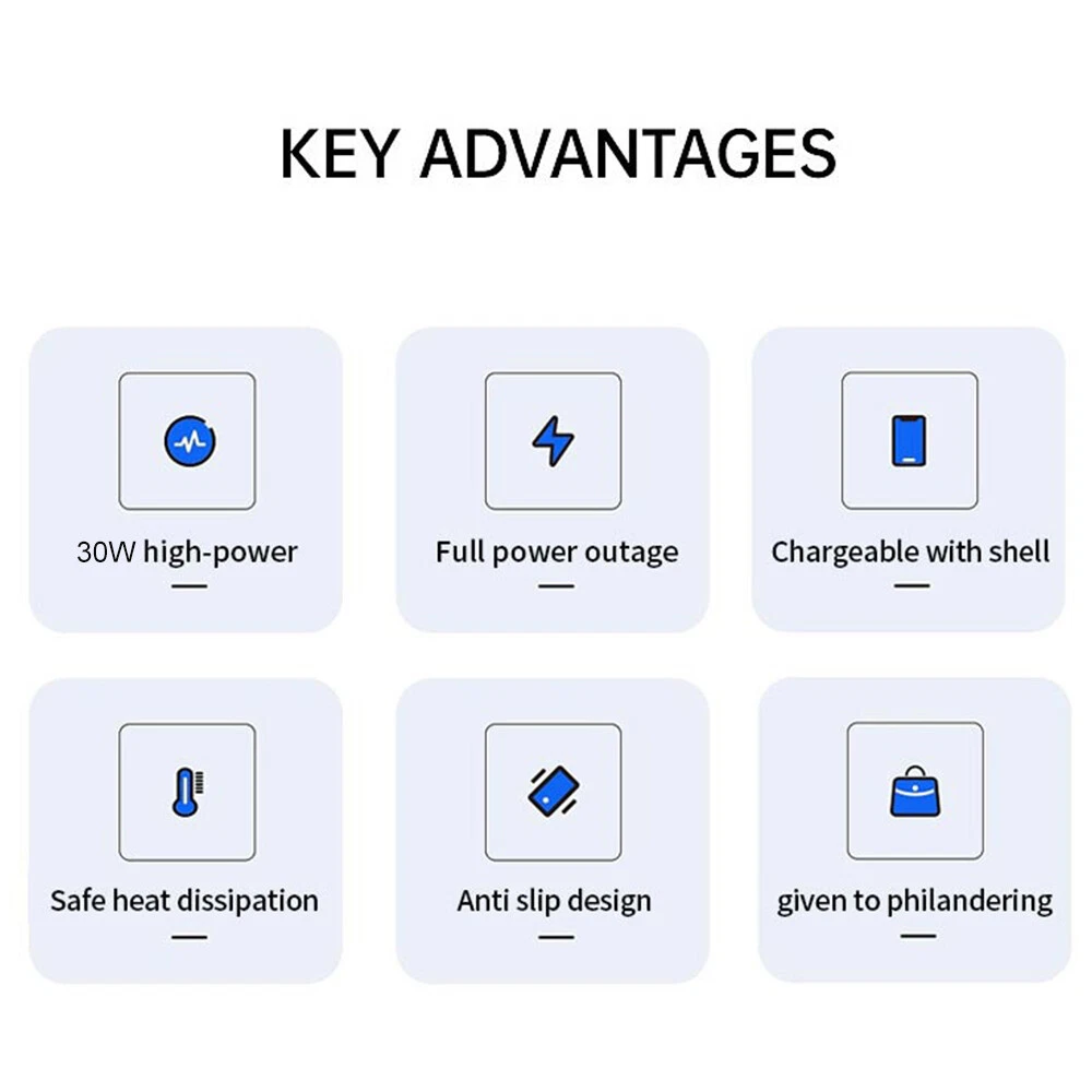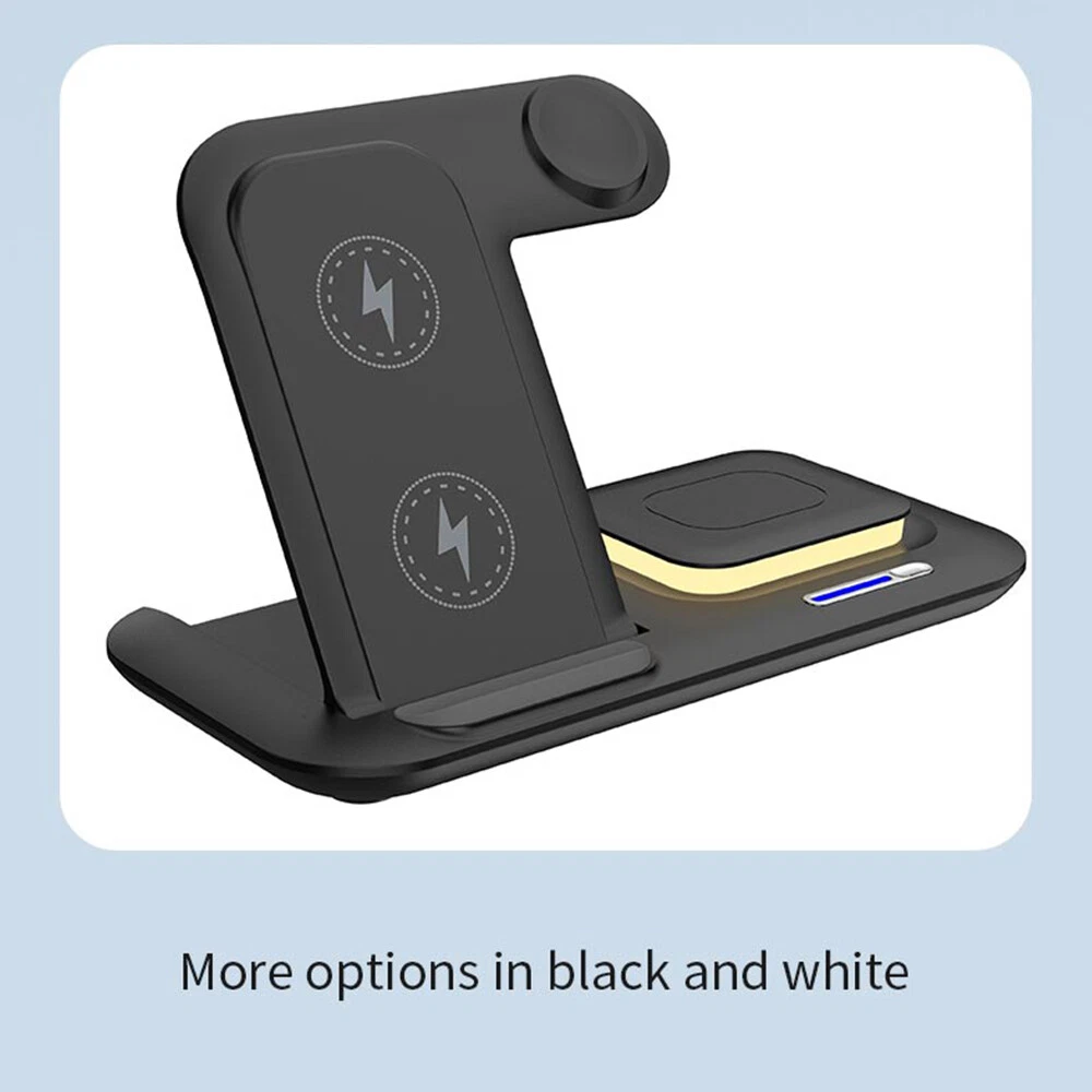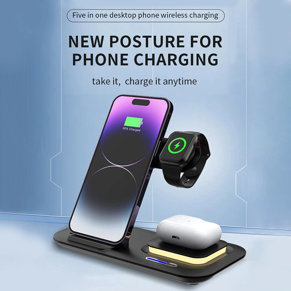 Picture Gallery Description Attention: 1. For a fast charging experience, please use a 9V-2A or 12V-2A power adapter (adapter not included). 2. The watch charger is only for Apple Watch , it can't charge Samsung Watch or other brand watches. Features: 1. [5-in-1 Charging Station] The wireless charger conveniently charges your iPhone, Apple Watch, AirPods, and other devices with wireless charging capabilities at the same time. The charging station makes it easy to charge your entire desktop and nightstand, so say goodbye to tangled cords. Compatible with iPhone 16, 15, 14, 13, 12, 11Pro/Max/Mini/Plus, X, XR, XS/Max, SE, 8/Plus, iWatch 8/7/6/5/4/3/2/SE, AirPods 2/3/pro/pro 2. 2. [Rapid Wireless Charger] Simply place your wireless device on the charging station, make contact and start charging steadily and efficiently. After many extreme tests and fan feedback, we use high power charging chips and world-class electronics to ensure the fast charging quality of the charging station. 3. [Safe Wireless Charger Holder] Wireless charging station with over-current protection, over-voltage protection, over-temperature protection and foreign object detection. The wireless charging station's reasonable internal circuit design prevents overcharging from damaging the device's battery and ensures safe and fast charging of the device. 4. [Foldable Travel Wireless Charger] The wireless charging station for a wide range of iPhone devices features a compact and foldable design that provides fast charging for your iPhone at home, in the office and on the go. The wireless charger can be used as a wireless charger stand with angle adjustment. The wireless charger can be used as a wireless charging pad to keep your phone charged by simply laying it flat. 5. [Fits Cases and Sleep Friendly Indicators] The wireless charger supports most cases up to 2 inches/5 mm thick, eliminating the need to remove the case when charging with the wireless charging station (excluding cases with magnetic or metal attachments). Place your device on the wireless phone charger to start charging, and the LED night light can be turned off manually. So you don't have to worry about the light affecting your sleep. Specifications: *Product Name: 5-in-1 Wireless Charger *Input power: 9V-2A/12V-2A *Mobile phone output: 5W/7.5W/10W/15W/30W *Watch output: 5W (max) *Headphone output: 3W (max) *Charging efficiency: ≥75% *Product material: ABS *Product color: black/white Package List: 1 * 5-in-1 wireless charger 1 * Type-C cable Attention: 1. Not included not include the power adapter! 2. Item is limited to charger only, not including headphones, watches! 3. Due to manual measurement, please allow a difference of 1cm error! 4. Depending on the light color or monitor hue may vary! Shipping Policy Payment Policy Return Policy Shipping Policy 1. We only ship to confirmed PayPal addresses. 2. Economy Shipping, with no tracking number. Standard Shipping, with tracking number. Express (Expedited) Shipping, with tracking number. 3. Economy shipping needs 2-5 weeks to arrive mostly. In rare case, it can take up to 6-8 weeks. It depends on your location and local postal service, as well as the weather condition along the shipping. 4. If you need a faster delivery time, you could choose Express (Expedited) Shipping. If you need a tracking number, you could choose Standard Shipping. Payment Policy We accept PayPal only. We only ship item to your PayPal verified address. Please pay attention that import duties, taxes and charges are not included in the item price or shipping charges. These charges are the buyer's responsibility. Please check with your country's customs office to determine what these additional costs will be prior to bidding/buying. Return Policy 1. We offer 60 day money back or replacement guarantee. In addition, it allows customers to return new and unused products in their original factory condition for any reason within 60 days from the date of purchase. 2. Although we test each item and they are packed professionally, few item (less than 0.1%) might be damaged during the shipping. Please feel free to contact us within 4 days after you receive your package about replacement. 3. If you don't receive items over 35 days, please make sure to contact us before leaving any neutral or negative feedback. We'll try our best to help you solve the problem. If we authorized the return, customers will get an email with instructions for returning the item. Email will be replied within 24 hours on Chinese business hours. On Dec 4, 2024 at 23:02:31 PST, seller added the following information:
