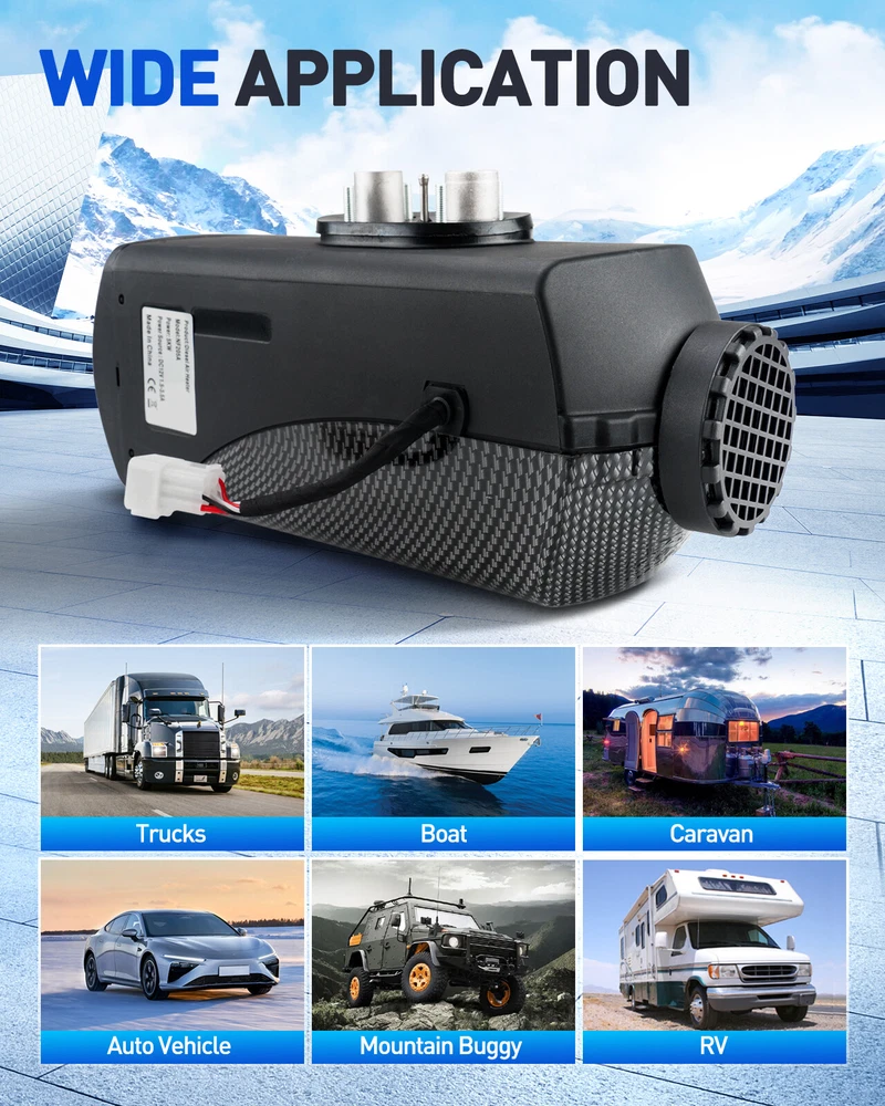 Hot Selling Radiator Replacement for 2009 2010 2011 2012-2017 Toyota Corolla 1.8L for 13106 USD64.32 Starter High Torque For 1989- 1994 1995 Ford F150 F250 4.9L 5.0L 5.8L 3205 3268 USD57.88 Starter Mini For Chevy SBC 350 400 153 Delco Hitachi 168 T 4HP 18492 High Torque USD89.99 Radiator For 2008-2017 Mitsubishi Lancer Outlander 2.0L 2.4L 3.0L TYC2979 2979 USD58.38 Floor Mats Liners for Ford Explorer 7 Seat All-Weather 2015 2016 2017 2018 2019 USD84.99 New Radiator for Honda Odyssey 2011 2012 13 14 2015 2016 2017 3.5L V6 CU13208 USD64.99 New K1 9006 HB4 LED Headlight Bulb Conversion Kit Low Beam 6000K 60W 6000LM USD14.99 5x5 to 5x5.5 Wheel Adapters 1.25" 5x127 to 5x139.7 1/2x20 Studs for Wrangler 4 USD79.53 2.5 Inch 12V Marker Lights Trailer Light 2 LED (20Pcs 10 Amber and 10 Red) USD8.99 Headlight Set Pair Headlamp For 2010 2011 2012 2013 Mazda 3 Halogen USD115.99 DESCRIPTION PAYMENT SHIPPING RETURN POLICY CONTACT US 5KW 12V Diesel Air Heater Parking Heater For Trucks Buses Cars Auto Vehicles RVs Features: High comfort and low noise: The fast-heating 12 V 5 kW diesel-air heater can quickly warm up the engine and cab. Noise is also effectively reduced by fan speed control, low noise fans and fuel pumps. Enjoy a warm and quiet place on a cold winter day. Efficient fuel pumps: Our diesel heating systems are very energy efficient, with fuel consumption as low as 0.11-0.51 (L/H)/ 0.029-0.135 (Gal/H). In addition, the ECU precisely controls the injection frequency and intake volume of the fuel pump to extend its service life. LCD thermostat monitor: Through the digital LCD monitor, you can clearly see the working status of the diesel air heater. You can also pre-set the heating switch time with the timed heating function. Robust aluminum construction: The combustion chamber, bottom and cooling scale are made of sandblasted aluminum. This diesel heater is integral in design, with uniform heat dissipation and high heat resistance. Easy installation: Our floor heaters come with a complete assembly package, including key components, piping and tools. It is easy to use and flexible to install. When the vehicle is replaced, it can be disassembled and installed in a new car. Diesel vehicles and interiors: Bus heating is commonly used for cabin heating of various diesel vehicles such as cars, caravans, buses, vans, trucks, boats, etc. It is also suitable for homes, warehouses, factories, offices and other indoor areas. Two-way remote control: (1) Remote pairing process : - First move the receiving component to be coupled to the waiting pairing state. - Then press the button on the remote while confirming the build. The remote control appears in a queue for pairing interfaces. - Remote control and switch start automatic pairing process. After the code is successfully synchronized, it automatically exits the code pairing interface and displays normal working parameters. - If the code fails, it does not switch to the normal display state of the working parameters. If the remote code is not received after the timeout, the code match status automatically exits. (2) Switch the temperature control mode: When selecting the temperature control mode remotely, press on/key at the same time to switch to the automatic temperature control mode and display the temperature. Pressing the button again will switch back to manual mode. In manual mode, the temperature is manually controlled by the fuel pump frequency that controls the amount of oil. Working state setting: The working state of the heater can be adjusted at any time by remote control. The method is as follows: - Open the button: Increase the pump oil volume (manual temperature control mode) or increase the set temperature to increase the output temperature of the heater. - Lower button: Reduce pump oil (manual temperature). Adjust mode or lower the set temperature to reduce the initial temperature of the heater. Bidirectional receiver Description: (1) On/Off button: Long press the on/off button: Light up under the switch button. If it's on, it means it's on, and if it blinks, it means there's an error. - Start: Press and hold the I/O key when the operating voltage meets requirements. (2) Manual refueling: In the off state, press the on/off button continuously and quickly 5 times to start the manual pump. Package Included: 1 x Parking Heater 1 x Oil Pump 1 x 10L Fuel Tank 1 x LCD Switch 1 x Remote Control 1 x Silencer 1 x Oil Filter 1 x Air Filter 1 x Air Inlet Pipe 1 x Air Outlet Pipe 1 x Exhaust Pipe 1 x Tubing 1 x Mounting Plate 1 x Vent 1 x Oil Pump Clip 1 x T Piece 1 x Wiring Harness 1 x Installation Kit 1 x English Instruction As the picture show Notice: *Due to the manual measurement and different measurement methods, please allow 1-3cm deviation. *Professional installation is highly recommended *For any needs please contact us. Item Specifics Brand KAC Manufacturer Part Number AUP291326 Universal Fitment Yes Manufacturer Warranty 5 Years UPC 679944291326 Type Diesel Air Heater Rated Voltage 12V Part Type Air Diesel Heater Fuel Diesel Color Black Fitment Type Direct Replacement Material Metal & Plastic Car Air Conditioning Typ Heating Switch LCD Application Cars, Buses, Rvs, Trucks, Engineering Vehicles Placement on Vehicle Indoor Working Modes Air condition mode & Heater mode Feature Automatic Room Temperature Control, Safe Fuel Consumption 0.11-0.51 (L/H) System Continuous Monitoring, Diagnostic System Complete combustion rate 100% Power 5KW Working temperature of the Heater -40℃~+, 50℃/-40℉~+, 122℉ Working temperature of the Oil pump -40℃~+, 40℃/-40℉~+, 104℉ Operating Voltage Range 10.5-16/21-32V Tank Capacity 10L/2.6 Gal Motor Size (L x W x H) 15.2" x 5.5" x 5.5"/38.6 x 14 x 14 cm Tank Size (L x W) 15.7" x 16.8"/39.9 x 42.7 cm Payment Shipping Return Policy Contact Us About Warranty 1) we accepts all major credit cards via PayPal: MasterCard, Visa, American Express and Discover. 2) We will only ship to the confirmed PayPal shippin