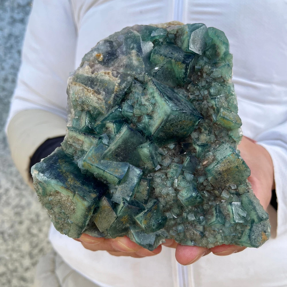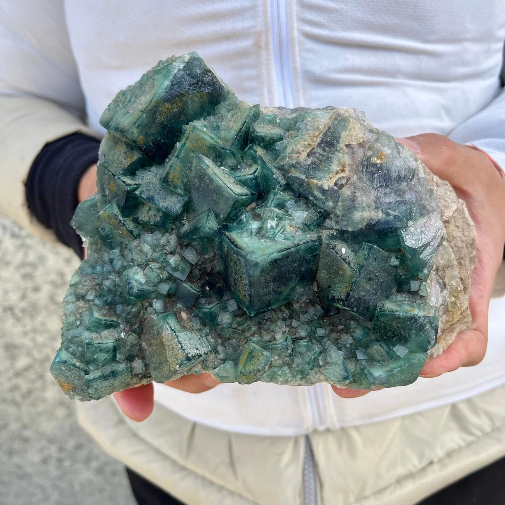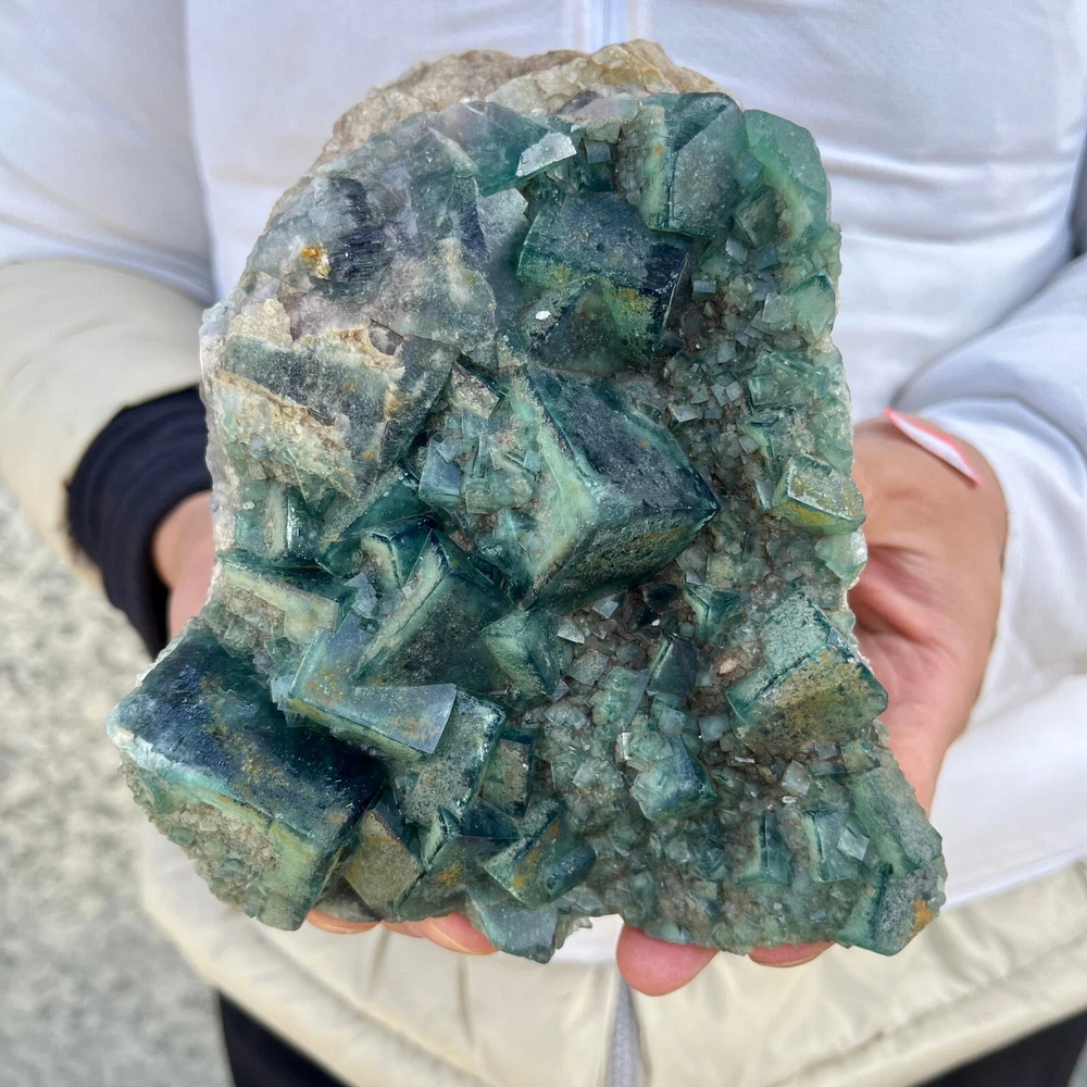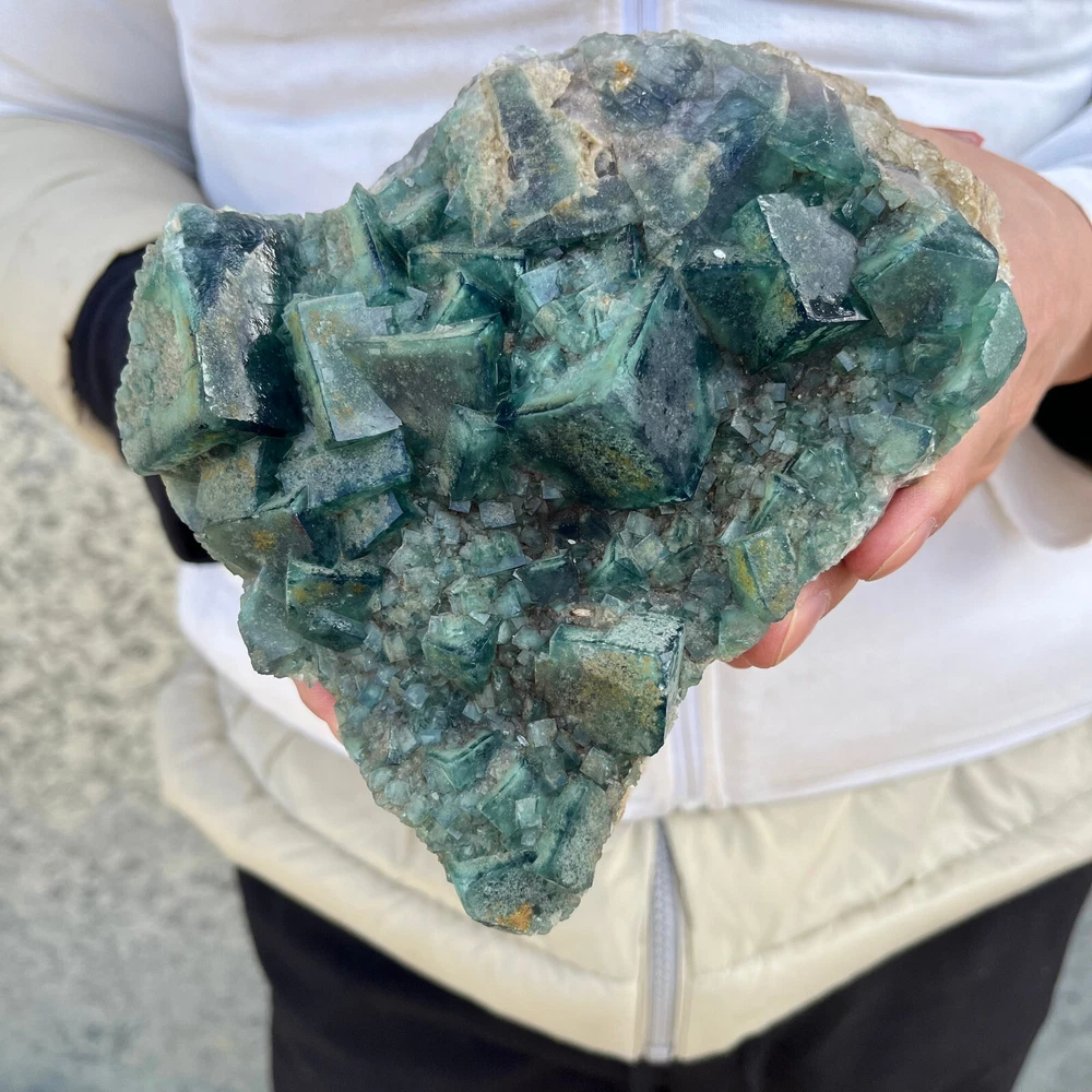 $ 169.491.9LB Natural Green Fluorite Cube Quartz Crystal Cluster Mineral Specimen