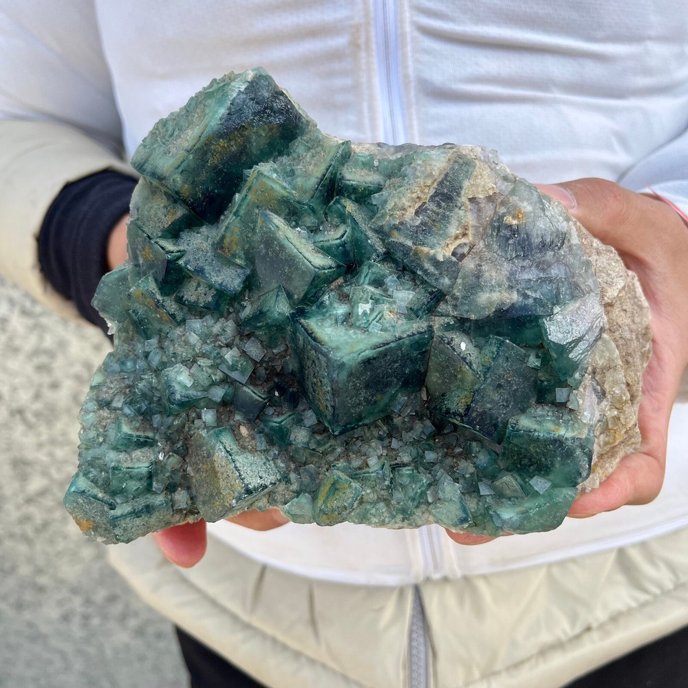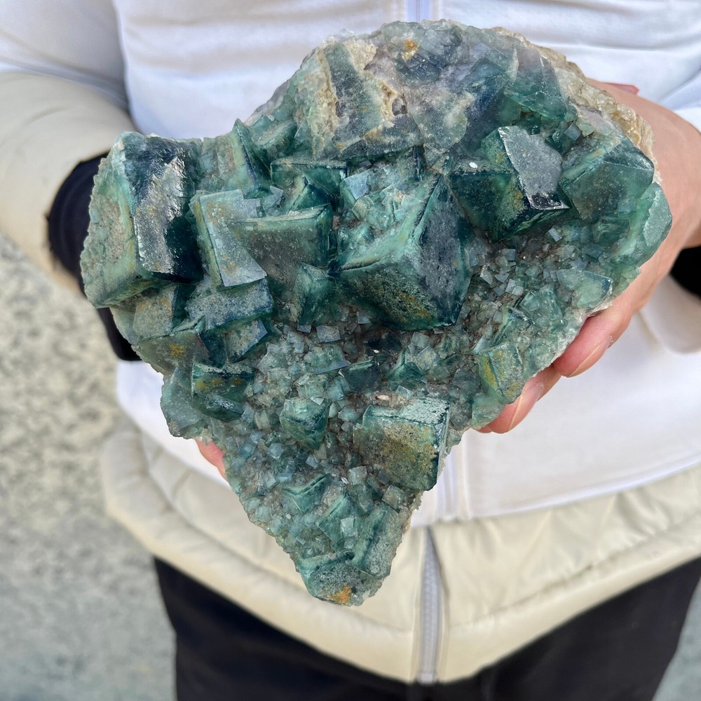 $ 44.882.9LB NATURAL Green Cube FLUORITE Quartz Crystal Cluster Mineral Specimen
