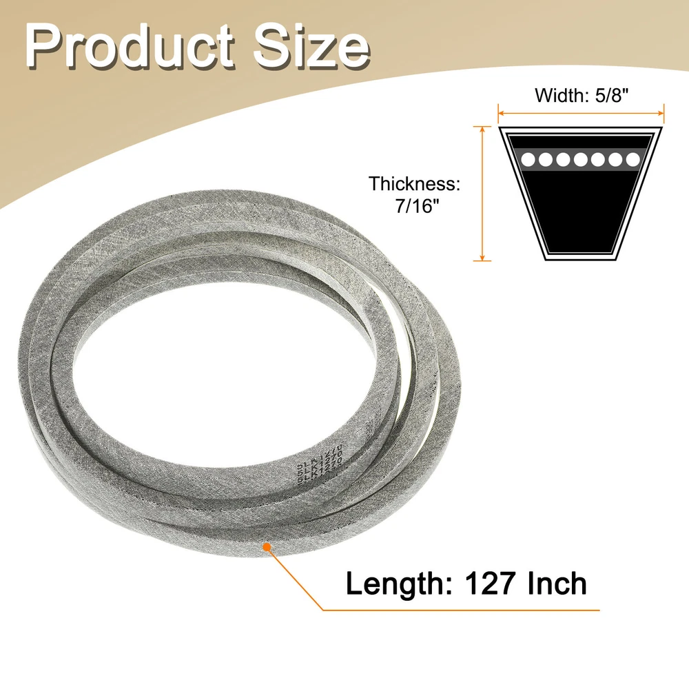 Document Description:Material - The lawn mower drive belt is made of aramid fiber material, which is wear-resistant, heat-resistant, and not easy to abrasion, ensuring durability and smooth operation, extending the life of the lawn mowerFeature - The drive belt has strong adhesion to tensile members and fabrics, which can reduce the risk of belt flipping or rolling, and can withstand frequent starts and stops, helping to provide reliability for lawnmowers and maintain optimal performanceEasy to Install - Select the right size deck belt to replace the lawn mower small engine drive belt, which is easy to install and is a good tool for maintaining or restoring equipment working conditionFits Models: for AYP Most YTH22V42LS, YTH23V42LS, YTH24V42LS and YTH2242TFSpecification:Belt Type: 5LKV Angle: 40Material: Aramid FiberColor: GrayLength: 127 InchWidth: 5/8 InchBelt Thickness: 7/16 InchPackage Contents: 1Pcs x Deck Belt 5LK1270 5/8" x 127" Lawn Mower Deck Belt Replacement, Gray Description: Material - The lawn mower drive belt is made of aramid fiber material, which is wear-resistant, heat-resistant, and not easy to abrasion, ensuring durability and smooth operation, extending the life of the lawn mower Feature - The drive belt has strong adhesion to tensile members and fabrics, which can reduce the risk of belt flipping or rolling, and can withstand frequent starts and stops, helping to provide reliability for lawnmowers and maintain optimal performance Easy to Install - Select the right size deck belt to replace the lawn mower small engine drive belt, which is easy to install and is a good tool for maintaining or restoring equipment working condition Fits Models: for AYP Most YTH22V42LS, YTH23V42LS, YTH24V42LS and YTH2242TF Specification: Belt Type: 5LK V Angle: 40 Material: Aramid Fiber Color: Gray Length: 127 Inch Width: 5/8 Inch Belt Thickness: 7/16 Inch Package Contents: 1Pcs x Deck Belt Hot Item Payment 1.We accept eBay payment . 2.Payment must be received within 7 business days of auction closing. Shipping 1.We ship to your eBay or Paypal address. Please make sure your eBay and Paypal address is correct before you pay. 2.Items will be shipped within 1-3 business day when we received payment. 3.Delivery time depends on destination and other factors. Description Policy 5LK1270 5/8" x 127" Lawn Mower Deck Belt Replacement, Gray Description: Material - The lawn mower drive belt is made of aramid fiber material, which is wear-resistant, heat-resistant, and not easy to abrasion, ensuring durability and smooth operation, extending the life of the lawn mower Feature - The drive belt has strong adhesion to tensile members and fabrics, which can reduce the risk of belt flipping or rolling, and can withstand frequent starts and stops, helping to provide reliability for lawnmowers and maintain optimal performance Easy to Install - Select the right size deck belt to replace the lawn mower small engine drive belt, which is easy to install and is a good tool for maintaining or restoring equipment working condition Fits Models: for AYP Most YTH22V42LS, YTH23V42LS, YTH24V42LS and YTH2242TF Specification: Belt Type: 5LK V Angle: 40 Material: Aramid Fiber Color: Gray Length: 127 Inch Width: 5/8 Inch Belt Thickness: 7/16 Inch Package Contents: 1Pcs x Deck Belt Hot Item Payment 1.We accept eBay payment . 2.Payment must be received within 7 business days of auction closing. Shipping 1.We ship to your eBay or Paypal address. Please make sure your eBay and Paypal address is correct before you pay. 2.Items will be shipped within 1-3 business day when we received payment. 3.Delivery time depends on destination and other factors.