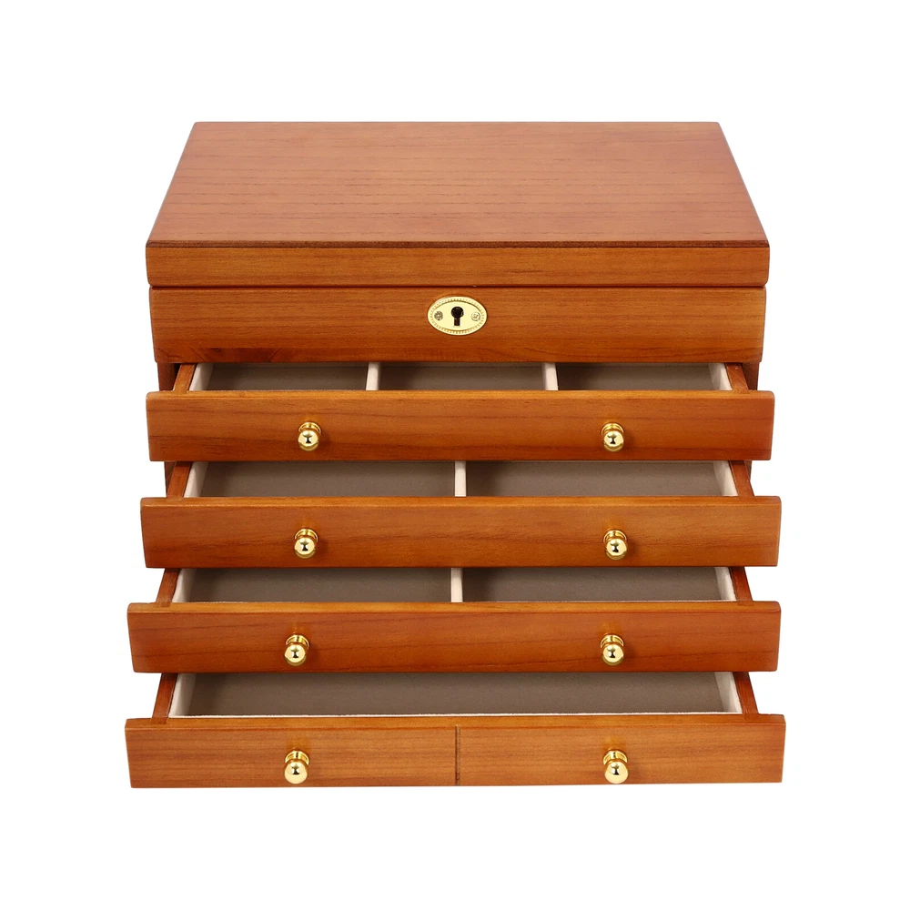 5-Layer Large Wooden Jewelry Storage Box Ring Necklace Organizer with 4 Drawers Jewelry Box Wooden for Wowen Gifts 5-Layer Large Organizer Box with 4 Drawers US ??Description ✨_Is your jewelry often cluttered and impossible to find? Do you have too much jewelry without a large enough storage box? If you answered yes to any of these questions, then this four-tier jewelry box is for you. The four-tier storage design allows you to store many different types and sizes of jewelry. The wood material makes this jewelry box more vintage and elegant, not only to help with storage but also as a decorative piece to keep in your home. ?? Specifications Material: Sycamore Wood + Metal+Flocked Fabric Color: Walnut Color Number of Drawers: 4 Closure Type: Key Lock Handle Placement: Sides Hook Material: Hardware Gross Weight: 3.5kg/7.7lbs Net Weight: 3kg/6.6lbs Package Size: 35*26.5*28cm/13.8*10.4*11inch Product Size: 29*19* 21.5cm/11.42*7.48*8.46inch Package Included 1* Wooden Jewelry Box 1* Key ?? Key Features High-quality Materials: The jewelry box is made of sycamore wood with veneer and lacquer treatment, which is not only very durable but also attractive. The interior has a soft long flocked cloth as a lining to keep your jewelry from being scratched and crushed. Beautiful Appearance: The production process of the jewelry box retains the natural color of the wood, the surface is polished and smooth and the texture is visible. Large Capacity: This jewelry box has 4 drawers. Each of these drawers contains a different number of compartments to store many different types and sizes of jewelry. Full Pull-out Drawer: The drawer of this jewelry box is a full pull-out design, which can display all the jewelry and make it more convenient for you to get it. Safety Latch: The safety latch on the lid is designed to keep this item securely locked. This will protect your rings, earrings, necklaces, watches, and other jewelry accessories. Metal Hooks: This jewelry box has a layer of metal hooks specifically for necklaces, so you can hang your necklaces inside to prevent them from piling up and tying up, and such an intuitive design makes it easy to access. -------------------------- ?? ?? SEE MORE ?? ?? ----------------------- Fine Workmanship : From the smooth surface to the soft inner lining, even the sturdy locks and hooks are finely crafted to give you a better user experience. Reasonable Layout: Each level is divided into compartments of different sizes to facilitate a better display of your jewelry and easy access, especially the first layer has a dedicated area for storing rings, so you can store different types or sizes of jewelry separately. Ideal Gift : This jewelry box has a unique design with a beautiful appearance and a large capacity with practical features. It is an ideal gift for Valentine's Day, Mother's Day, Thanksgiving, Christmas, birthdays, and weddings. ?? Details High-quality Hinges: The hinge is made of high-quality hardware and is strong and durable. It has been tested many times to open and close, so you can use it with no worries. Exquisite Handles: Each compartment has a small and delicate handle for easy pulling out. Flocked Fabric: The lining of this jewelry box is made of soft, high-quality flocked fabric that is comfortable to the touch. It can protect your jewelry well from being crushed and scratched. Storage Pocket: A small pocket underneath the metal hook adds storage space to the jewelry box. You can also put the lower part of the necklace hanging from the hook into the pocket. Side Metal Handles: This jewelry box has polished and smooth metal handles on both sides, making it easy to move the jewelry box. ?? Application It is suitable for organizing various jewelry including sunglasses, watches, hairpins, earrings, rings, bracelets,watches, and necklaces. Notes Please allow the slight color difference caused by the shooting light and 1-3cm error due to manual measurement, and make sure you do not mind before ordering. Notes:2. The drawer of the product is movable. Please manually adjust the placement position of the drawer for neatness and beauty. Payment Delivery details Terms of sales About us Contact us Payment We accept ebay payment 。 Fees such as import duties, taxes are not included in the item price or shipping costs. These charges are the buyer's responsibility. Delivery details Shipping: 2-9 working days to: USA Terms of sales We maintain high standards of excellence and strive for hundred percent customer satisfaction. Feedback is very important to us. We hope that you contact us immediately before you give neutral or negative feedback, so that we can address your concerns. It is impossible to address issues if we do not know about them! About us Your satis faction is our ultimate goal. We work hard to earn your trust and future business. Our certified technicians have tested each item before shipping. The unit comes with 1 year limited warranty on all manufacturing defects. a) If you receive a defective item, you may return it or ask for a discount. Please contact us within 14 days after you receive the package. b) What you returned must be intact and in its original packaging as re? u. Customer is responsible for shipping costs of the returned item. c) We will cover the cost of shipping back t with the shipping rate indicated in the registration page. We will send you a new unit or refund the full payment you paid. Thank you. Contact us Business Hour Business Hour: Monday To Friday: 8:30 AM to 5:00 PM (Beijing China time) Due to time zones, our reply to your questions may not be immediately. But within above working time, we will reply your email within 24 hours. If it's non-workdays, please kindly be patient and wait till Monday. Please contact us with ebay message. Please feel free to contact us if you have any questions. Monday To Friday: 8:30 AM to 5:00 PM (Beijing China time) Due to time zones, our reply to your questions may not be immediately. But within