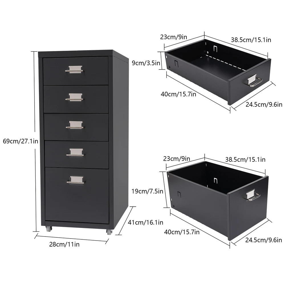 EAN: Does not apply Product Line: N/A Material: Cold Rolled Steel, Aluminum Alloy, Rubber Item Width: 11.6"W Handle Finish: Aluminum Alloy Color: Black Item Height: 27.1"H Assembly Required: Yes Style: Contemporary/Modern Department: Adults UPC: Does not apply Room: Bedroom, Dining Room, Hallway, Home Office/Study, Living Room, Utility/Laundry Room Type: Chest of Drawers Features :: It Is Easy To Install,reliable quality Handle Material: Does not apply Item Depth: 15.7IN Model: N/A Item Width (Interior): 15.7IN Brand: Unbranded Mounting: Free Standing Item Height (Interior): 3.5IN gtin13: Does not apply Item Length: 11"D MPN: Does not apply Warranty: 5 Years Dimension: 28*41*69cm/11*11.6*27.1in Item Length (Interior): 9.6IN Additional Parts Required: No Number of Drawers: 5