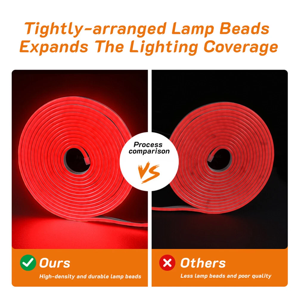 100/200/300LED Solar Christmas Decor String Light Waterproof Copper Wire Lights 13.78 USD Free shipping 20M RGB Christmas LED Light Strip SMD 3528 Remote Strip Lights Tree Yard Decor 25.92 USD Free shipping 13ft Christmas Snowflake Led String Light Curtain Fairy Lights Xmas Tree Decor 13.55 USD Free shipping 8PCS Christmas Tree Decor Meteor Shower Rain Lights 72LED Fairy String Lights 13.46 USD Free shipping 100~300LED Christmas Solar String Light Garden Yard Decor Waterproof Wire Light 11.75 USD 1.99 USD 12V Flexible LED Neon Light Strip Waterproof Atmosphere Light Christmas Decor US 17.63 USD Free shipping 5/10M Flexible LED Strip Christmas Decor Waterproof Neon Silicone Tube LED Light Features: *1. 120pcs of 2835 LED lamp beads are tightly arranged on every 1 meter of the strip to improve the brightness and light pattern. *2. The upgraded LED strip light has higher brightness, and the 120 ° projection range provides a large lighting coverage. *3. 12V neon light strip has uniform light transmission, bending resistance, water resistance and heat resistance. *4. You can cut it every 2.5cm, and bend or wind it according to your needs. *5. Suitable for cars, advertising signs, letter signs, display signs, outlines, indoor and outdoor lighting. Description: *1. Bead Type: 2835 *2. Lamp Bead Quantity: 120pcs/meter *3. Voltage: 12V *4. Lumens: 26lm/lamp bead *5. Waterproof: IP65 *6. Strip Size: 6x12.5mm *7. Strip Length: 1m/5m/10m *8. Color: as shown *9. Beam Angle: 120 ° Package Includes: 1 x LED Neon Light Strip
