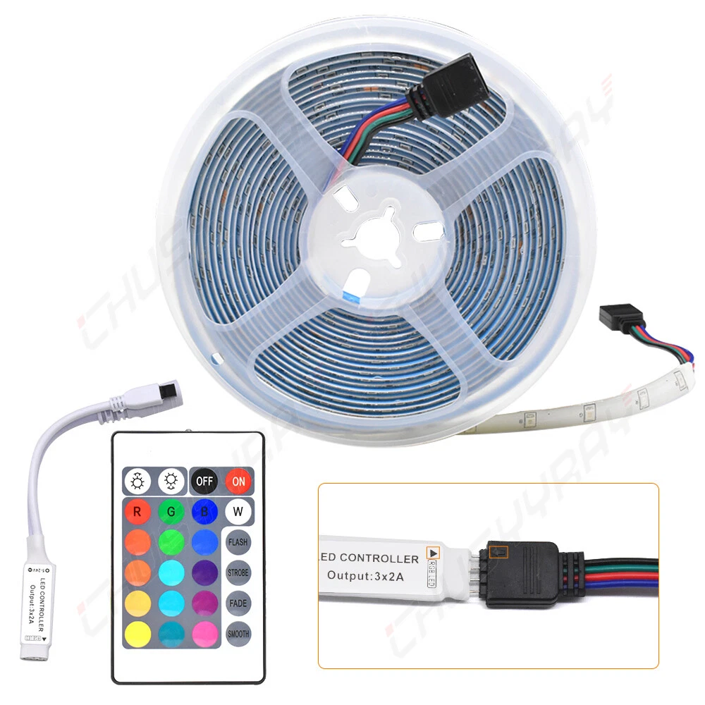 SMD 2835 RGB Led Strip Light (This package does not include power supply ) (Please contact us if you need power) Description: Color: RGB (Red Green Blue) Flash SMD View angle: 120° Length: 5 m Cuttable: Every 3 LEDs Supply voltage: DC 12VOperating temperature: -20 to 60 degree LED quantity: 30LEDS/m, 150 LEDs Lifetime: 50,000+ hours Working Temperature: -20°C-60°CInput/Output: 12V Product Features: Maintenance free, easy intallation Ultra-bright but running at low temperature 6 DIY keys for memorizing 6 Color settings Long life 50,000 hours,Low power consumption Ultra-bright but working at insufficient temperature Self-adhesive back with Adhesive tape for secure and easy application Every 3-LED cutable without damaging the rest strip ,according to your requirement Superb 2835 SMD LED, High Intensity and Reliable.Fully smooth and even diffuse light, solving the uneven light problem Ribbon Flexible curve around curves,Flexible LED strip 8 Light Pattern: Quick / Slow / Auto / Flash / 7 color fade change / 3 color fade change / 7 color jumpy change / 3 color jumpy change R / G / B increase and decrease control Application: Ideal for decoration of construction lines, landscape lighting, theme entertainment,Holiday sculpture of light, decorative figure, active signs, displays, showcasesAnd showcases, bar, disco, street, sidewalk, bridge, park, porch, staircase, railing, ceiling, Package includes: 1x Waterproof 5M Light Strip 1x LED Strips Wireless Remote Control System (This package does not include power supply) On Dec 16, 2024 at 22:19:24 PST, seller added the following information: