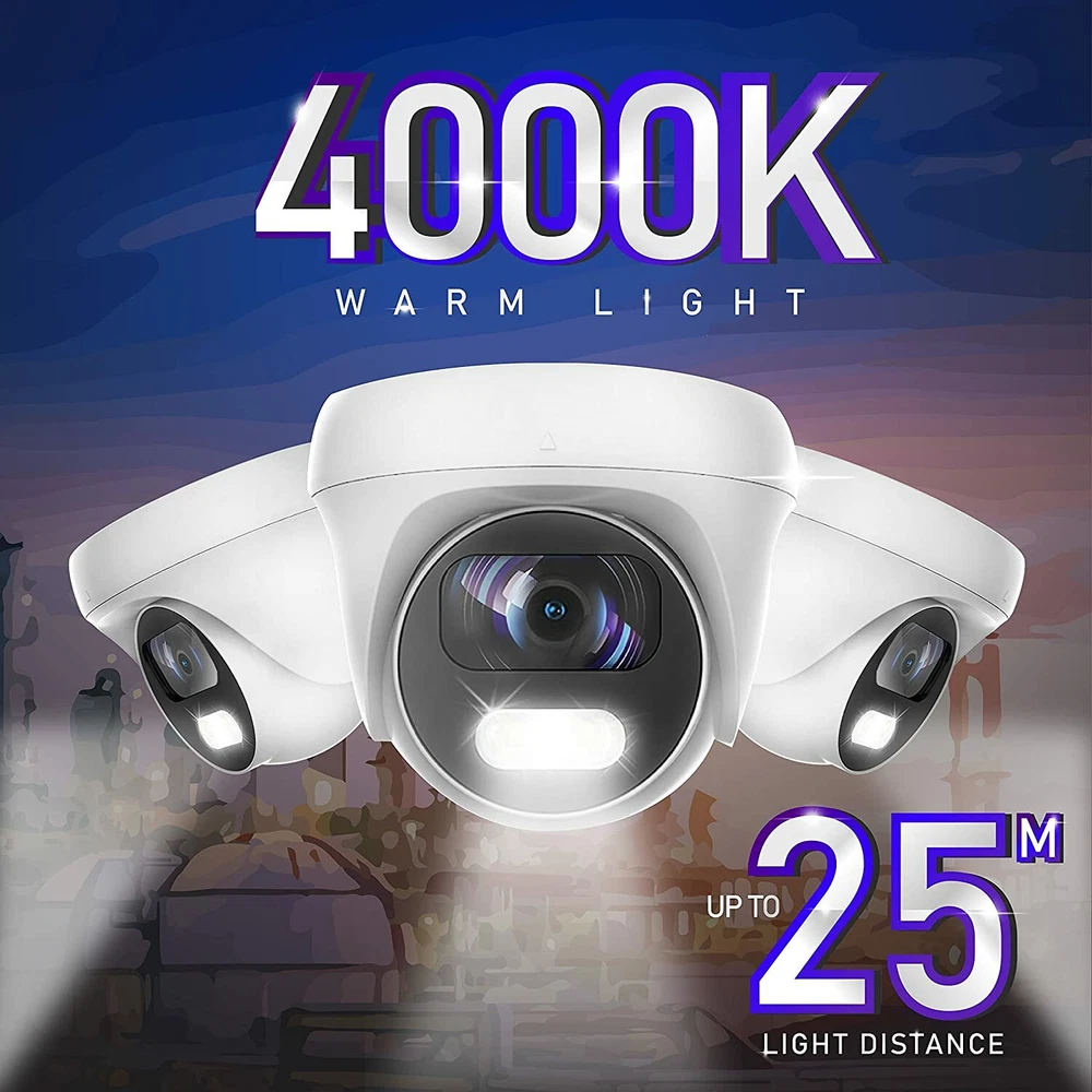 5MP ColorVu Full Time Color at Night Outdoor Turret Dome Style Camera 4in1 TVI/AHD/CVI/CVBS 2.8mm 24/7 All time Color at Night time Description This HD Camera is 4 in 1 Turret 5MP Full Color at night (24/7 Color) This Camera Support HD AHD TVI CVI Analog (CVBS) System This Listing is for · 5 M Warm Light Full Color • 1/3"CMOS Sensor • AHD/CVI/TVI/CVBS 4 IN 1 • 2.8mm Fixed Lens • Suport Warm white (4000K),up to 25m • IP67 Outdoor, OSD&UTC Support Model NO. 5MP Color Night Video Output Mode AHD/TVI: 5M@20fps/12.5fps, 4M@30fps, 2M@30fps; CVI: 4M@30fps, 2M@30fps AHD/TVI: 5M@20fps/12.5fps, 4M@30fps, 2M@30fps; CVI: 4M@30fps, 2M@30fps Camera Image Sensor 1/3" CMOS Sensor 1/2.8" SONY Starvis Back-illuminated CMOS sensor Image Resolution 5M:2592*1944 4M:2560*1440 2M:1920*1080 5M:2592*1944 4M:2560*1440 2M:1920*1080 TV System PAL/NTSC PAL/NTSC Electronic Shutter Auto Auto Scanning System Progressive Scan Progressive Scan Lens Focus Length Board Lens 2.8mm Board Lens 2.8mm Focus Control Fixed Fixed Lens Type Fixed Fixed Night Vision IR Cut Filter YES YES Infrared LED No,Support Warm light LED 3015U×2 No,Support Warm light LED 3015U×2 Light Distance up to 25M up to 25M IR Status AGC Auto Control AGC Auto Control Camera Features Starlight / YES Day/Night Color Color OSD Menu YES YES WDR DWDR YES UTC YES YES Noise Reduction DNR AI-DNR White Balance AUTO / MANUAL AUTO / MANUAL Gain Control AUTO AUTO General Housing IP67 IP67 Bracket NO NO Operation Temperature -10℃ ~ +60℃ RH95% Max -10℃ ~ +60℃ RH95% Max Storage Temperature -20℃ ~ +60℃ RH95% Max -20℃ ~ +60℃ RH95% Max Power Source DC12V±10%,450mA DC12V±10%,450mA Dimension ¢108x85(H)mm ¢108x85(H)mm Weight 400g 400g This Listing Include 1 pcs 5MP 4-in-1 Security Cameras One Year warranty If this product is not working or you need tech support, please message or contact seller!!