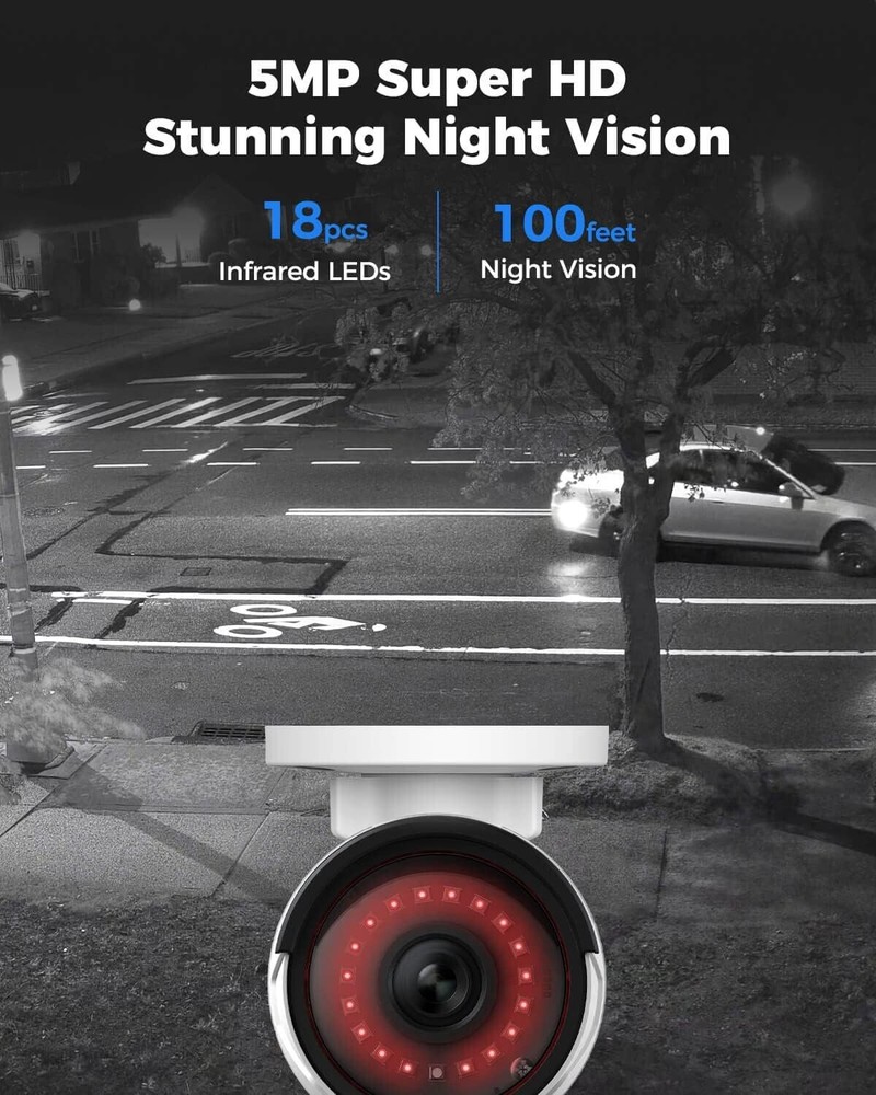 5MP Security Camera System with 4 Wired PoE Cameras & 2TB HDD for Home Safety