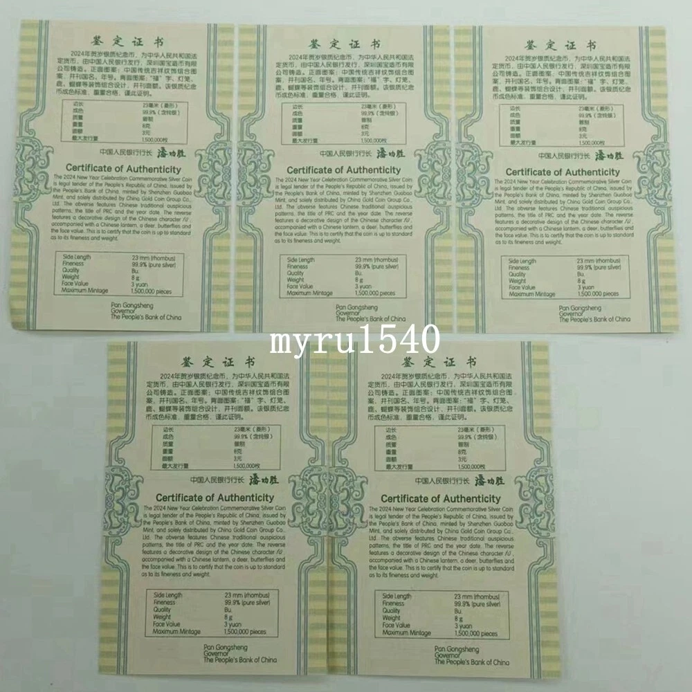 Item name:2024 China 3 YUAN Coin China New Year Celebration Good Fortune(Fu)Silver Coin 8g Purity :Silver 99.9%;Weight: 8 g;Diameter: 25 MM;Face Value: 3 YUAN Number of issues : 1500000PCS Issue time:2024 Issued by :The People's Bank of China ( Notes: The certificate number is random delivery ) We will send item with 3 business days when payment is confirmed, Usually 7-40 days arrived. The pictures are for reference only. We have more than one, we relist the same eBay listing and use the same/old pictures after we sold one item. So you may not receive the same item as in the pictures, however the item you’ll receive will be in the similar condition as in the pictures. We accept "PAYPAL" for payment。Good Luck for Everybody。Please view our other goods。 For more information, please contact to me.