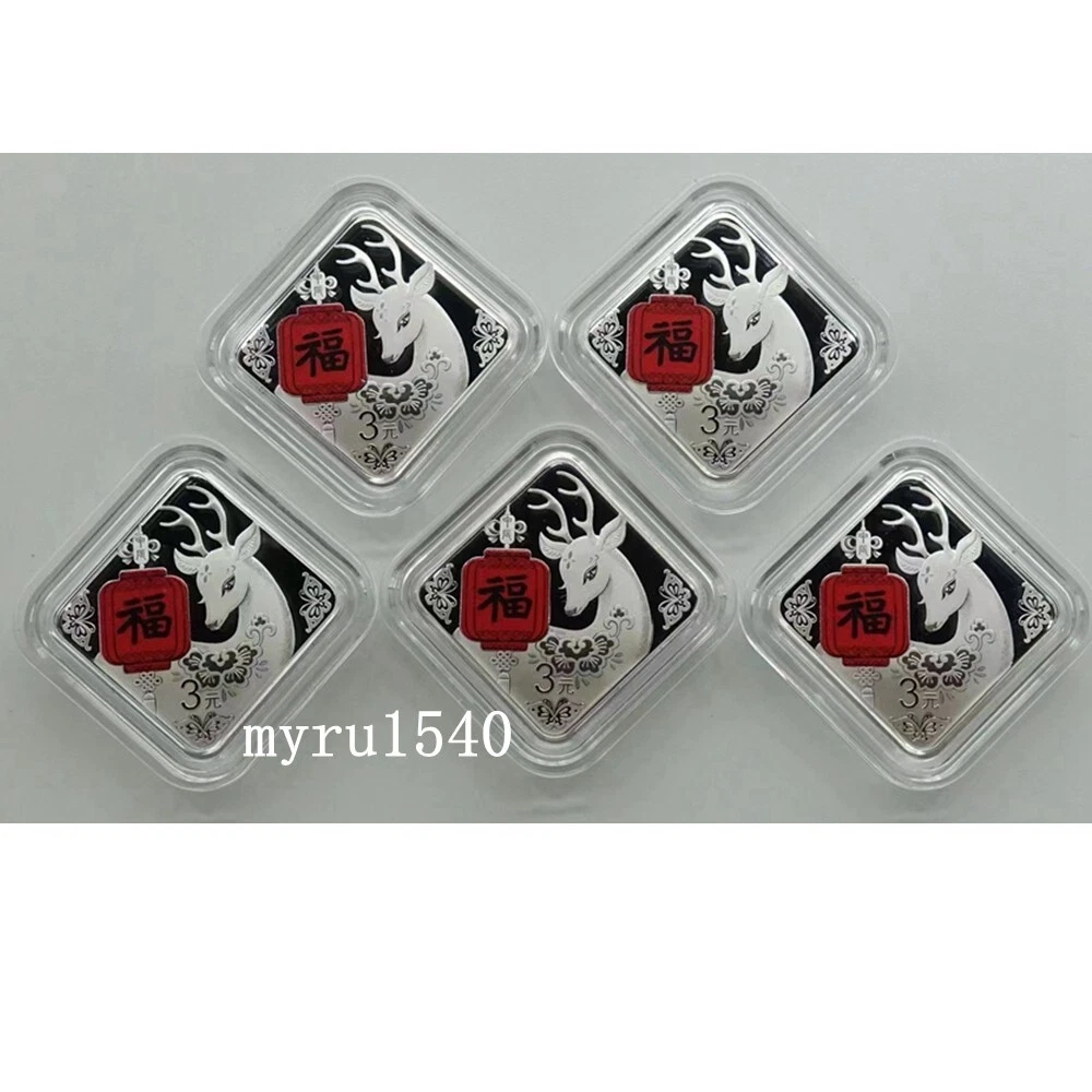 5PCS 2024 China 3 YUAN New Year Dragon Celebration Good Fortune(Fu) Silver Coin