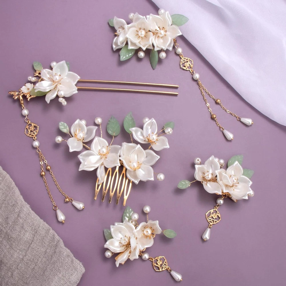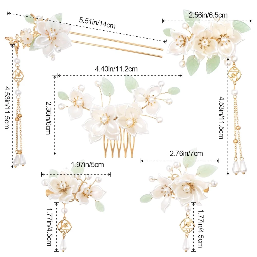 ✿【Package Include】You will get 5 chinese hair pins in 5 different shapes, liberal quantity can meet your requirements as much as possible and different shapes can be matched for various hair styles on different occasions. You can stick on your hair with different combinations as you liked and define your own beauty. ✿【Material】Bridal wedding hair pins combs Clips is made of high quality alloy with rhinestones, plump smooth pearl and aesthetic fake petal and glass leaves, which make it more elegant and will last for long time to daily use. ✿【Vintage Hanfu Style】Inspired by traditional Hanfu fashion, these chinese bridal hair accessories are ideal for those who appreciate timeless beauty and culture. ✿【Wide Application】These bridal hair pins are easy to wear and stay stable, simple and elegant style. They are perfect for wedding, prom, engagement, dances, party, celebrations, back to school, mother's day, graduation, adult ceremony, valentines, Halloween, Thanksgiving, Christmas day and any other special occasions. They can also be applied in daily life. ✿【Ideal Gift】The japanese hair accessories will not only add to your elegance, but also make you radiant, our side hair comb accessory would be a great gift for your friends, girlfriend, fiancee, wife, mother, couple, travel commemorative gift etc. It can express your sincere emotion. Product Description