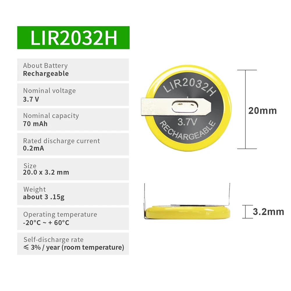 5PCS LIR2032H Rechargeable Battery 70mah 3.7V Lithium-ion Coin Button Cell Ba...