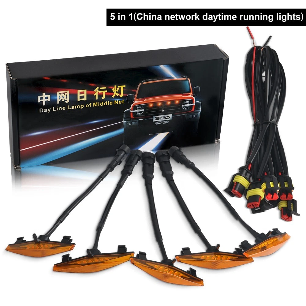 5PCS Raptor Style Amber Grille LED Lights Front For 2014-2021 Toyota 4Runner
