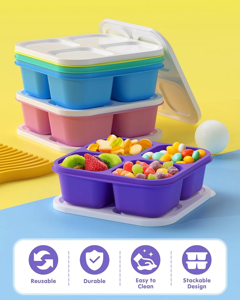 Store New Arrivals Add to Favorite View Feedback Contact 5PCS Back to School Snack Containers Reusable 4 Compartment Divided Food Storage Description Type Back to School Snack Containers Item model number HML5 Part Number HML5 Batteries Required? No Is Microwaveable Yes Color White Lids Material Plastic Country of Origin China Is Dishwasher Safe Yes Item Weight 1.12 pounds Batteries Included? No Material Feature Reusable Material Type Free BPA Free Special Features Lightweight, Freezer Safe, Microwave Safe, Dishwasher Safe Size Standard Special Feature Lightweight, Freezer Safe, Microwave Safe, Dishwasher Safe Package Dimensions 6.22 x 6.18 x 4.29 inches Product Care Instructions Freezer Safe, Microwave Safe, Dishwasher Safe Included Components 5 Pcs Snack Containers 【Divided Containers】4 Compartment snack containers, each spaced capacity of 1/2 cup, according to your habits, separate all kinds of food, a set contains 5 colors, you can choose a different color every day in the workday. 【Food Grade Material】lunchable container are made of high quality BPA-free polypropylene material to ensure daily durability and safety, reusable, odorless and easy to clean. 【Microwave/Dishwasher/Freezer Safe】Divided food storage containers with lids can be heated in the microwave, washed in the dishwasher, and stored in the freezer. (Note: Don't close the lid when microwaving.) 【Space-Saving】Lunch boxes containers is lightweight and stackable, making it easy to carry. Save valuable space by stacking them when not in use. 【Easy-to-open Lids】Lids are designed with semi-circular handles for Good-looking and easy opening and closing. 【Professional Service】We are committed to providing our customers with satisfactory after-sales service. If you have any questions or dissatisfaction with our snackle box container, please contact us immediately, we will be the first time to answer your questions. KEMETHY IS COMMITTED TO PROVIDING YOU WITH THE PERFECT FOOD STORAGE TO MAKE YOUR LIFE HEALTHY AND EASY. We offer 30 days refund and 180 days warranty. If you have any problem or dissatisfaction with the our product, please feel free to contact us, we will solve all problems for you within 24 hours. Product Features: Safety Material: KEMETHY snack containers with lids is made of PP materials, BPA-free, Vinyl, Lead, or PVC. Multi-Scene Application: Microwave safe, Freezer safe, and Dishwasher safe. Package Included: 5 Pcs Snack Containers ABOUT US - TOP SELLER- 100% POSITIVE We offer the best prices around on high quality products. Our E-store includes media such as toys and games while offering electronics, gaming, gym, sporting apparel, seasonal products, general home, garden items and more. SHIPPING - SUPER FAST FREE SHIPPING We are always working hard to ensure your package arrives as soon as possible. Please understand that some factors like weather, high postal traffic, and the performance of shipping companies are outside of our control. We offer free shipping to the lower 48 states and ship within 2 business days of payment, usually sooner. We do not accept P.O. Boxes. Please provide a physical address. For shipping outside of the continental USA, we only use eBay's Global Shipping Program.The item is shipped to KY and then sent to the rest of the world. International customers are responsible for all duties and taxes. Continue to 'check out' to calculate costs for shipping the item to your country. Messages regarding eBay's Global Shipping Program MUST be directed at eBay EXCLUSIVELY. RETURNS - WORRY FREE..!! 30 DAYS FREE RETURN We offer a 30-Day Return Policy on items in which you are not completely satisfied with. You have the option of a full-refund or an exchange of the item. No returns are available on items shipped outside of the USA. PAYMENT We accept PayPal. CONTACT US This page content is yet to come Please ad us to your favorite seller and visit again later Thank You CUSTOMER SATISFACTION - 100% POSITIVE TOP SELLER We try our very best to make sure every customer is completely satisfied. If there's a problem, message us! We're happy to help. WE ACCEPT CREDIT CARD/ DEBIT CARD APPLE PAY GOOGLE PAY PAYPAL
