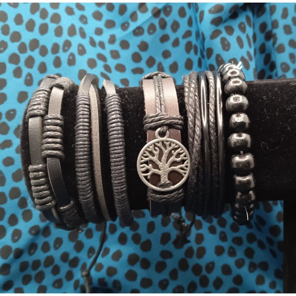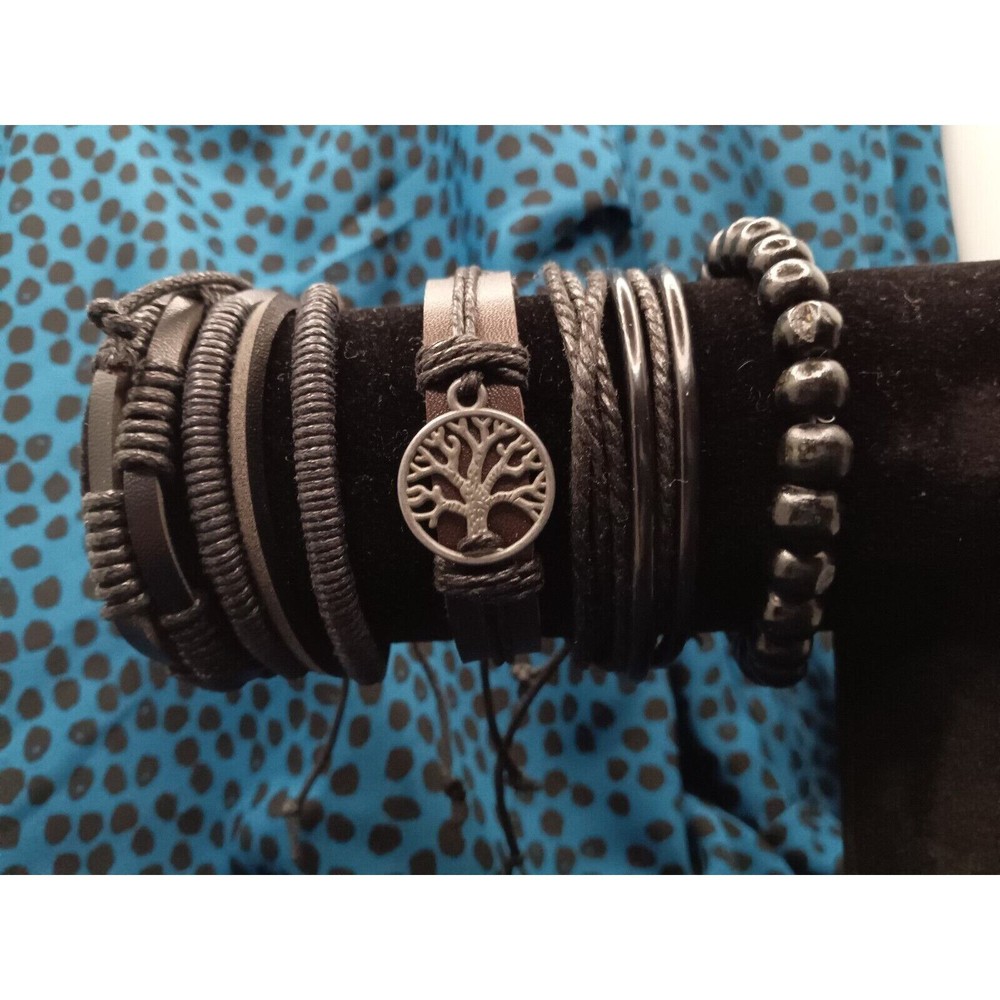 5 Bracelets: 4 Leather Boho Adjustable Bracelets and 1 Resin Bracelet. Tree of Life. Unisex Has sliding adjustable rope chord that can accommodate young people to adults with large hands and wrists. Brand new. Can be worn stacked or separately. Look great on men as well as women. I can bundle for you.