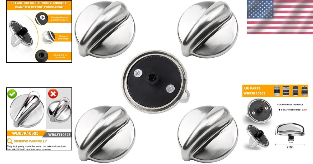 5-Pack Stainless Steel Gas Stove Knobs for GE - Enhance your Cooking Experience ‹ › ‹ › ‹ › ‹ › ‹ › ‹ › ‹ › ‹ › 5-Pack Stainless Steel Gas Stove Knobs for GE - Enhance your Cooking Experience Compatible Models: replaces: , WB03K10208, WB03K10305, WB03K10221, WB03K10294, 191d5100, 1810427, AH3486484, AP4980246, EAP3486484, etc. FIT MODELS: PS3486484, PGB910SEM2SS, P2B918SEM1SS, PGB908SEM3SS, J2B918SEL2SS, PGB928SEM1SS, JGB928SEL2SS, PGB900SEM4SS, PGB975SEM4SS, PGB916SEM4SS, JGB918SEL2SS, etc. Key Features: Set of 5 elegant stainless steel knobs featuring a durable plastic backing. Efficient heat control for surface burners, easy installation in under a minute – no tools required. Robust design ensures longevity and enhanced performance. Compatible with a range of GE, Hotpoint models, making it a versatile addition to your kitchen. Stainless steel finish adds a touch of sophistication to your cooking appliance. Benefits: Enjoy unparalleled control over cooking temperatures, leading to delicious culinary results. Quickly replace old or broken knobs without hassle, rejuvenating the look of your cooking range. Durability ensures you won't have to worry about frequent replacements. Experience the satisfaction of a fully functional kitchen appliance that enhances your cooking enjoyment. Customer-focused commitment provides peace of mind with responsive support for any inquiries. Why Choose Our Stainless Steel Gas Stove Knobs? Upgrade your culinary experience with our 5-Pack Stainless Steel Gas Stove Knobs. Designed with compatibility in mind, these knobs fit a range of models while providing you with remarkable control over your cooking. The refined stainless steel offers both a practical function and an aesthetic improvement to your cooktop. Don’t let a broken knob hinder your cooking—restore your kitchen functionality and style with ease. Buy your 5-Pack of Stainless Steel Gas Stove Knobs today and experience the difference! Shipping Free & Fast Shipping - We offer free shipping to most of the USA with a normal delivery time of 3-7 days. However, due to the current situation, additional delivery time (up to 3 weeks) may be required for some items. Alternative Carriers - We may use alternative carriers (e.g. USPS, FedEx, UPS, etc.) to ensure your package arrives safely and on time. Due to the use of multiple carriers, we are unable to provide a tracking number automatically. Handling Time - Orders are processed and shipped within 1-2 business days of receiving cleared payment. Shipping Restrictions - Shipping to Alaska, Hawaii, Puerto Rico, Guam, and other US territories may incur shipping charges or delivery restrictions. Please contact us before ordering, or your order can be refunded/cancelled. State Restrictions - There may be restrictions based on your state of purchase. For example, certain items may not be shipped to California due to state regulations. Contact for Tracking Updates - If you require tracking updates or have any concerns about the delivery of your order, please feel free to contact us, and we will be happy to assist you. Return 30-Day Hassle-Free Returns - We want you to be completely satisfied with your purchase. If you are not, you can return the item within 30 days of receiving it for a full refund or exchange. Easy Return Process - To start a return, simply contact us and we will provide you with a prepaid return shipping label and detailed instructions. Restocking Fee - There are no restocking fees for returns. However, the buyer is responsible for return shipping costs if the return is not due to a seller's error. Refund Processing Time - Refunds will be processed within 5 business days of receiving the returned item in its condition. Payment We accept all major credit cards, PayPal, and Apple Pay for your convenience. Your payment information is secure and encrypted to ensure a safe and seamless transaction. Please complete your payment within 3 days of purchase to avoid any delays in shipping. Feedback Your feedback is extremely important to us. We strive to provide the best products and customer service possible. If you are satisfied with your purchase, please take a moment to leave us a positive review. If you have any concerns or issues with your order, please contact us before leaving negative feedback. We are committed to resolving any problems and ensuring your satisfaction. Contact Us If you have any questions or concerns, please feel free to out to our customer support team. You can contact us through the eBay messaging system. We are available Monday to Friday, 9:00 am to 5:00 pm EST, and we will do our best to respond to your inquiry within 24 hours. Buy it now and enjoy a pleasant shopping experience! Model: Gas Stove Knobs Replacement Item Weight: 10.2 oz Unit Quantity: 5 Set Includes: Knob Suitable For: Cooktop Compatible Model: WB03K10303 Features: Easy to install,Durable Type: Knob Power Source: Electric Color: Silver Installation: Freestanding Capacity: 0.5 ft³ or less Material: Stainless Steel Finish: Metallic Stainless Steel Number of Items in Set: 5 Item Depth: 1.1 inches Unit Type: oz