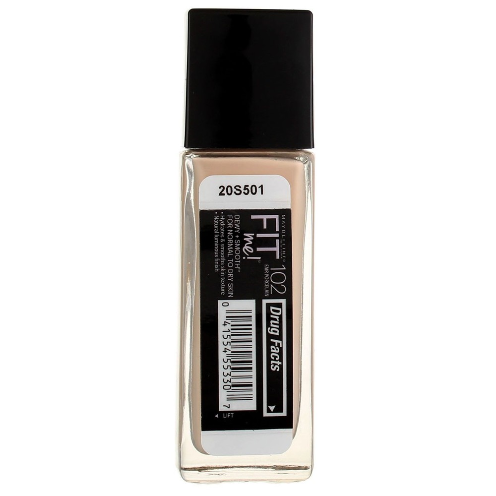 Product Description This moisturizing foundation is formulated to achieve a flawlessly smooth, hydrated, and more even skin tone. Fit Me Dewy + Smooth foundation also features SPF 18 sunscreen to help protect the skin from sun damage. The end result is beautifully hydrated and smooth skin with a foundation makeup shade that fits you. Dermatologist tested. Allergy tested. Non-comedogenic. Fragrance-free. Packaging May Vary Apply the foundation onto skin with fingertips or an applicator and blend. For external use only. Maybelline New York Dewy and Smooth foundation with SPF 18 This hydrating foundation smoothes skin's texture Achieves a naturally luminous and radiant finish Moisturizing foundation ideal for normal to dry skin Available in a variety of skin-fitting shades Ingredients Propylparaben, Fragrance, Tocopherol, Ascorbyl Palmitate, Aluminum Hydroxide, Butylparaben Peg-9, Ethylparaben, Dipropylene Glycol, Alpha-Isomethyl Ionone; May Contain: Titanium Dioxide, Iron Oxides,,,,Water, Cyclopentasiloxane, Dimethicone, Glycerin, Isotridecyl Isononanoate, Peg-9 Polydimethylsiloxyethyl Dimethicone, Disteardimonium Hectorite, Dimethicone/,Polyglycerin-3 Crosspolymer, Sodium Chloride, Peg-10 Dimethicone, Phenoxyethanol, Methylparaben, Disodium Stearoyl Glutamate, Chlorphenesin, Disodium, Edta, Acrylates Copolymer, Instructions reapply at least every 2 hours • use a water resistant sunscreen if swimming or sweating Sun Protection Measures. Spending time in the sun increases your risk of skin cancer and early skin aging. To decrease this risk, regularly use a sunscreen with a Broad Spectrum SPF value of 15 or higher, and other sun protection measures including: • limit time in the sun, especially from 10 a.m. - 2 p.m. • wear long-sleeved shirts, pants, hats, and sunglasses children under 6 months of age: Ask a doctor, For sunscreen use: • apply liberally 15 minutes before sun exposure Product Description This moisturizing foundation is formulated to achieve a flawlessly smooth, hydrated, and more even skin tone. Fit Me Dewy + Smooth foundation also features SPF 18 sunscreen to help protect the skin from sun damage. The end result is beautifully hydrated and smooth skin with a foundation makeup shade that fits you. Dermatologist tested. Allergy tested. Non-comedogenic. Fragrance-free. Packaging May Vary Apply the foundation onto skin with fingertips or an applicator and blend. For external use only. Maybelline New York Dewy and Smooth foundation with SPF 18 This hydrating foundation smoothes skin's texture Achieves a naturally luminous and radiant finish Moisturizing foundation ideal for normal to dry skin Available in a variety of skin-fitting shades Ingredients Propylparaben, Fragrance, Tocopherol, Ascorbyl Palmitate, Aluminum Hydroxide, Butylparaben Peg-9, Ethylparaben, Dipropylene Glycol, Alpha-Isomethyl Ionone; May Contain: Titanium Dioxide, Iron Oxides,,,,Water, Cyclopentasiloxane, Dimethicone, Glycerin, Isotridecyl Isononanoate, Peg-9 Polydimethylsiloxyethyl Dimethicone, Disteardimonium Hectorite, Dimethicone/,Polyglycerin-3 Crosspolymer, Sodium Chloride, Peg-10 Dimethicone, Phenoxyethanol, Methylparaben, Disodium Stearoyl Glutamate, Chlorphenesin, Disodium, Edta, Acrylates Copolymer, Instructions reapply at least every 2 hours ‚Ä¢ use a water resistant sunscreen if swimming or sweating Sun Protection Measures. Spending time in the sun increases your risk of skin cancer and early skin aging. To decrease this risk, regularly use a sunscreen with a Broad Spectrum SPF value of 15 or higher, and other sun protection measures including: ‚Ä¢ limit time in the sun, especially from 10 a.m. - 2 p.m. ‚Ä¢ wear long-sleeved shirts, pants, hats, and sunglasses children under 6 months of age: Ask a doctor, For sunscreen use: ‚Ä¢ apply liberally 15 minutes before sun exposure Warnings Protect this container from excessive heat and direct sun, MADE IN USA AND/OR IMPORTED INGREDIENTS. Disclaimer The product descriptions and instructions provided by vitabox.com are for informational purposes only and are qualified in their entirety by the information available from manufacturers of the products. You should carefully read all product packaging, and contact the manufacturer with any questions before using a product. While we endeavor to ensure that product descriptions are current, manufacturers sometimes change their products. We are not liable for inaccuracies or misstatements about products. We do not provide medical advice or recommendations. You should not use the information provided by vitabox.com for diagnosing or treating a health problem or disease. If you have or suspect that you have a medical problem, immediately contact your health care provider. Information and statements regarding dietary supplements have not been evaluated by the Food and Drug Administration or any other government agency and are not intended to diagnose, treat, cure, or prevent any disease.