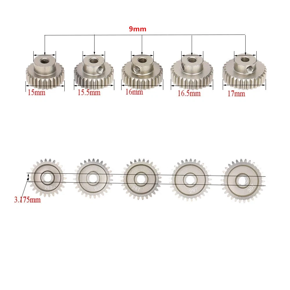 Product Description Features: 1.Easy installation and long service life. 2.Hard anodic oxidation on gear surface. 3.Antirust treatment of gear surface. 4.It is suitable for brushless brushed motor of 3.175 mm axle of 1/10 RC model vehicle. 5.A m3 set screw (12.9 level) has been added to each pinion gear Specifications: Material: Aluminum 7075 Diametral Pitch: 48DP Gear modulus: 0.5 Suitable shaft diameter: 3.175mm Quantity: 5Pcs Package include: 5Pcs Motor Gear Payment Shipping Returns Contact Us We accept all verified payments from ebay. Orders will be shipped after receiving cleared payment. Payment due within 7 days after auction ends and for buy it now listings. We ship most of our orders within 24 hours, and may up to 48 hours for. If you want faster shipping way. Please contact us before making payment. Sometimes due to problems with our transportation company system, your shipping information may be delayed to update. We recommend that you try again after 3-4 days. If you still haven't checked the shipping information, you can contact us by ebay message. Always believe we can figure things out with communication, if it comes to return, the pacakge must be intact and the same as you receive. If you have any questions, please feel free to email our service specialists 24 Hours a Day, 7 Days a Week. We will reply you ASAP. Return/refund is accepted within 30 days after the buyer receives the item. NO exchange will be accepted after 30 days from the date when the item is received. Please contact us first before returning your product!!! If you have any questions, our Customer Service staffs welcome you to email us. We strive to answer all questions and resolve any problems as quickly as possible. You can contact us 7*24, we will reply at the first time, and we will surely solve your problems. Note: 1.We try our best to reply to your emails as soon as possible, however, due to high volume of daily incoming emails and time zone difference, we may not be able to reply your emails immediately. Please allow 1 business days for us to response. If you do not receive any reply from us, please check your email ensuring your mailbox has not reached full size. 2.Due to some ISP SPAM filter settings, you may not be able to receive our replies; if you have problems receiving our emails, you may need to use a different email account to contact us. 3.Please give us the opportunity to resolve any problem. We understand the concerns and frustrations you might have, and will try our best to resolve the issues. Please email us before leaving any negative feedback or open any dispute on PayPal. 4.We care about our valued customers, and will always try to help you. So if you have any problems, please e-mail us immediately. Payment We accept all verified payments from ebay. Orders will be shipped after receiving cleared payment. Payment due within 7 days after auction ends and for buy it now listings. Shipping We ship most of our orders within 24 hours, and may up to 48 hours for. If you want faster shipping way. Please contact us before making payment. Sometimes due to problems with our transportation company system, your shipping information may be delayed to update. We recommend that you try again after 3-4 days. If you still haven't checked the shipping information, you can contact us by ebay message. Returns Always believe we can figure things out with communication, if it comes to return, the pacakge must be intact and the same as you receive. If you have any questions, please feel free to email our service specialists 24 Hours a Day, 7 Days a Week. We will reply you ASAP. Return/refund is accepted within 30 days after the buyer receives the item. NO exchange will be accepted after 30 days from the date when the item is received. Please contact us first before returning your product!!! Contact Us If you have any questions, our Customer Service staffs welcome you to email us. We strive to answer all questions and resolve any problems as quickly as possible. You can contact us 7*24, we will reply at the first time, and we will surely solve your problems. Note: 1.We try our best to reply to your emails as soon as possible, however, due to high volume of daily incoming emails and time zone difference, we may not be able to reply your emails immediately. Please allow 1 business days for us to response. If you do not receive any reply from us, please check your email ensuring your mailbox has not reached full size. 2.Due to some ISP SPAM filter settings, you may not be able to receive our replies; if you have problems receiving our emails, you may need to use a different email account to contact us. 3.Please give us the opportunity to resolve any problem. We understand the concerns and frustrations you might have, and will try our best to resolve the issues. Please email us before leaving any negative feedback or open any dispute on PayPal. 4.We care about our valued customers, and will always try to help you. So if you have any problems, please e-mail us immediately. You may also like EVA Storage Bag Protective Pouch Case for Sony PSP1000/2000/3000 Game Console 13.07 USD 100* New Self-Adhesive anti collision Rubber Feet Small Round Bumpers 8mm 3.99 USD 3.99 USD 20PCS Soft Plastic Golf Shoe Spikes Replacement Cleat Fast Twist For Adida Champ 12.99 USD 2.4-2.48GHz RC Car Boat Remote Control Receiver Transmitter 4CH LED Indicator 9.89 USD 3.99 USD RC Car Brushed ESC 60A Waterproof Electronic Speed Controller For 1/10 RC 19.07 USD Protector Gimbal Camera Cover Transparent Cap For DJI Mavic Pro Drone Quadcopter 5.99 USD 3.99 USD powered by