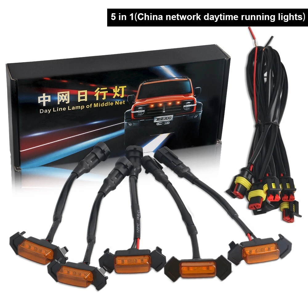 5Pcs Grille LED Lights Smoked Lens Front Amber For Toyota Tacoma Tundra Raptor