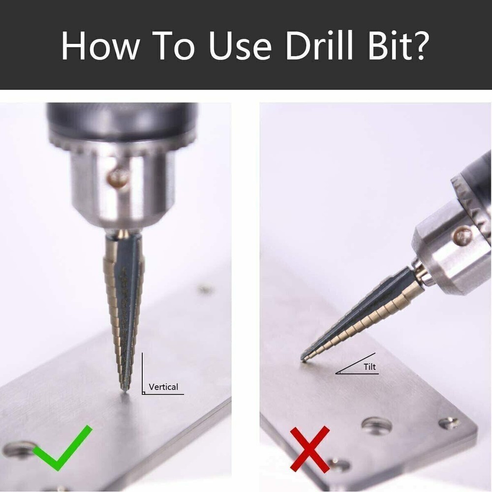 Product Description 5Pcs HSS Cobalt Hole Large Metal Step Drill Bit Set Titanium Cutter Cone 50 Size Attention: Tile glass / angle iron / site wood templates / hard iron, etc. can not drill oh! High-speed steel: can be used for about 2mm iron plate / aluminum plate, 5mm or so wood, plastic and other materials! Bearing steel: can be used for thin wood, thin aluminum, thin plastic and so on! Description This is the New HSS Steel Large Step Cone Drill Titanium Bit Set Hole Cutter, which is made from high quality HSS steel, and with the Titanium coated to reduce friction and heat. It is very suitable for using to cut holes in a variety of materials including steel, brass, wood, plastic, etc. Features - Color: As the picture shown. - Material: High Speed Steel with Cobalt Coated. - This set replaces 50 individual drill sets. - Made by Long life high speed steel. - Self starting - no need for a pilot hole. - Cobalt coated to reduce friction and run cooler. - Automatically deburrs holes as you drill. - Includes protective padded aluminum case. Specifications - 1/4'' to 1 3/8'' Drill Bit: 10 Steps (1/4'', 3/8”, 1/2'', 5/8'', 3/4'', 7/8'', 1'', 1 1/8'', 1 1/4'', 1 3/8''). - 3/16'' to 7/8'' Drill Bit: 12 Steps (3/16'', 1/4'', 5/16'', 3/8'', 7/16'', 1/2'', 9/16'', 5/8'', 11/16'', 3/4'', 13/16'', 7/8''). - 1/4'' to 3/4'' Drill Bit: 9 Steps (1/4'', 5/16'', 3/8'', 7/16'', 1/2'', 9/16'', 5/8'', 11/16'', 3/4''). - 1/8'' to 1/2'' Drill Bit: 13 Steps (1/8'', 5/32'', 3/16'', 7/32'', 1/4'', 9/32'', 5/16'', 11/32'', 3/8'', 13/32'', 7/16'', 15/32'', 1/2''). - 3/16'' to 1/2'' Drill Bit: 6 Steps (3/16'', 1/4'', 5/16'', 3/8'', 7/16'', 1/2''). Package includes 5 x Drill Bits 1 x Aluminum Case Product Highlights This set replaces 50 individual drill sets. |Made by Long life high speed steel. |Self starting - no need for a pilot hole. |Cobalt coated to reduce friction and run cooler. |Automatically deburrs holes as you drill. |Includes protective padded aluminum case. About Us Payment Shipping Returns Contact Us 1. Unless specified otherwise, all our products are IN STOCK and are shipped from USA Local warehouse - Not Overseas! 2. We provide a 30 day Satisfaction Guarantee or your money back (provided items are in the same new and resaleable condition.) 3. We have a PayPal Verified Business Account, please buy with Confidence! 4. Every item will be tesrted before send.We know our products well and if we don't have the answers we will do our best to find them for you! 5. Our friendly team look forward to serving you! Your satisfaction is our No.1 Priority We will do our best to satisfacy you. 1.Paypal, Credit Card, G Pay etc, many payment way is accepted. 2.Please be sure your shipping address is correct before make a payment. 1.We will ship out the item within 1-3 business days after comfirming the payment, appreciate your patience. 2.If the items are broken on the way(we will check the orders clearly before we sent them),please contact us in 3 days you received it. We will send you a new one or refund your payment. 1.We stand behind every buyer.Items can be returned for exchange or refund within 30 days. 2.Please contact us when you have any confusion of our item, we will solve the trouble for you as soon as possible. 1.This is professional Seller.We will reply your message within 24 hours. 2.Please contact us whenever you have any question about the item. We will deal with it as soon as possible. 3. If you are unhappy with the item or our service,please Contact Us before leave feedback,just give me a chance,thank you! About Us 1. Unless specified otherwise, all our products are IN STOCK and are shipped from USA Local warehouse - Not Overseas! 2. We provide a 30 day Satisfaction Guarantee or your money back (provided items are in the same new and resaleable condition.) 3. We have a PayPal Verified Business Account, please buy with Confidence! 4. Every item will be tesrted before send.We know our products well and if we don't have the answers we will do our best to find them for you! 5. Our friendly team look forward to serving you! Your satisfaction is our No.1 Priority We will do our best to satisfacy you. Payment 1.Paypal, Credit Card, G Pay etc, many payment way is accepted. 2.Please be sure your shipping address is correct before make a payment. Shipping 1.We will ship out the item within 1-3 business days after comfirming the payment, appreciate your patience. 2.If the items are broken on the way(we will check the orders clearly before we sent them),please contact us in 3 days you received it. We will send you a new one or refund your payment. Returns 1.We stand behind every buyer.Items can be returned for exchange or refund within 30 days. 2.Please contact us when you have any confusion of our item, we will solve the trouble for you as soon as possible. Contact Us 1.This is professional Seller.We will reply your message within 24 hours. 2.Please contact us whenever you have any question about the item. We will deal with it as soon as possible. 3. If you are unhappy with the item or our service,please Contact Us before leave feedback,just give me a chance,thank you! You may also like 65W USB C Type C for Acer Chromebook Lenovo/HP/Asus/Samsung Power Laptop Charger 8.99 USD Free shipping 3 Head 50000LM LED Solar Lights Outdoor Waterproof Motion Sensor Security Lamp 13.29 USD 13.99 USD Free shipping 5% off Titanium Cutting Board Double-Sided Titanium Cutting Boards for Kitchen Camping 15.99 USD 22.59 USD Free shipping 29% off 9PC ABS Socket Organizer 1/2 3/8 1/4 inch Drive Socket Rail Holders Wall Mount 16.99 USD 18.49 USD Free shipping 8% off 2300W 4 Gauge Car Audio Cable Kit Amplifier Install Amp RCA Subwoofer Sub Wiring 14.99 USD Free shipping 8"x12" Vacuum Sealer Bags Embossed Food Saver Magic Seal Storage 100-500pcs 12.5 USD 13.89 USD Free shipping 10% off powered by