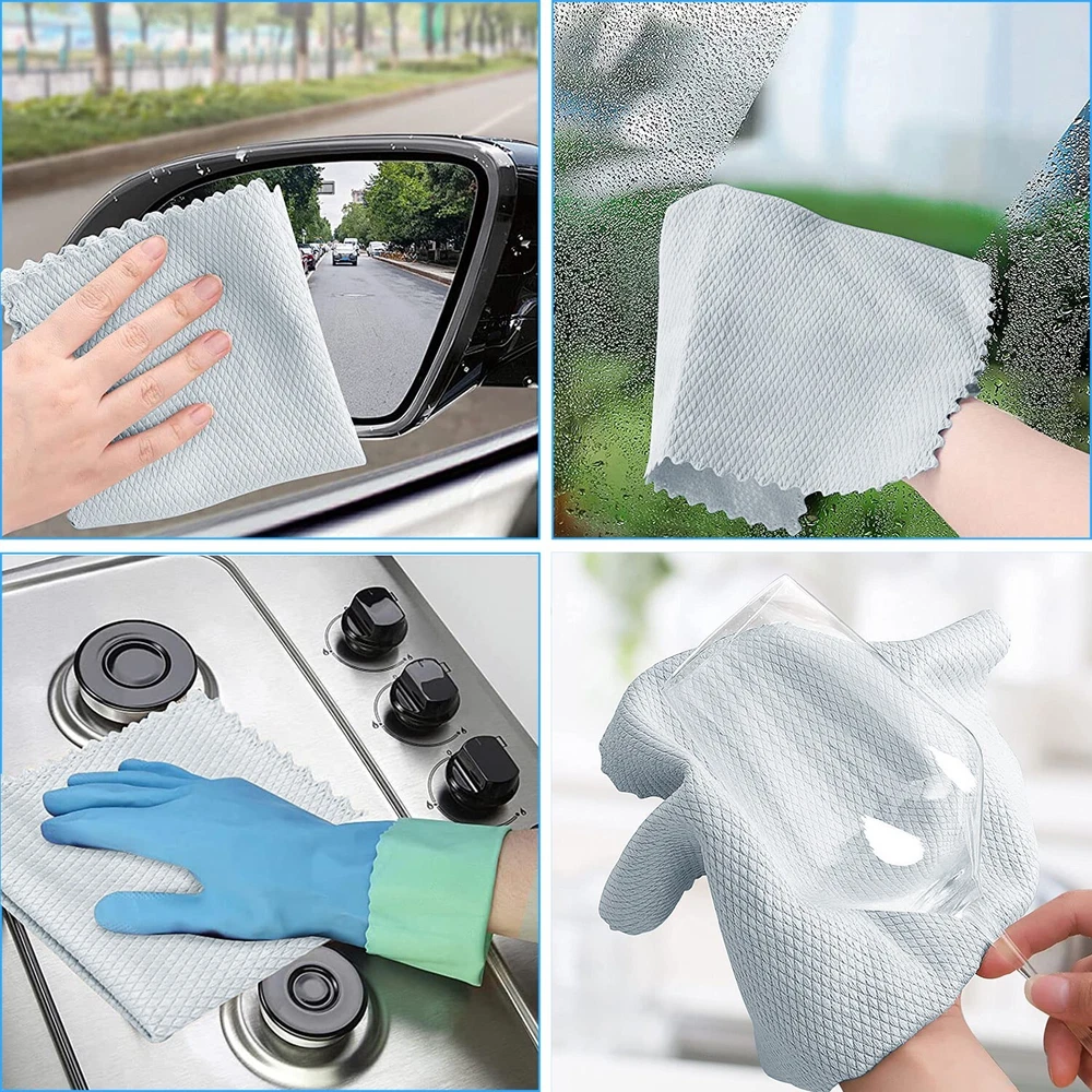 Features Ultra-soft and extremely fine microfiber fabric absorb and gently lifts away fingerprints, oil smudges, dust, and dirt. No hair loss, strong water absorption, strong decontamination, no water marks, soft and comfortable, easy to clean It can be used both dry and wet.The fish scale pattern design increases the friction with the surface of the object. Our Glass Cloth is Machine Washable. Just wash with cold water on gentle cycle, tumble dry low. No fading or shrink even after thousands of washes. Reusable and Fast Drying. Do not bleach. Ideal for mirror, window, stainless steel, stemwares, lens, glasses, screen etc. Can easily remove dust and stains, Leaves no Wiping Marks. Specifications Material: Microfiber Color: Gray Size: 11.8*15.7inch On Jun 26, 2025 at 00:56:50 PDT, seller added the following information: