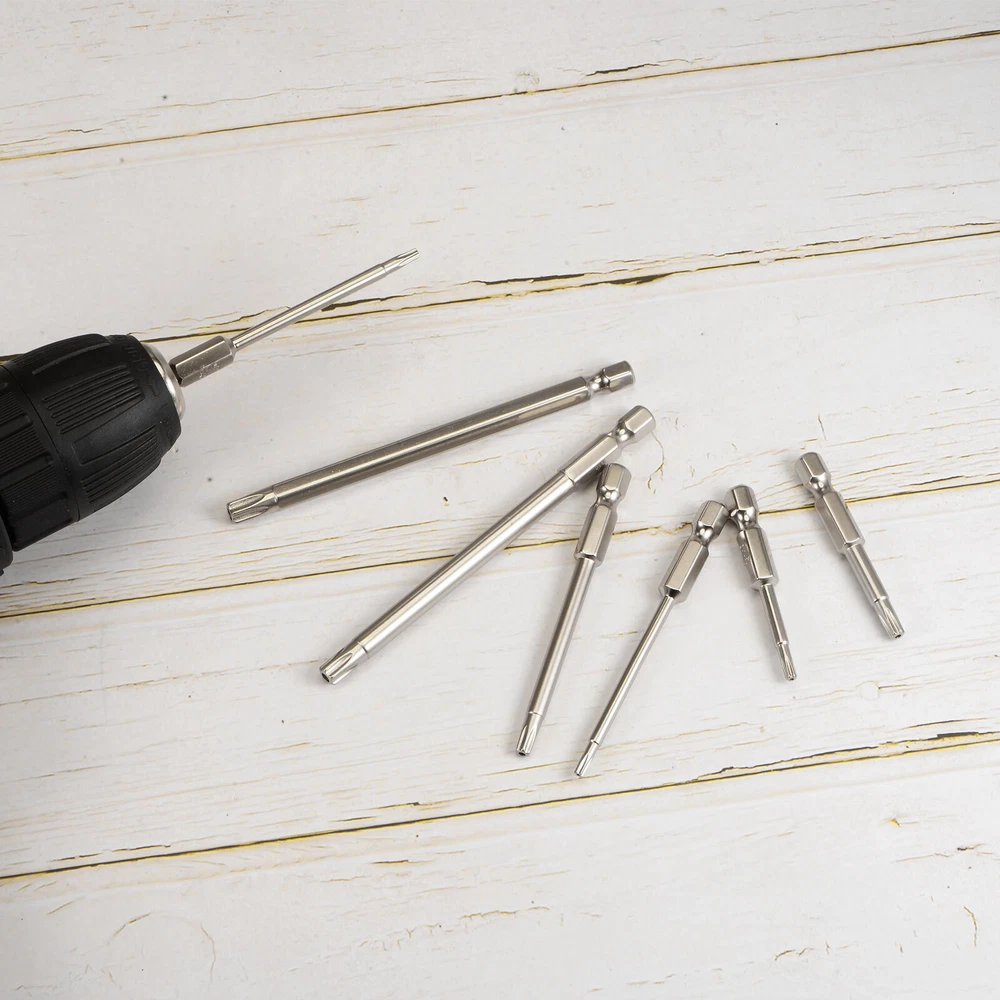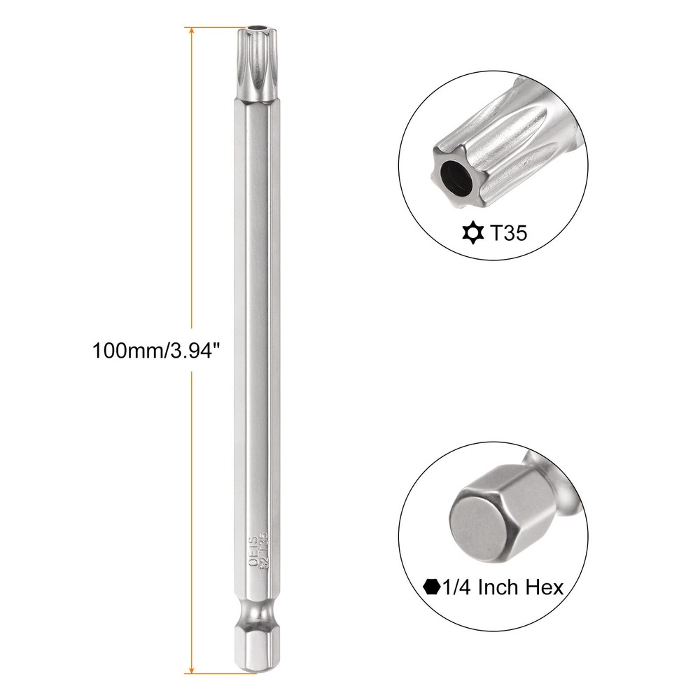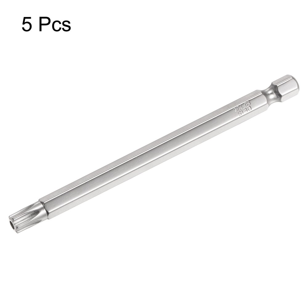 5Pcs T35 Torx Bit 1/4 Hex Shank 4 Inch S2 Steel Drill Bits