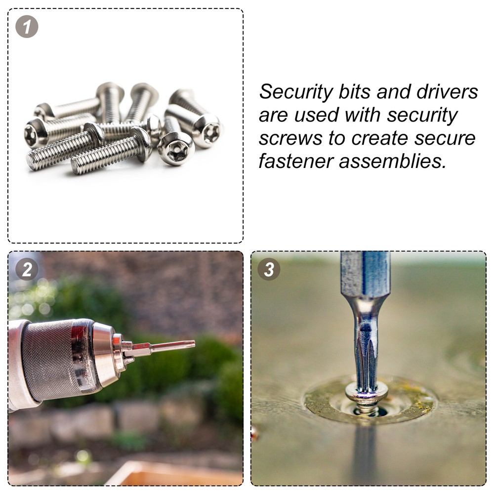 Document Security Torx screws are often called Pin Torx due to the additional pin at the center of the six-point star socket head. This center pin makes it impossible to use a standard Torx screwdriver, making this type of fastening tamper-proof.The security torx bit is made of S2 alloy steel, the hardness is as high as HRC60±, the high-temperature quenching treatment is durable, the surface is nickel-plated, and has good anti-rust and anti-corrosion functions.Security bits and drivers are used with security screws to create secure fastener assemblies. They can be used anywhere that tampering might be suspected. Such as repairs, interiors, computers, electronics, etc.The 1/4" hex handle can be used with electric screwdrivers, hand screwdrivers, power drills, combination utility tools, and any standard drill bit.Notice: Do not turn screws that do not match the size to prevent damage to the screw and bit. 5Pcs Security Torx Bit 1/4" Hex Shank 4" Long Drill Bit T8 Torx Star S2 Steel Security Torx screws are often called Pin Torx due to the additional pin at the center of the six-point star socket head. This center pin makes it impossible to use a standard Torx screwdriver, making this type of fastening tamper-proof. The security torx bit is made of S2 alloy steel, the hardness is as high as HRC60±, the high-temperature quenching treatment is durable, the surface is nickel-plated, and has good anti-rust and anti-corrosion functions. Security bits and drivers are used with security screws to create secure fastener assemblies. They can be used anywhere that tampering might be suspected. Such as repairs, interiors, computers, electronics, etc. The 1/4" hex handle can be used with electric screwdrivers, hand screwdrivers, power drills, combination utility tools, and any standard drill bit. Notice: Do not turn screws that do not match the size to prevent damage to the screw and bit. Hot Item Payment 1.We accept eBay payment . 2.Payment must be received within 7 business days of auction closing. Shipping 1.We ship to your eBay or Paypal address. Please make sure your eBay and Paypal address is correct before you pay. 2.Items will be shipped within 1-3 business day when we received payment. 3.Delivery time depends on destination and other factors. Description Policy 5Pcs Security Torx Bit 1/4" Hex Shank 4" Long Drill Bit T8 Torx Star S2 Steel Security Torx screws are often called Pin Torx due to the additional pin at the center of the six-point star socket head. This center pin makes it impossible to use a standard Torx screwdriver, making this type of fastening tamper-proof. The security torx bit is made of S2 alloy steel, the hardness is as high as HRC60±, the high-temperature quenching treatment is durable, the surface is nickel-plated, and has good anti-rust and anti-corrosion functions. Security bits and drivers are used with security screws to create secure fastener assemblies. They can be used anywhere that tampering might be suspected. Such as repairs, interiors, computers, electronics, etc. The 1/4" hex handle can be used with electric screwdrivers, hand screwdrivers, power drills, combination utility tools, and any standard drill bit. Notice: Do not turn screws that do not match the size to prevent damage to the screw and bit. Hot Item Payment 1.We accept eBay payment . 2.Payment must be received within 7 business days of auction closing. Shipping 1.We ship to your eBay or Paypal address. Please make sure your eBay and Paypal address is correct before you pay. 2.Items will be shipped within 1-3 business day when we received payment. 3.Delivery time depends on destination and other factors.