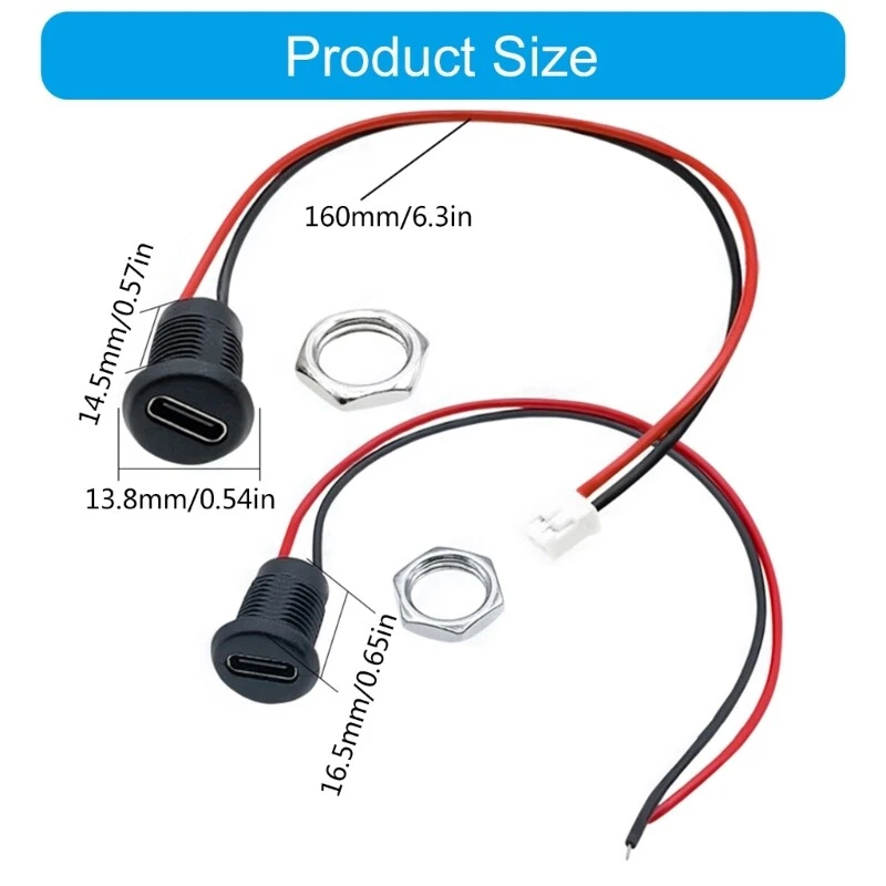 5Pcs Type C Female Connector Socket Charging With Wire Features: Type C female base with wire have advanced and designs, very Enduring. Its enduring connection can ensure stable and highly speed data and power transmission between various devices. It can resist daily wear and tear and be used for long terms. The Type C base with wire welding wire is simple and and can be connecting or replaced quickly without complicated tool. Suitable for electronic devices Type C interfaces, such as phones, tablets, computers. Specifications: Materials: Coppers, Metal, Styles: Black without terminals/Black with terminals/Clear with terminals Head size: about 13.8x16.5mm/0.54x0.65inch Line length: about 160mm/6.3inch Package Includes: 5Pcs Type C Female 2Pin USB Connector note: Please allow 1-2cm errors due to manual measurement, make sure that you do not mind before you order. Due to difference between different monitors, the picture may not reflect the actual color.