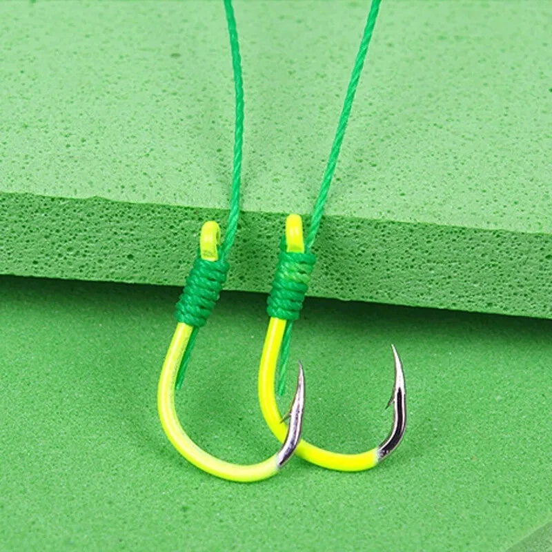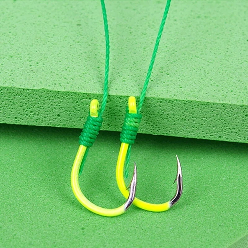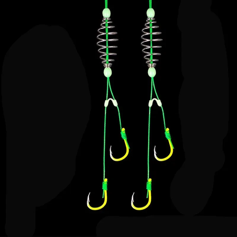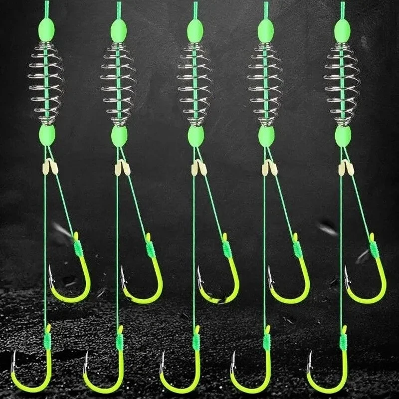 Description: Product name: Fluorescent anti-winding spring fish hook Sports outdoor items: fishing Fishing hook type: spring hook Configuration: spring, space bean, Isen fish hook with tube Features: Sharp hook tip, quick puncture, high strength, anti-oxidation, hand-tied system, enhanced anti-winding performance. Size: No. 13 fish hook about 11.1*21.5mm Material: silicone, high carbon steel, PE wire, EVA wire board Quantity: 5 pieces/board Instructions: 1. Take appropriate amount of bait and place the spring in the middle of the spring. 2. Slightly knead, so that the bait is attached to the spring, and the rod will not fall off. 3. After attaching the bait, you can go fishing. The package includes: 5*spring hook 1*Line board