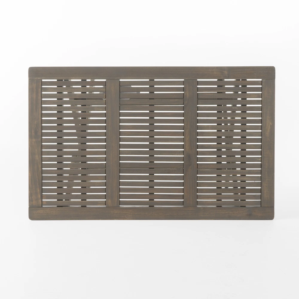 Chair Depth: 12.25 in Tabletop Material: Acacia Wood Table Width: 27.5 in Seat Height: 17.75 in Set Includes: Chairs, Table Assembly Status: Part Assembled Number of Items in Set: Five-Piece Table Height: 29.75 in Item Weight: 63 lb Material: Acacia Wood Cushions Included: No Assembly Required: No Chair Color: Grey Type: Dining Set Seat Depth: 12.25 in Color: Gray MPN: Patio Dining Set Chair Width: 20.5 in Table Length: 42.5 in Brand: Unbranded Chair Height: 33.75 in Tabletop Color: Gray