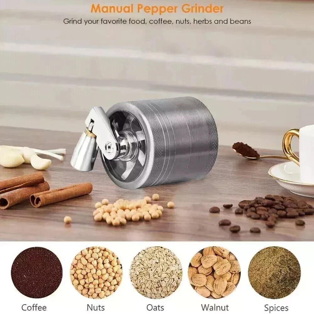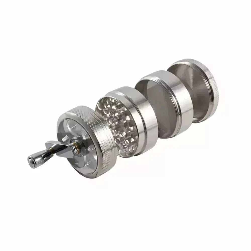 4 PCS Herb Tobacco Grinder Spice Herbal Metal Smoke Crusher Handle Hand Muller 100% brand new and high-quality made. 4 layers made from zinc alloy, solid and durable. Mill handle design makes grind easier. Small size, easily fits into your pockets. Specifications: Dimensions: 40 x 43mm Material: High Grade Zinc Alloy Razor sharp diamond-shaped grinding teeth Steel micro mesh screen to filter pollen Magnetic top enclosure Package Includes: 1x Grinder 1X Dugout Pipe