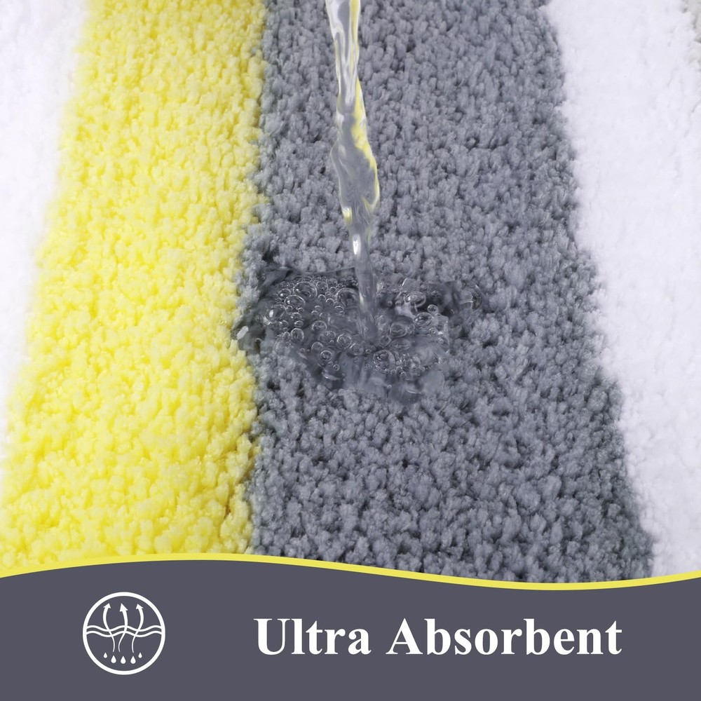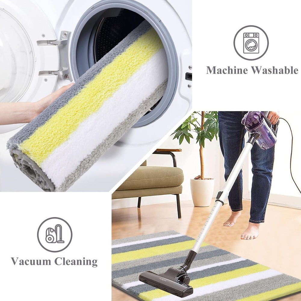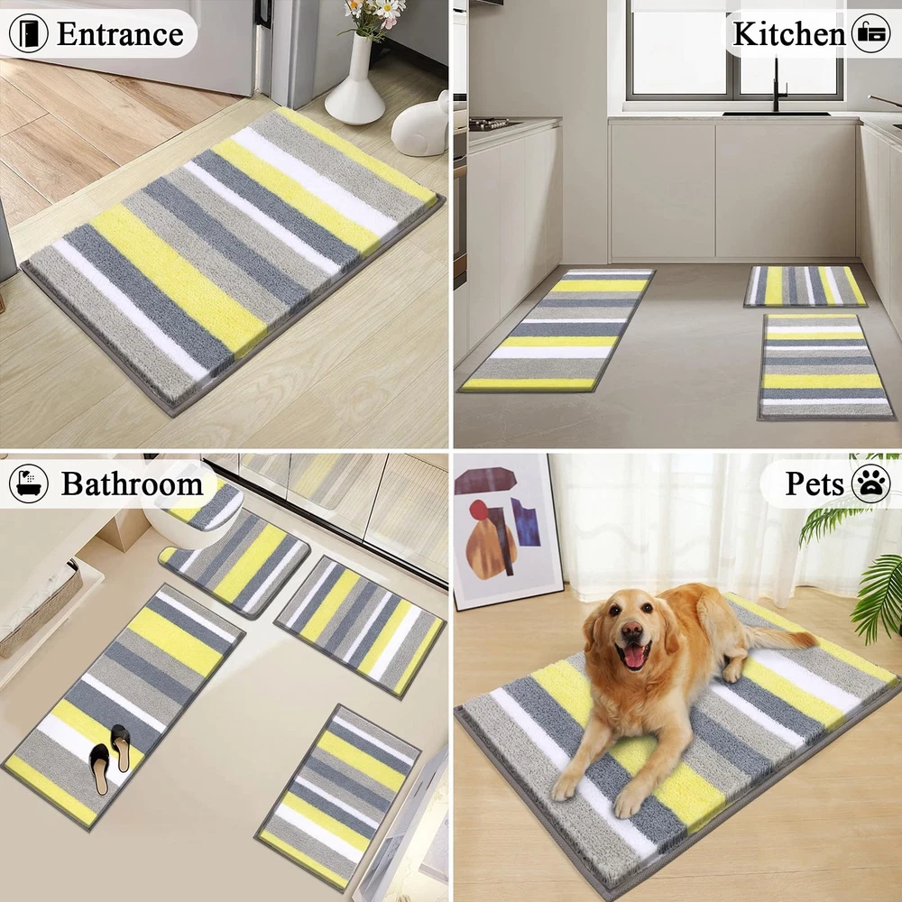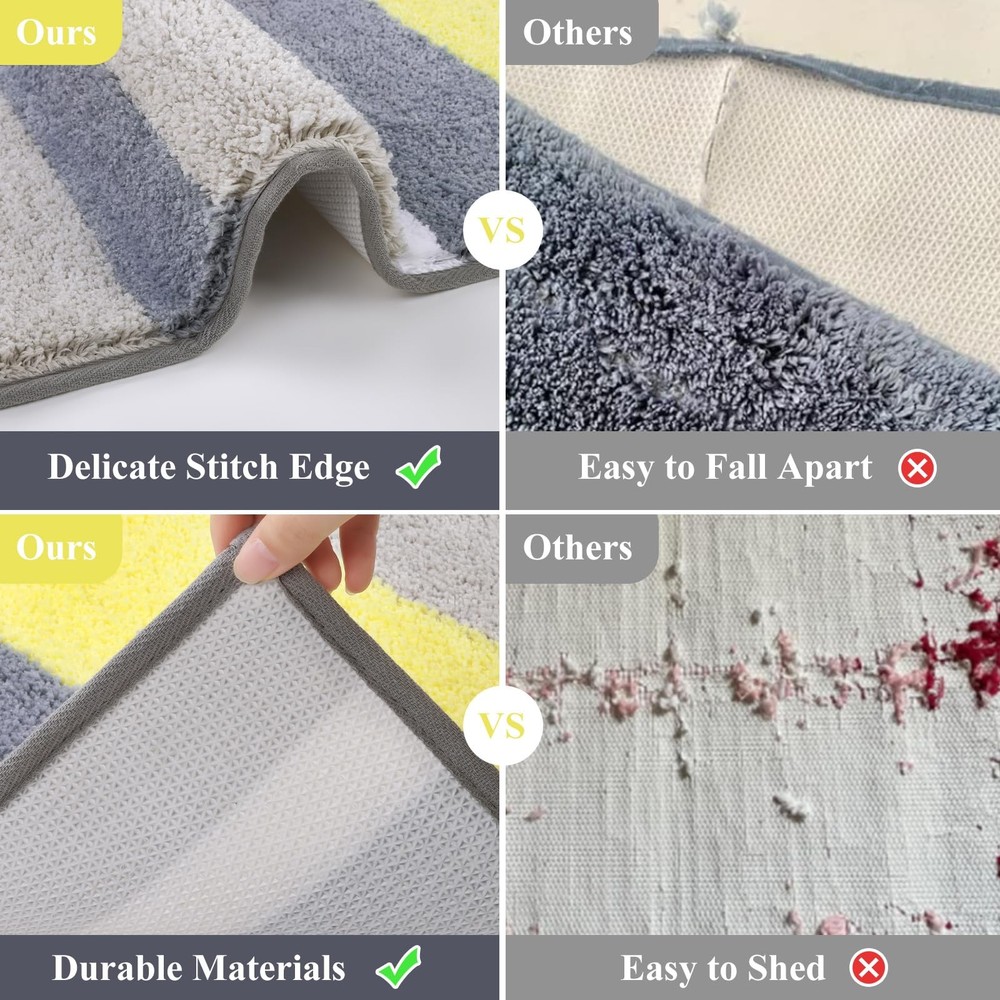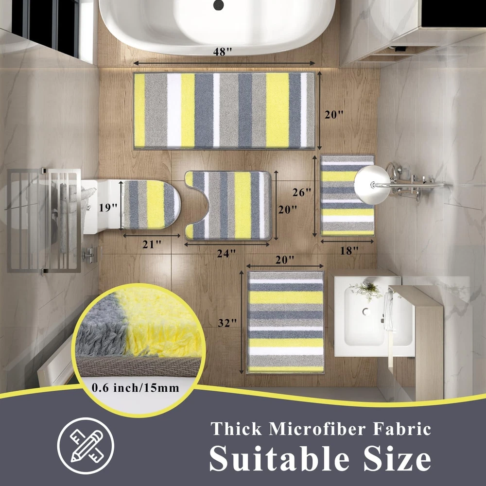 When you walk on the bathroom floor, do you sometimes feel fatigue or afraid of slipping? Microfiber bath mats will be your ideal choice! Why choose us? Not Easy to Shed- The shaggy microfiber mats adopt advanced fiber locking technology. The bathroom floor matts are not easy to shed and won’t be smelly. Gradient Stripes Patterns- The gradient stripes patterns are stylish and attractive, which will matched well with the towels, bathroom decorations and accessories. Non Slip TPR Bottom- High quality TPR materials are more slip-resistance than other PVC materials and cotton materials. Easy to Clean- The cushioned bathmat for home can be washed by hand or washing machine. Or you can use a vacuum cleaner to clean it. Specifications: Material: Premium Luxury Microfiber + TPR Pattern: Gradient Stripes Color: Yellow Thickness: 0.6 inch / 15 mm Size: 18''x26''+20''x32''+20''x47''+U20''x24''+Lid Cover Warm Prompt: Due to the light and camera, the color of the bathroom rug runner and the color in the picture will be slightly different. All dimensions are manually measured, so the deviation is 0.3 to 1.5 inches. Hope you can understand, thanks. Before placing the bath mat 2 pieces set on the floor, please make sure that the ground where it will be placed should be clean, flat and dry. Customer Service: If you have any questions, please contact us and we will try our best to help you deal with it within 24 hours. We will provide you with the most cost-effective shopping experience. Choose us=choose rest assured! Soft Bathroom Rug: The bath rugs set is made of microfiber materials. The thickness is 0.6 inches(15mm), which is soft and can provide enough support for you. Every time you walk on the shower mat barefoot, the soft fabric can soothe your tired feet Absorbent Bath Mat: The non slip bath floor mats set has superb good water absorption. And the bath mat set for bathroom uses non-slip TPR as the bottom material. It can improve friction on various floors including wooden floors and ceramic tiles Washable Bath Mat: You can toss bathroom rugs into the washing machine, wash them in cold water and hang them to dry or air dry. And our dozens of machine washing tests show that the bath carpet can withstand frequent machine washing without deformation Functional :18X26 inches+20X32 inches+20X47 inches+20X24 inches+lid cover bathroom mats use the stylish multi-color stripe design, which can be perfectly matched with towels and other bathroom decorations or accessories. Plrfect for various occasions such as bathroom, toilet, tub, kitchen, bedroom, door entrances, patio entry ways, beauty care business, pet house, and so on. It is also ideal as a gift for your loved ones on Christmas, wedding, Father’s Day or Mother’s Day Warning: Before placing the bathroom rugs and mats set on the floor, make sure that the ground where it will be placed should be clean, flat and dry. If there is water or dust under the absorbent bath mat runner, it may cause slippage