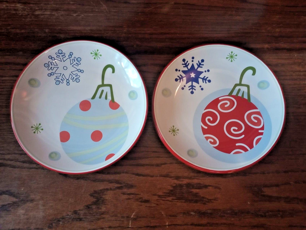 5-Piece Pfaltzgraff Taffy Candy Christmas Plates - 3 Blue & 2 Red Ornament Designs