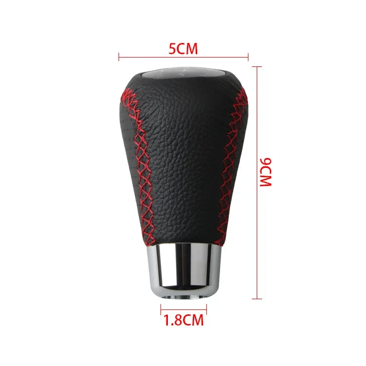[Commercial products] : Car modification leather five gear head - three colors [Material] : leather + aluminum alloy [Color] : Red, blue, black [Gauge] : Length 9cm [Package size] : length 12cm* width 5cm* height 6cm [Weight] : 164g [Fittings] : Adapter + mounting wrench [Applicable model] : Manual general purpose [Other note] : The automatic file can be modified by using the shift head converter.