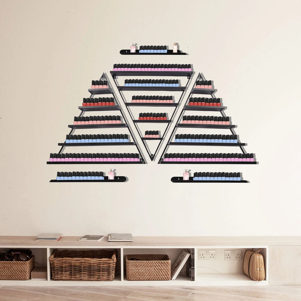 Specification Material: Iron Color: Black Style: Modern Shape: Triangle Number of Pieces: 6 Process: High-temperature Baking Paint, Welding, Polishing Mounting Type: Wall-mounted Max. Load-bearing Capacity: 50kg/110lbs Gross Weight: 6.5kg/14.33lbs Net Weight: 6kg/13.22lbs Package Size: 68*10*75.5cm/26.77*3.93*29.72in Each Triangular Display Rack Size: 66*7*70cm/26*2.76*27.6in Each Horizontal Bar Size: 55*8cm/21.65*3.1in Thickness: 0.7mm/0.03in 5-Tier Black Wall Mount Iron Nail Polish Display Rack Kits w/3x Horizontal Bars 5 Tier Wall-Mounted Metal Nail Polish Display Rack Triangular Floating Wall Mount Shelves Description This is a wall mounted nail polish display rack that can help you achieve both decorative and storage functions. Its solid triangular structure and thickened and widened iron shelves can easily store and display nail polish, cosmetics, and more. The smooth lines and shiny metallic sheen bring stylish and elegant style to your walls. Key Features High-quality Material : This nail polish rack is made of high-quality iron, which is very sturdy and durable. Spacious 5-tier Shelf : The 5 tier structure of this nail polish rack can provide enough space for your beautiful and colorful nail polish. The spacious storage design allows you to place two rows of nail polish on each layer, as well as lipstick, salon oils, perfume, and small cosmetic bottles. Easy to Use : The open design of the nail polish rack makes it easy to find the color and bottle you want without opening the lid or drawer. 6-piece Set : The 3 triangular display shelves and 3 crossbars can be combined at will to provide you with enough capacity for you to place items at will. Space-saving : The wall mounted shelf can make full use of wall space without taking up valuable space on your dressing table, making your table less cluttered. Superb Craftsmanship : The surface of this nail polish rack uses a superb high-temperature baking lacquer process to present a smooth, shiny metallic luster while enhancing the corrosion and wear resistance of the product to extend its service life. Excellent Load-bearing Capacity : Thickened(0.03in) and widened(2.76in) shelves and solid triangular structure provide the product with a load-bearing capacity of about 110 pounds for you to place various items without worry. Fashionable Appearance : The unique triangular structure and smooth, white surface give the rack a stylish, elegant style. The unique rack and the colorful nail polish bottles create a harmonious and romantic picture. Easy to Install : The product's simple structure and complete accessories provide you with easy installation. You only need to use screws to fix it on the wall. Easy to Clean : The product's smooth baked finish and simple lines make it easy to clean. You just need to wipe it gently with a damp cloth. Protective Packaging : The product is carefully packed in cardboard boxes to avoid damage during shipping, which allows it to reach you intact. Details Rounded Corners : The rounded, smooth corners protect your hands from scratches for easy installation and use. Guardrails : Each tier shelf is equipped with a raised guardrail on both sides to prevent objects from falling. Application It is suitable for nail salons, salon stores, homes, etc. to display and store items. Specification Material: Iron Color: Black Style: Modern Shape: Triangle Number of Pieces: 6 Process: High-temperature Baking Paint, Welding, Polishing Mounting Type: Wall-mounted Max. Load-bearing Capacity: 50kg/110lbs Gross Weight: 6.5kg/14.33lbs Net Weight: 6kg/13.22lbs Package Size: 68*10*75.5cm/26.77*3.93*29.72in Each Triangular Display Rack Size: 66*7*70cm/26*2.76*27.6in Each Horizontal Bar Size: 55*8cm/21.65*3.1in Thickness: 0.7mm/0.03in Installation Move the entire triangular rack to the wall at a height of about 1.5m/4.92ft and mark it. (All three holes should be marked) Use an electric drill to make holes in the marked area (No. 6 drill bit for solid wall, No. 8 drill bit for hollow wall) Use a hammer to punch the green expansion tube into the wall holes. (Hollow wall into the white expansion tube) Use an electric drill to rotate the self-tapping screws into the expansion tube inside (leave a little space) The entire triangular rack will be aligned to hang on the installation is complete. (The same method of installation of the horizontal bar.) Package Included 3* Wall-mounted Nail Polish Display Racks 3* Horizontal Bars All Accessories Needed for Installation Notes Please allow the slight color difference caused by the shooting light and 1-3cm error due to manual measurement. Please make sure you do not mind before you order. Payment Delivery details Terms of sales About us Contact us Payment We accept ebay payment 。 Fees such as import duties, taxes are not included in the item price or shipping costs. These charges are the buyer's responsibility. Delivery details Shipping: 2-9 working days to: USA Terms of sales We maintain high standards of excellence and strive for hundred percent customer satisfaction. Feedback is very important to us. We hope that you contact us immediately before you give neutral or negative feedback, so that we can address your concerns. It is impossible to address issues if we do not know about them! About us Your satis faction is our ultimate goal. We work hard to earn your trust and future business. Our certified technicians have tested each item before shipping. The unit comes with 1 year limited warranty on all manufacturing defects. a) If you receive a defective item, you may return it or ask for a discount. Please contact us within 14 days after you receive the package. b) What you returned must be intact and in its original packaging as re? u. Customer is responsible for shipping costs of the returned item. c) We will cover the cost of shipping back t with the shipping rate indicated in the registration page. We will send you a new unit or refund the full payment you paid. Thank you. Contact us Bu