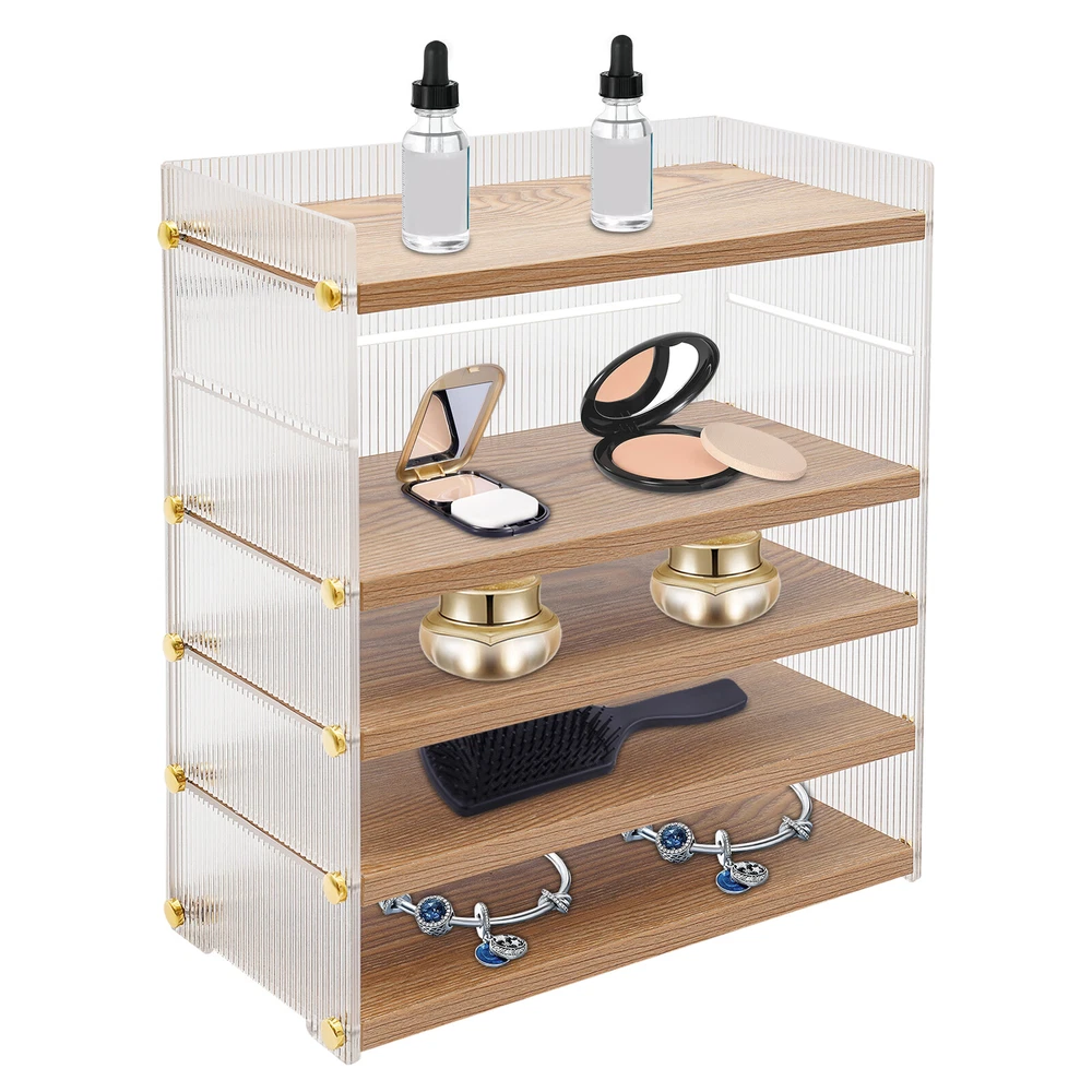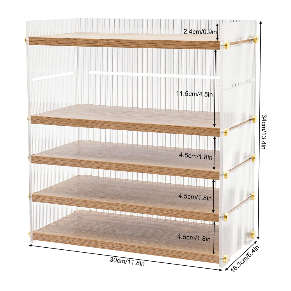 Description Our desktop organizer can help you organize your messy desktop. It is made of high-quality materials, so it has a long service life. The 5-tier design can meet your daily storage needs. In a word, it can effectively help you reduce the pressure on your countertop, which is an ideal choice. Key Features Build to Last: Made of PS and MDF with cutting, edge sealing, and punching processes, this product is wear-resistant, corrosion-resistant, and durable, ensuring your long-term use. Storage Assistant: The 5-tier design provides enough space to store your face cream, eye shadow plate, facial mask, lipstick, snacks (all are not included), etc., making full use of the vertical space and allowing your items to be placed in order. Generous Appearance: Wood and clear tones, smooth li 5 Tiers Clear Desktop Organizer Cabinet Desk Jewelry Drawer Display Storage Box Welcome~ Description Our desktop organizer can help you organize your messy desktop. It is made of high-quality materials, so it has a long service life. The 5-tier design can meet your daily storage needs. In a word, it can effectively help you reduce the pressure on your countertop, which is an ideal choice. Key Features Build to Last: Made of PS and MDF with cutting, edge sealing, and punching processes, this product is wear-resistant, corrosion-resistant, and durable, ensuring your long-term use. Storage Assistant: The 5-tier design provides enough space to store your face cream, eye shadow plate, facial mask, lipstick, snacks (all are not included), etc., making full use of the vertical space and allowing your items to be placed in order. Generous Appearance: Wood and clear tones, smooth lines, and rectangular structure give this product a generous appearance, making it easy to integrate into your home environment. Strong Load-bearing Capacity: The high-quality materials, sturdy screw fixation, and stable rectangle structure make this product capable of bearing about 6.61 lbs per tier, allowing you to use it with confidence. Adjustable Tier Spacing: You can adjust the tier spacing by removing a single-tier board to store taller items. Effortless Cleaning: Thanks to the smooth surface and simple construction, you can easily wipe off the dirt on it with a soft cloth. Thoughtful Gift: This is an ideal gift for colleagues, friends, and family to help them organize their belongings and keep their desks tidy. Good Customer Service: We stand behind all our guests and look forward to assisting you with your purchase. It is our pleasure to answer your confusion and questions. The end of the story between us is not "we sell and you buy". Details Clear Texture: The clear texture on the surface can restore the most realistic touch and give you a better feeling of use. Smooth Edge: The rounded and smooth edges not only add to the aesthetics of the product but also improve the safety of use. Application It is suitable for a desk, office table, dresser, or bedside table to display and organize figurines, lipstick, jewelry, collectibles, glassware, and any other small items. Specification Color: Wood, Clear Style: Modern Shape: Rectangle Assembly Required: Yes Mount Type: Tabletop Number of Tiers: 5 Material: PS, MDF Process: Cutting, Edge Sealing, Punching Each Tier Load-bearing Capacity: About 3kg/6.61lbs Tier Spacing: 4.5cm/1.8in, 11.5cm/4.5in Overall Product Size: 30*16.3*34cm/11.8*6.4*13.4in Package Included 1* Desktop Organizer 1* Screwdriver Other Accessories for Assembly Notes Please note that this product does not include any other items. Please check the size carefully before ordering. Please do not place it in a damp place or near an ignition source. Please place heavy items on the lower tiers as much as possible. Please use it within the load-bearing range. Please allow the slight color difference caused by the shooting light and the 1-3 cm error due to manual measurement, and make sure you do not mind before ordering. Payment Delivery details Terms of sales About us Contact us Payment We accept ebay payment 。 Fees such as import duties, taxes are not included in the item price or shipping costs. These charges are the buyer's responsibility. Delivery details Shipping: 2-9 working days to: USA Terms of sales We maintain high standards of excellence and strive for hundred percent customer satisfaction. Feedback is very important to us. We hope that you contact us immediately before you give neutral or negative feedback, so that we can address your concerns. It is impossible to address issues if we do not know about them! About us Your satis faction is our ultimate goal. We work hard to earn your trust and future business. Our certified technicians have tested each item before shipping. The unit comes with 1 year limited warranty on all manufacturing defects. a) If you receive a defective item, you may return it or ask for a discount. Please contact us within 14 days after you receive the package. b) What you returned must be intact and in its original packaging as re? u. Customer is responsible for shipping costs of the returned item. c) We will cover the cost of shipping back t with the shipping rate indicated in the registration page. We will send you a new unit or refund the full payment you paid. Thank you. Contact us Business Hour Business Hour: Monday To Friday: 8:30 AM to 5:00 PM (Beijing China time) Due to time zones, our reply to your questions may not be immediately. But within above working time, we will reply your email within 24 hours. If it's non-workdays, please kindly be patient and wait till Monday. Please contact us with ebay message. Please feel free to contact us if you have any questions. Monday To Friday: 8:30 AM to 5:00 PM (Beijing China time) Due to time zones, our reply to your questions may not be immediately. But within above working time, we will reply your email within 24 hours. If it's non-workdays, please kindly be patient and wait till Monday. Please contact us with ebay message. Please feel fr