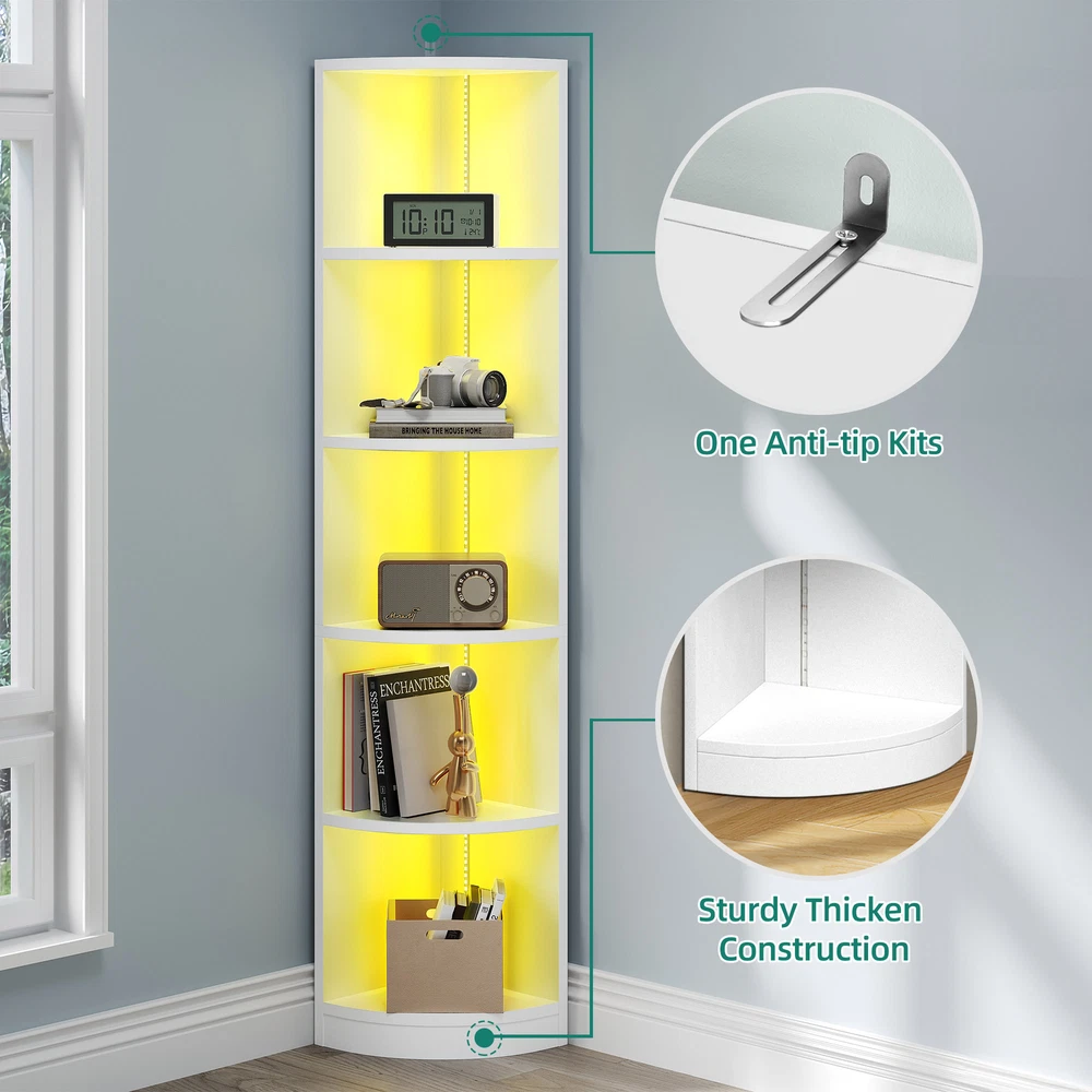Featured types you may look for 6-Tier Corner Bookcase 6-Tier Corner Bookcase 6-Tier Corner Bookcase 6-Tier Corner Bookcase 5-Tier LED Corner Shelf 71" Tall Wood Bookcase Bookshelf Open Storage Rack White Item Description: About Us RGB LED Lights It features 7 colors and 21 dynamic modes (flash, storage, fade, smooth). And it comes with music synchronization function 90° Right Angle Design Any small corner can be maken the best of to create more storage space. The compact corner shelf occupies only little space. Smooth Round Edge Round edges can prevent you and your family from being scratched, a safer furniture for a family with young boys, young girls or pets Protective Foot Nails Designed to keep your corner bookshelf stable and prevent scratching the valuable floor. Features: 1. B ookcase with RGB LED Lights: It features 7 colors and 21 dynamic modes (flash, storage, fade, smooth). And it comes with music synchronization function, the LED light color and flashing mode will change with the rhythm of your musicflexibly controlled via a phone app. 2. Well-designed: Made for storing lightweight items for your convenience, the white wooden corner shelf allows you to organize books, photo frame, plants in the living room or office supplies in the office. 3.Enough storage space: This corner bookcase offers your enough storage space while occupying small space in corners. It can utilize your corners as a useful storage room by storing your various odds and ends and making the room tidy. 4. Space-saving: This 5-tier corner bookshelf is very versatile and can serve as a display rack or a corner bookshelf, fitting well in any small corners or standing alone in any room. Its side panels are designed to prevent items from falling. 5.Improved stability & durability: Made of strengthened MDF boards, a corner bookshelf Is very sturdy and durable. A painted surface can stand considerable wetness and scratches and is easy to clean. Non slip feet pads help keep the bookshelf level on the uneven floor. 6.Easy assembly: This corner bookshelf comes with all accessories and an Easy understanding user manual to help you effortlessly set up this bookshelf by yourself. Please email us when you encounter any problems with products. We will reply to you with quick and satisfying solutions Specifications: Size: 11.7"D x 11.7"W x 70.9"H Item Weight: 32.85 Pounds Room Type:Office, Living Room, Library, Study Room Finish Type :Lacquered Package Included: 1 x Bookshelf 1 x Packet of Fittings 1 x Instruction Manual More Display: Shipping ● The shipping rates listed are only for residential or commercial destinations in the continental 48 United States. All international sales will go through eBay Global Shipping Program.please ask us if there are any questions. ● We only ship the item to the address that is sent to us at the time of checkout. Please verify the correct shipping address in your PayPal account before making your payment. If we ship your item to an old or invalid address and you are not able to locate the item, we are not responsible for shipping a replacement. ● Currently, we do not ship to Hawaii, Alaska, Puerto Rico,APO/FPO/PO Boxes. ● We use USPS, UPS & FedEx as shipping method. ● Payments cleared before 12 PM PST, will be shipped on the same day. Payment ● We accept PayPal and all forms of credit card. ● We will only ship to the confirmed Paypal shipping address given with the payment. ● We do not offer local pick up service. Return ● 30 days Money Back Guarantee. ● If any package that needs to be returned, please contact our customer service first to receive a RMA form. ● All return items MUST be in brand new condition. About Us ● Specialized in aftermarket auto parts since 2012, we source and work directly with professional manufacturers to provide the highest quality parts at the most economical prices. ● We also has over 5 years of shipping experience with FedEx and USPS . Our Packing Quality is Guaranteed , Item Ship-ping is timely!