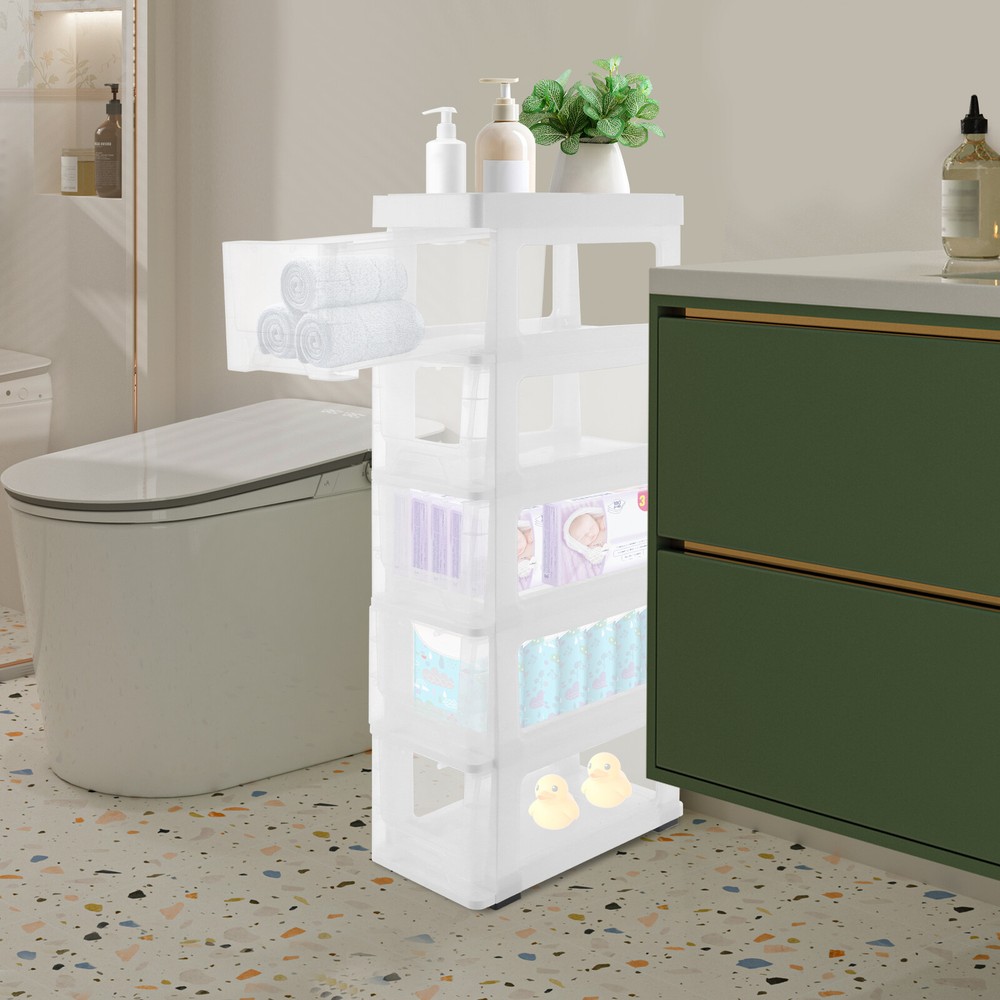 5 Tiers Sturdy Narrow Storage Organizer Cabinet Bathroom Floor Standing Cabinet Welcom to yybshop06 Description This bathroom storage cabinet combines sturdiness, thoughtful design, and powerful functionality. The 5-tier capacity accommodates most of your daily essentials, ensuring each item has its place. The tall and narrow design is tailored for small spaces, providing ample storage even within limited areas. Please choose this product to create a tidy, comfortable, and pleasant bathroom environment. Key Features Long Service Life: This product is made from premium PP, making it moisture-resistant , wear-resistant , and not easily deformed, with a strong load-bearing capacity and high durability, to ensure your long-term use. Large Capacity: The 5-tier cabinet design and the top groove design make it easy for you to categorize and store cosmetics, toiletries, cleaning products, etc.(not included), and not easy to fall off. Thoughtful Design: The drawer design can protect your items from dust and moisture , providing better storage. The drawer also features a V-shaped anti-fall buckle for added peace of mind. Improve Space Utilization: Its compact footprint ( 7.09*14.96in ) and slim vertical structure cleverly utilize tight spaces, allowing it to fit into relatively narrow areas in the bathroom. Fashionable Appearance: The classic white frame with a clear color scheme gives the product a simple yet fashionable outlook. No matter where it is placed, it will become a beautiful sight. Ideal Gift: The beautiful appearance and practical functions make it a wonderful housewarming gift for family and friends. Simple Clean-up: It has a smooth surface and a simple structure, so you only need to wipe the dust or stains with a towel regularly. Simple Installation: This product is simple in structure and easy to assemble. You can finish the installation yourself by following the installation diagram. Buy with Confidence: We stand behind all our guests and look forward to assisting you with your purchase. It is our pleasure to answer your confusion and questions. The end of the story between us is not "we sell and you buy". Details Practical Small Pulleys: The bottom pulleys can move left and right, allowing you to move the cabinet more easily. Rounded Corners: They can protect your hands from being scratched during use while enhancing the product's aesthetics. Application This product can be used for storing tissues, shampoos, creams, spices, towels, and other daily items in the bathroom, toilet, bedroom, laundry room, kitchen, living room, etc. Specifications Color: White+ Clear Style: Modern Material: PP Process: Molding Shape: Rectangular Assembly Required: Yes Mount Type: Free Standing Number of Tiers: 5 Product Size: 18*38*84cm/7.09*14.96*33.07in Package Size: 40*40*31cm/15.75*15.75*12.2in Gross Weight: 3.22kg/7.1 lbs Net Weight: 3.06kg/6.75 lbs Package Included 1* Bathroom Storage Cabinet 1* English Installation Diagram Notes Please check the size carefully before ordering. Please note that this product does not include any bathroom items. Please allow the slight color difference caused by the shooting light and 1-3cm error due to manual measurement, and make sure you do not mind before you order. Payment Delivery details Terms of sales About us Contact us Payment We accept ebay payment 。 Fees such as import duties, taxes are not included in the item price or shipping costs. These charges are the buyer's responsibility. Delivery details Shipping: 2-9 working days to: USA Terms of sales We maintain high standards of excellence and strive for hundred percent customer satisfaction. Feedback is very important to us. We hope that you contact us immediately before you give neutral or negative feedback, so that we can address your concerns. It is impossible to address issues if we do not know about them! About us Your satis faction is our ultimate goal. We work hard to earn your trust and future business. Our certified technicians have tested each item before shipping. The unit comes with 1 year limited warranty on all manufacturing defects. a) If you receive a defective item, you may return it or ask for a discount. Please contact us within 14 days after you receive the package. b) What you returned must be intact and in its original packaging as re? u. Customer is responsible for shipping costs of the returned item. c) We will cover the cost of shipping back t with the shipping rate indicated in the registration page. We will send you a new unit or refund the full payment you paid. Thank you. Contact us Business Hour Business Hour: Monday To Friday: 8:30 AM to 5:00 PM (Beijing China time) Due to time zones, our reply to your questions may not be immediately. But within above working time, we will reply your email within 24 hours. If it's non-workdays, please kindly be patient and wait till Monday. Please contact us with ebay message. Please feel free to contact us if you have any questions. Monday To Friday: 8:30 AM to 5:00 PM (Beijing China time) Due to time zones, our reply to your questions may not be immediately. But within above working time, we will reply your email within 24 hours. If it's non-workdays, please kindly be patient and wait till Monday. Please contact us with ebay message. Please feel free to contact us if you have any questions. Features ★Fast shipping,Long service life★ Fe'a'tu're's ★Stable performance and high quality★ Brand Unbranded Type Bathroom Storage Cabinet Item Height as pictures shown Item Length as pictures shown Item Width as pictures shown Mounting Free Standing Color White+Clear Material PP