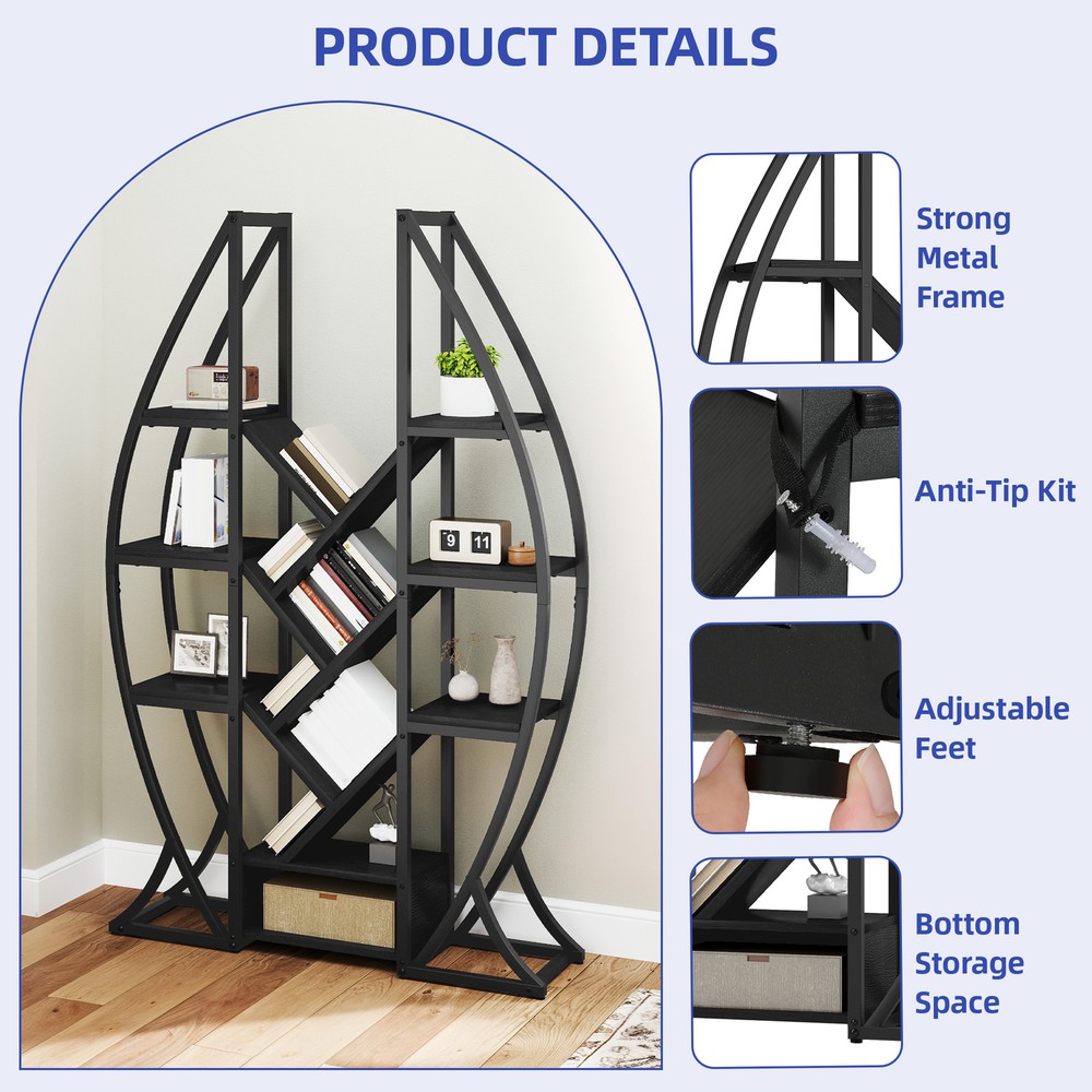 5 Tier Oval Shaped Bookshelf Black Bookcase Wooden Etagere Rack Display Home Product Description NOTE: Professional Installation would be Highly Recommended. Descriptions: 1. Material: MDF Board, Metal 2. Color: Black 3. Mounting Type: Freestanding 4. Special Design: Oval Shape, Metal Frame, Adjustable, Drawer Storage 5. Suitable For: Home, Office, Bedroom, Living Room, Study Room Features: 1. Industrial Oval Shape Design : This bookshelf combines a modern industrial aesthetic with a unique oval shape, creating a bold and functional statement piece. Its minimalist design fits effortlessly into contemporary or rustic interiors. 2. Layered Storage Design : Designed with a multi-tiered layout, the bookshelf offers ample space to display a variety of items, including books, decorative pieces, and plants. Its organized tiers provide easy accessibility and an attractive visual arrangement. 3. Robust Build Quality : Constructed with a high-strength metal frame, this bookshelf is built for durability and everyday reliability. Its industrial-grade materials ensure it stands strong against wear and tear over time. 4. Comprehensive Safety Systems : Equipped with an anti-tip and anti-fall kit, this bookshelf prioritizes safety, ensuring it stays securely anchored to prevent accidental mishaps, making it ideal for households with kids or pets. 5. Functional Features for Everyday Use : With adjustable feet to accommodate uneven floors and a roomy bottom storage space for stowing away larger items, this bookshelf is as practical as it is stylish, keeping your living space tidy and well-organized. Dimensions: 1. Product Dimensions: 11.8"D x 51.2"W x 69.9"H 2. Weight Capacity: 56 lbs Package Includes: 1. 1 x Bookshelf 2. 1 x Packet of Fittings 3. 1 x Instruction Manual Shipping 1. Normally the item will be dispatched within 1 business day if payment is cleared before 12pm PST. 2. Please verify the correct shipping address in your PayPal account before making the payment. We only dispatch the item to the address that is sent to us at the time of checkout. 3. We don't ship to Hawaii, Alaska, Puerto Rico, APO/FPO/PO Boxes. 4. We don't provide local pick-up service. 5. Normally we will use USPS, UPS, FedEx & LTL to dispatch items. Payment 1. We accept PayPal and credit card. 2. We will ship to the confirmed Paypal shipping address that is provided with the payment only. Return 1. 30 days Money Back Guarantee. 2. Please contact our customer service to receive a RMA form first if want to return the item. 3. All returned items MUST in new condition with the original package. Contact If has any problem, please contact us by sending an ebay message. Our customer service will resolve the problem as soon as possible. On Dec 17, 2024 at 01:11:40 PST, seller added the following information:
