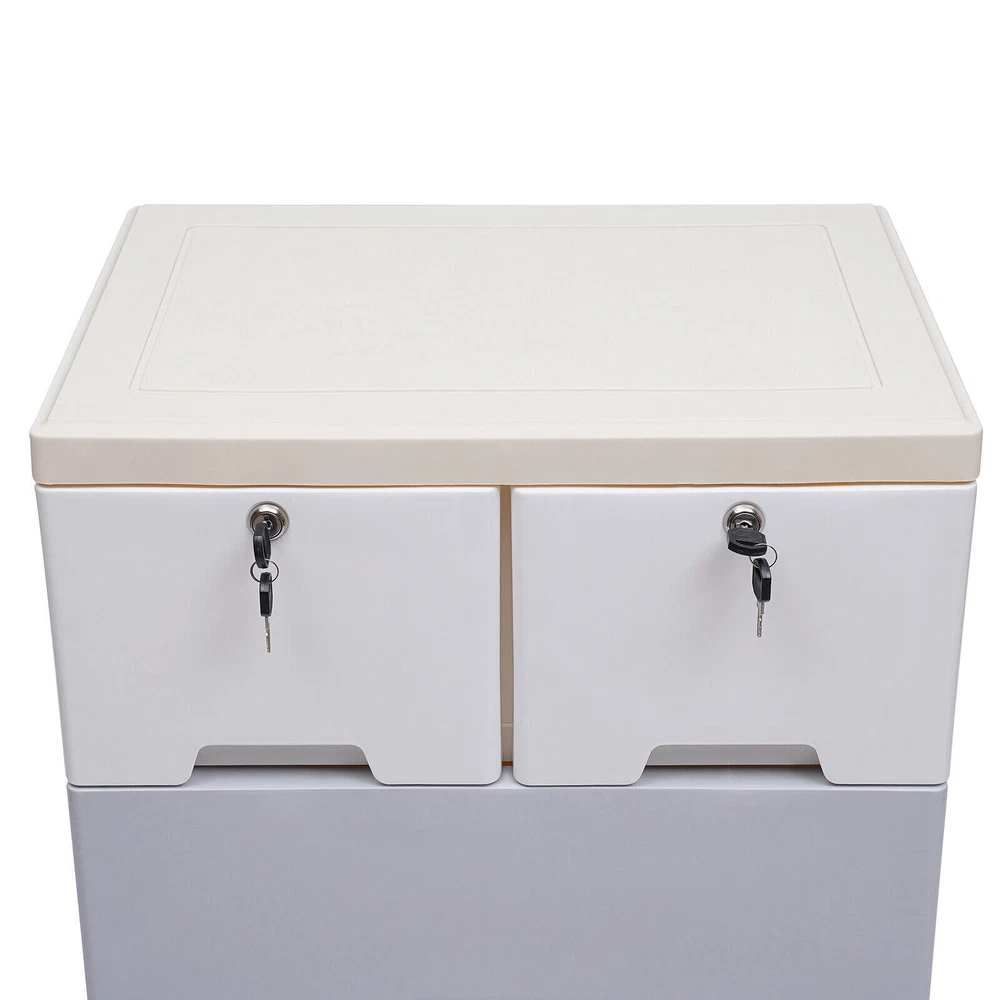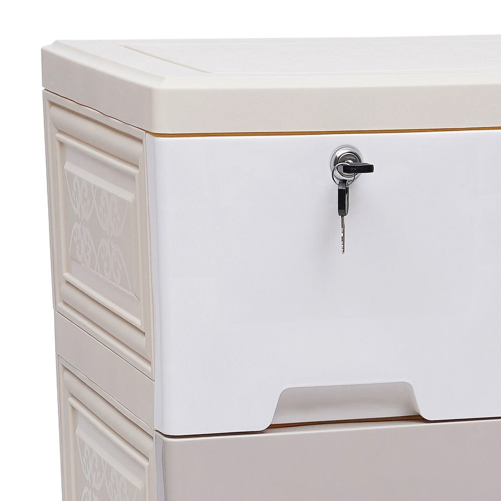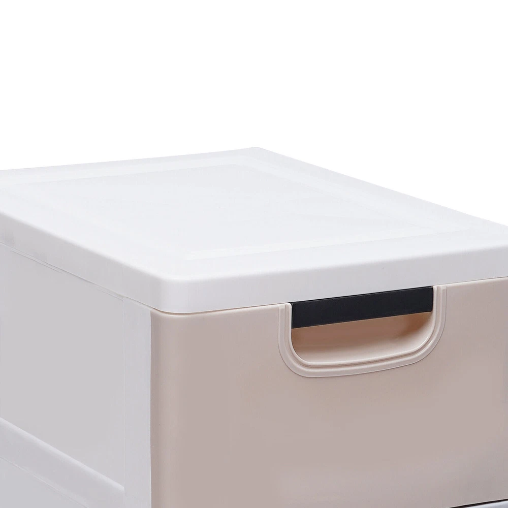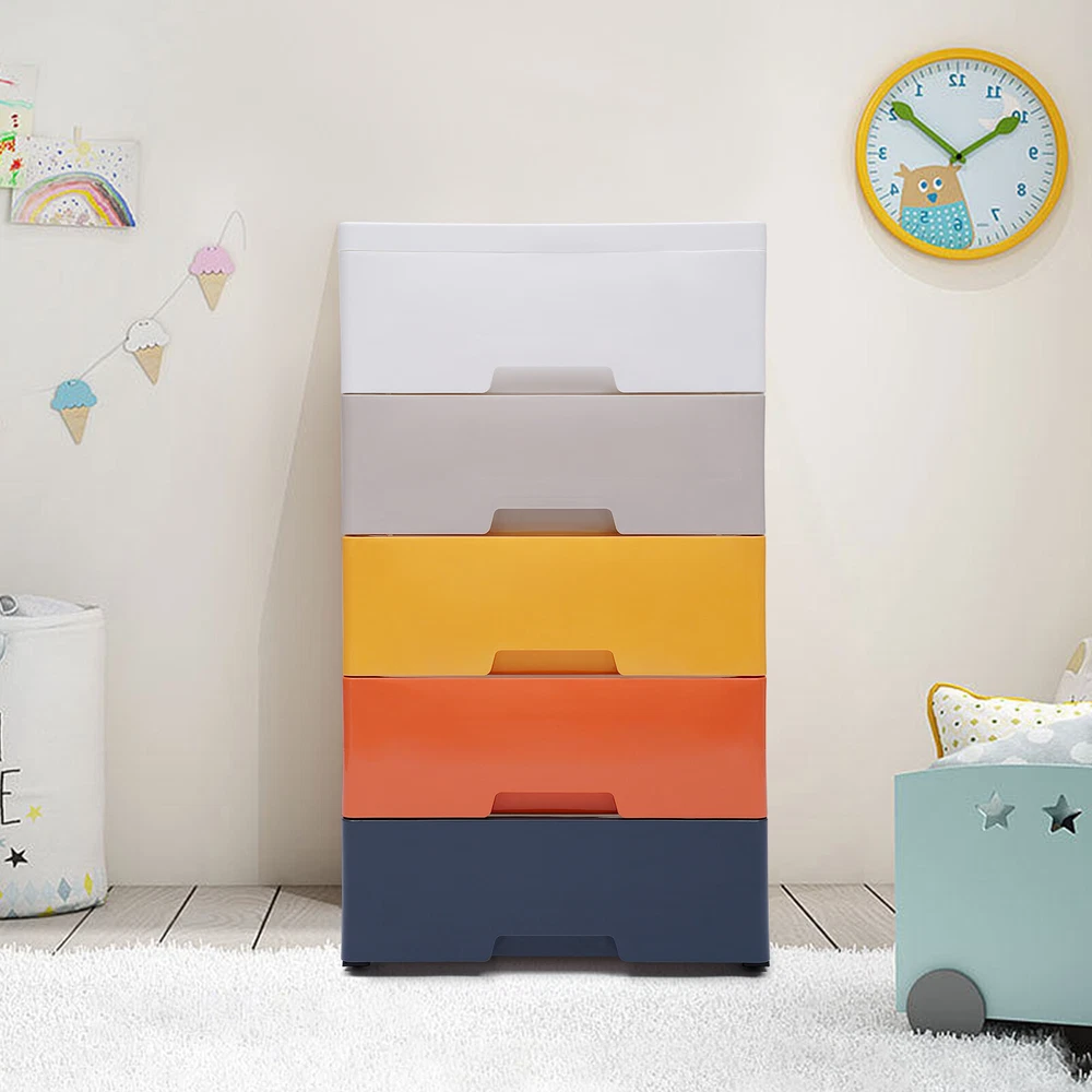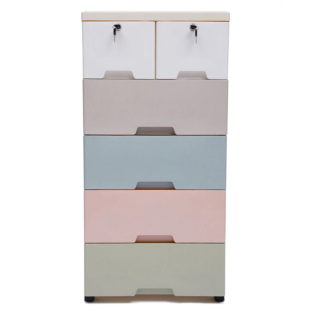 Please make sure the specification of the product before you purchase. Description This is a Multilayer-drawer storage cabinet that makes the most of seemingly useless crevice space for you. With this Multilayer-drawer storage cabinet, you can organize your items into categories. This not only makes items more neatly distributed but also saves time in searching for them. Key Features High-quality Material : The drawer storage cabinet is made of high-quality PP. Its excellent impact resistance makes this product sturdy and durable. And the food grade PP is safer and healthier. Large Capacity : The 5-Tier storage cabinet has five/Six drawers that can hold more than enough items. The large capacity of the 5/6-drawer storage cabinet meets your daily storage needs. Elegant Look : The smooth lines and sleek surfaces create an elegant storage cabinet. Such a stylish storage cabinet is suitable to match various home styles. Space-saving : The drawer storage cabinet is specially designed to utilize the gap space. Its Different size allows it to be placed in closets, cabinets, and bedside gaps, which saves a lot of space for you. Storage Assistant : The five/six drawers of our storage cabinet allow you to ort and store your items while keeping them easily accessible. With this storage assistant, you will embrace a new life of neatness and order. Stacking Design : The 5/6-drawer storage cabinet features a stacking design that allows you to combine and disassemble them as you see fit. The stacking design provides you with more flexible storage styles. Flexible Movement : The bottom of the 5/6-drawer storage cabinet is equipped with four wheels, allowing you to move it easily. Easy to Clean : The smooth surface of the 5/6-drawer storage cabinet is easy to clean. Simply wipe gently with a damp cloth. Easy to Install : We provide you with detailed installation instructions and a complete set of parts. You just need to follow the steps in the instructions to assemble it, which is easy and fast. Protect Your Privacy: This product comes with two drawers with locks, which can protect your privacy very well. (Two of them have locks, the others do not have locks) Details Thickened Top Plate : The top plate is thickened to give it a stronger load-bearing capacity. You can place cups, small potted plants, and other miscellaneous items on the top plate. Snaps : The two sides of each drawer are equipped with snaps to prevent the drawer from sliding down. Dense Frame Structure : The 5/6-drawer storage cabinet is designed with a dense frame, so they are more stable and sturdy. Drawer Handles : The drawers are designed with recessed handles for easy access to items and space-saving. The rounded handles can protect hands from being scratched and is also more beautiful. Smooth Wheels : The wheels at the bottom are made of high-quality PP, which is smooth and delicate. The smooth wheels run with little noise, providing you with a quiet experience. Application This 5/6-drawer storage cabinet is suitable for storing clothes, toys, children's books, and other items. The small size makes it suitable for placing in the crevice space next to beds, closets, sofas, and cabinets. Notes 1.Please read the manual completely before installation and use, and pay particular attention to the safety instructions included. 2.Please allow the slight color difference caused by the shooting light and 1-3cm error due to manual measurement, and make sure you do not mind before ordering.