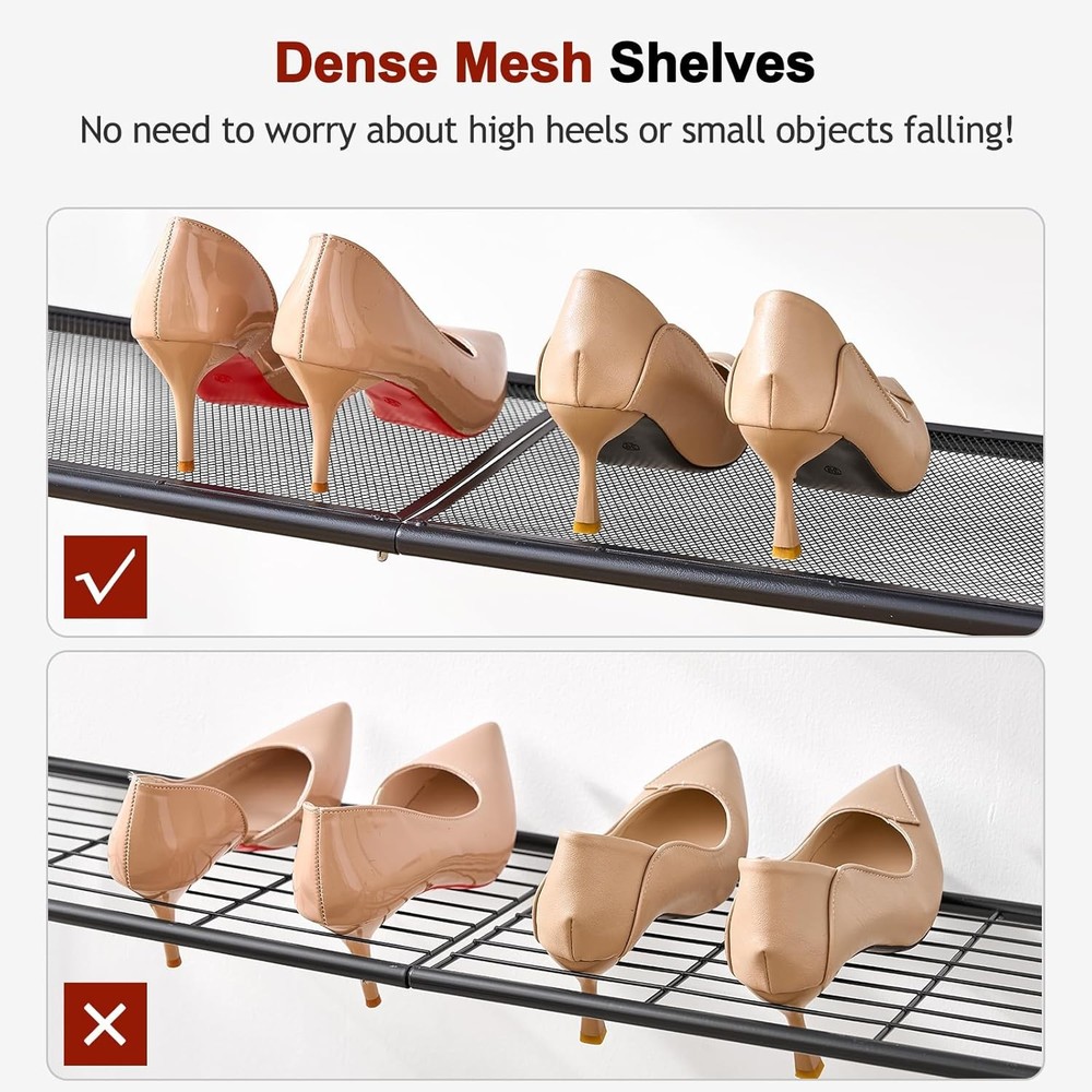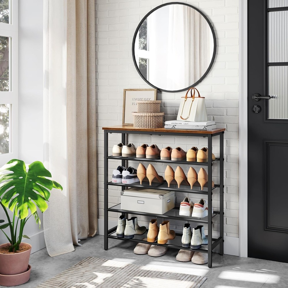This shoe rack is a game-changer! It's super sturdy with steel mesh shelves that hold everything from sneakers to heels without wobbling. Fits perfectly in tight spaces like entryways or closets while holding up to 20 pairs. The compact design saves so much room yet feels solid—no cheap plastic here. Love how easy it is to assemble and how sleek it looks in our hallway. Perfect for keeping shoes organized and off the floor!