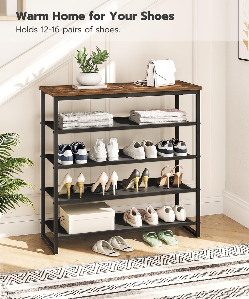 $ 76.324-Tier Rustic Metal Shoe Rack for Indoor Outdoor Storage Organizer