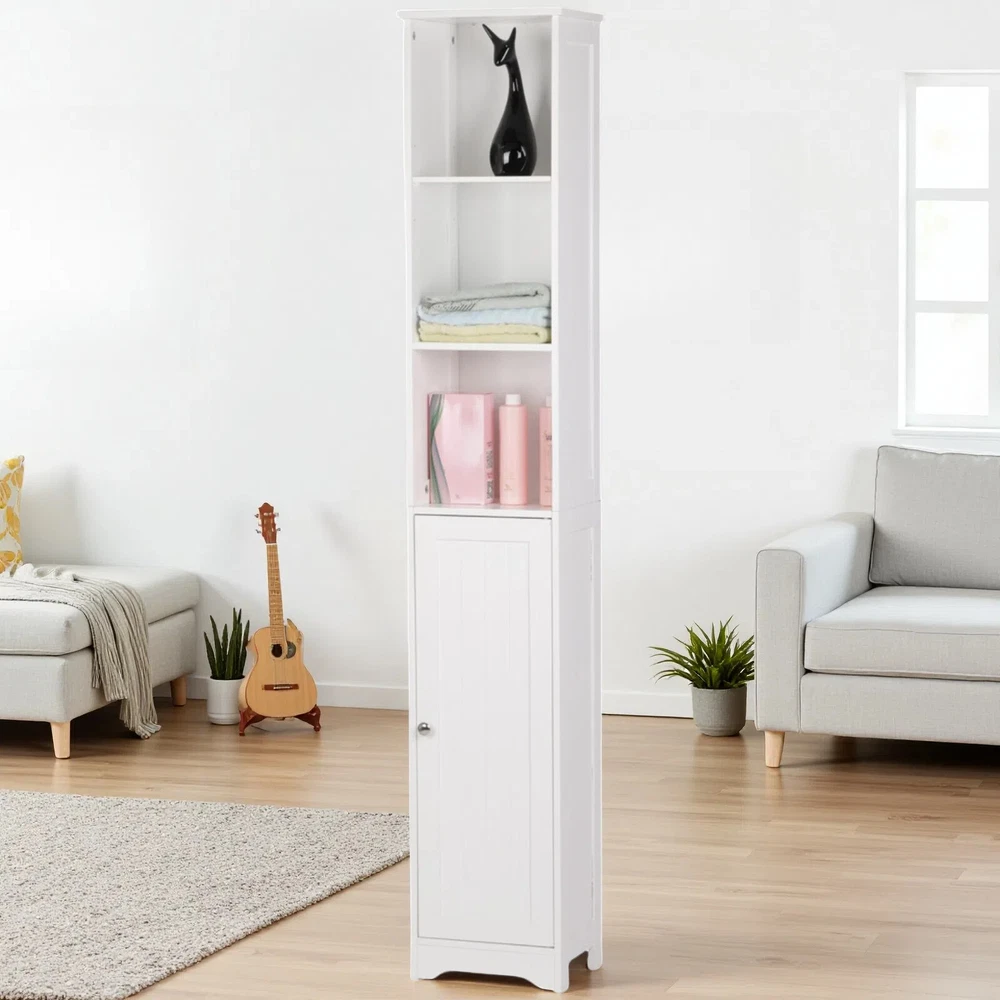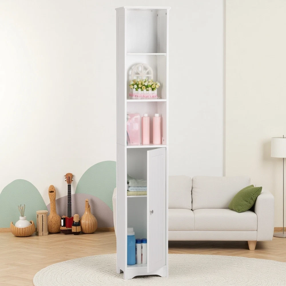 5-Tier Storage Cabinet - White, MDF, Adjustable Shelves Storage & Narrow 5-Tier Storage Cabinet - White, MDF, Adjustable Shelves Storage & Narrow 5-Tier Storage Cabinet Introductions: This is a simple and modern style wall-mounted standing bathroom cabinet. Adopting high quality and hard MDF sheet, it is waterproof and moisture-proof. One door and five-layer design maximizes the storage space and can help you classify your items better. You can put a variety of toiletries, cosmetics, and other sundries. In addition, it features anti-dumping device to further ensure the safety of use. This bathroom cabinet is not only used as bathroom cabinet, but also can be used as side cabinet and bedside table. In addition to the bathroom, you can also put it in the bedroom and living room to meet your diverse home design needs. Features: 1. Made of high quality and hard MDF sheet 2. Chrome handle 3. One door and five layers 4. Anti-dumping device 5. Waterproof and moisture-proof 6. High quality 7. Easy to assemble Specifications: 1. Material: MDF 2. Color: White 3. Dimensions: (11.81 x 9.45 x 66.93)" / (30 x 24 x 170)cm (L x W x H) 4. Storage Room Dimensions: The First/The Second Layer: (10.12 x 9.45 x 9.25-14.57)" / (25.7 x 24 x 23.5-37)cm (L x W x H) The Second Layer: (10.12 x 9.45 x 10.43)" / (25.7 x 24 x 26.5)cm (L x W x H) 5. Door Dimensions: (10.12 x 29.33)" / (25.7 x 74.5)cm (L x W) 6. Weight: 21.16 lbs / 9.6kg Package Includes: 1 x Bathroom Cabinet 1 x User's Manual 1 x Accessories Package Welcome Delivery details Terms of sales About us Contact us Welcome Welcome to our store! Elevate your lifestyle with us. Enjoy a fulfilling shopping experience! Delivery details Your order will be dispatched within 3-5 business days. Once shipped, you will receive all order details via email. Stay informed every step of the way. Sit back, relax, and look forward to your order! Terms of sales Upon payment receipt, your order will be promptly dispatched. Delivery times vary by location and logistics provider. We ensure swift shipping with tracking details. Contact our customer service team for any querie!!! About us We are dedicated to providing high-quality products and exceptional service. Trust us to be your top choice. Your satisfaction is our priority! Find your perfect option with us! Contact us If you encounter any issues, please don't hesitate to reach out to us. Our team is here to assist you promptly and effectively!!! Brand Jutoop Item Length 11.81'' Item Width 9.45'' Item Height 66.93'' Item Weight 21.16 lbs MPN JT-33910436 Model 5-Tier Storage Cabinet Type Storage Cabinet Material MDF/Chipboard Door Style Shaker Color White Number of Shelves 5 Mounting Free Standing Item Length (Interior) 11.8'' Item Width (Interior) 9.45'' Item Height (Interior) 66.93'' Item Depth 9.45'' Assembly Required Yes Additional Parts Required Yes Department Adults Unit Quantity 1 Unit Type Unit Country/Region of Manufacture China