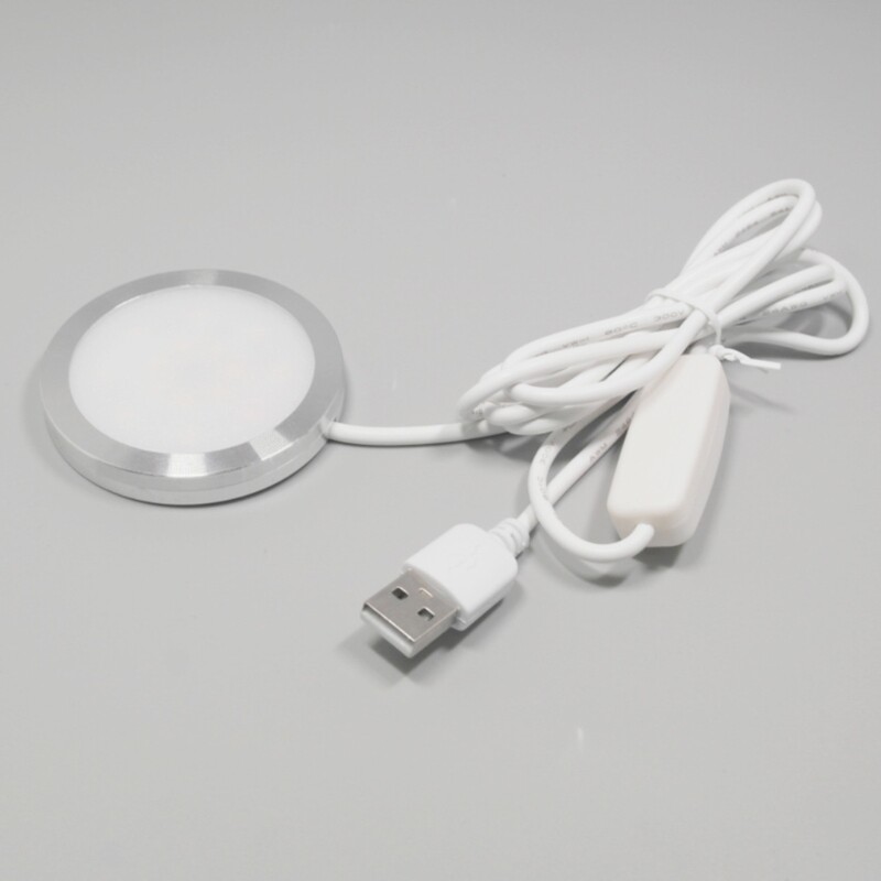 5V 3W USB LED Bedside Lamp with Circle Base Puck Light for Cabinets