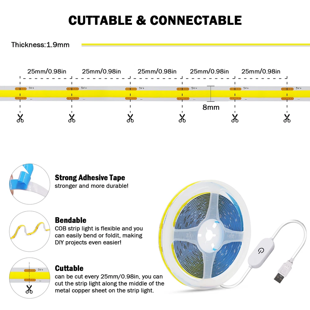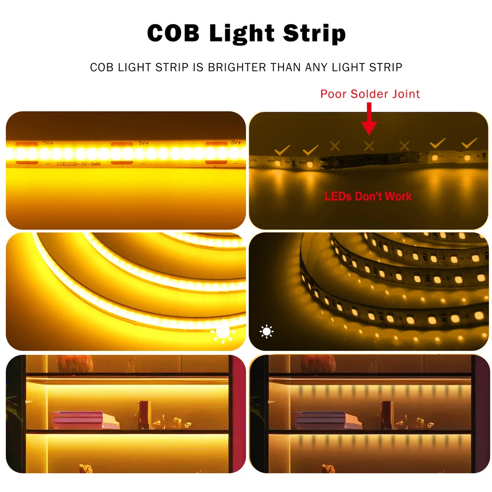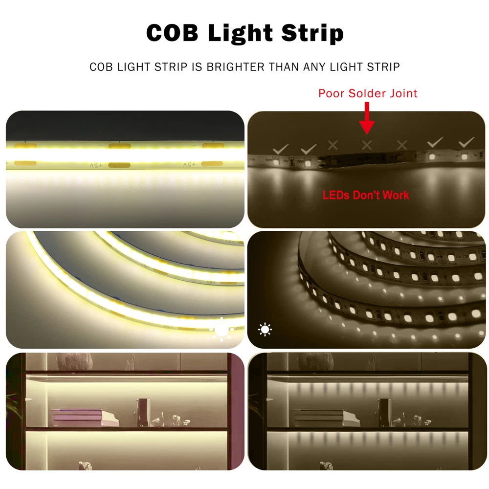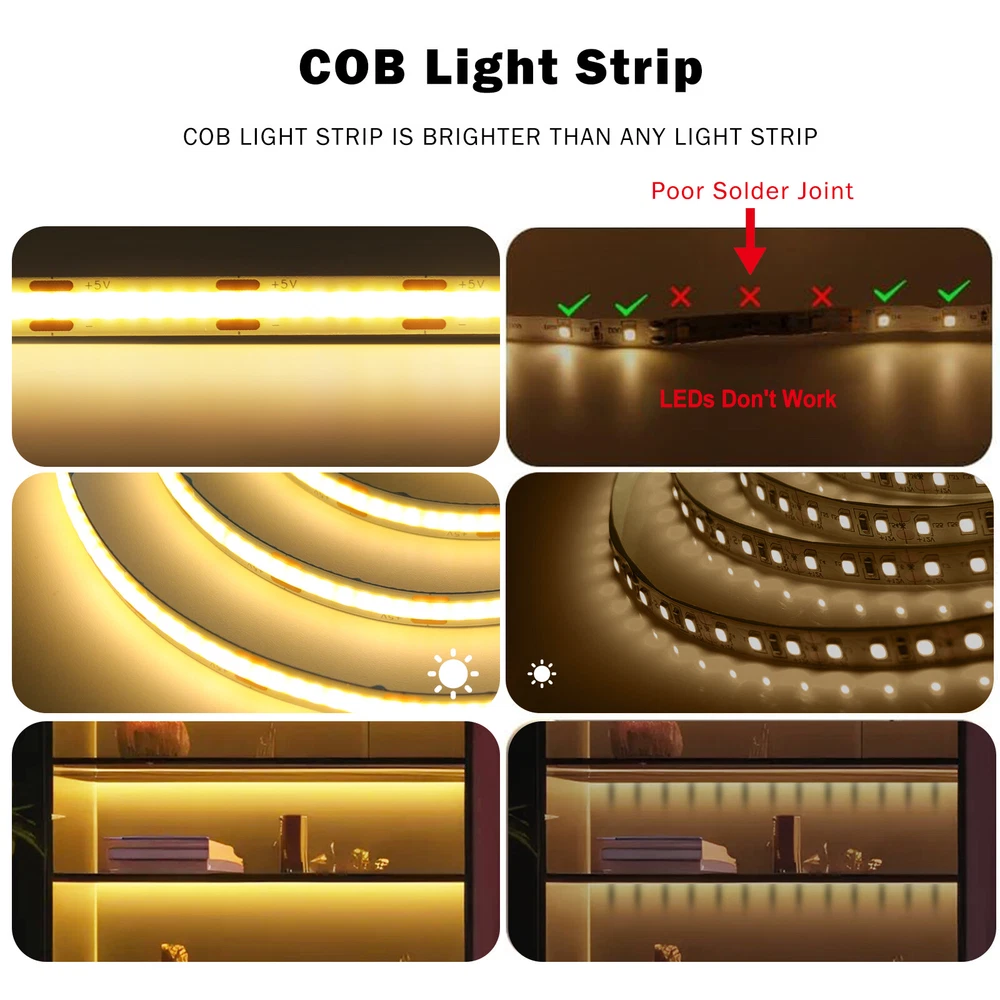 Mini Wireless Hidden Spy Camera HD 1080P WiFi Smart Home Security Night Vision 3.99 USD 2.58 USD Permanent Outdoor Eaves Lights 100ft Smart RGB 60/180 LED APP Remote Control 40.74 USD Free shipping 5V 12V 24V COB LED Strip Light Flexible Tape Lights Home DIY Lighting WW/NW/CW 6.34 USD Free shipping Solar Power String Fairy Lights 20M 200LED Outdoor Waterproof Garden Christmas 3.99 USD 1.99 USD 12V LED Neon Rope Light Strip 1M-5M Flexible Indoor Outdoor Lighting Waterproof 1.98 USD 1.99 USD 2-Pack 5G WirelessWiFi Security Camera System Smart Outdoor Night Vision 1080P 11.98 USD 4.99 USD COB LED Strip Light 12V 24V Flexible Tape Lights Home DIY Lighting 3mm 5mm 8mm 3.24 USD Free shipping 2PCS Solar Christmas String Lights Outdoor Waterproof 200LED Copper Wire Garden 9.99 USD Free shipping Outdoor Wireless Security Camera System Wifi Home 5G HD 1080P Night Vision Cam 6.99 USD 4.99 USD Cut Plush Fleece Throw Blanket Super Soft Lightweight Bed and Couch Sofa Blanket 7.89 USD 6.99 USD 110V COB LED Neon Strip Lights Waterproof Flexible Tape Rope Cabinet Kitchen USA 3.58 USD 2.99 USD 3PCS 1080P Mini Wireless Hidden Spy Camera WiFi Smart Home Security Night Vision 8.99 USD 2.99 USD 24V LED Lights for Bedroom Music Sync Color Changing RGB LED Strip Light+Remote 22.25 USD Free shipping 3 Pack LED Solar Motion Sensor Light Bright Garden Outdoor Street Wall Lamp 9.99 USD 5.99 USD LED Solar Motion Sensor Light Bright Garden Outdoor Street Wall Lamp 1000000LM 2.99 USD 3.99 USD Firework Strip Lights 120LED Dream Color RGB Smart Music Sync APP Remote Control 17.86 USD Free shipping Kindly note : (1) Led strip must be light up after unfolded completely , do not light up in a roll, otherwise it will melt and do not work, which may cause safety problem. (2) Before you want to make a dispute, please contact us frist,we will do our best to resolve it ! Specifications: * Control type: 3KEY Dimmer/Button/Touch Dimmer * Input voltage: DC 5V * LED type: COB * LED quantity : 320leds/m, high brightness!! * Waterproof rate: Not Waterproof IP21, can be used indoors / outdoors. * Strip Size: W12 * H8mm * Light Color: Cold white(6000-6500k), warm white(3000-3500k), natural white(4000-4500k) *RA (CRI): >90 *Operation temperature: -20℃-+60℃ *Storage temperature: -20℃-+60℃ *Dimmable: YES *Life Span: > 50000 hours *Cut: 25cm can be cut Applications: * light up colorful home life ,DIY household lights for hallways, stairs, trails ,windows, * Light up colorful life hotels decoration use,Theaters, clubs, shopping malls, festivals and performances * Architectural decorative lighting,Archway, canopy and bridge edge lighting, Security lighting and Emergency, * Extensively applied in Backlighting for signage letters, concealed lighting and advertisement sign lighting Packages: 1*COB LED Strip