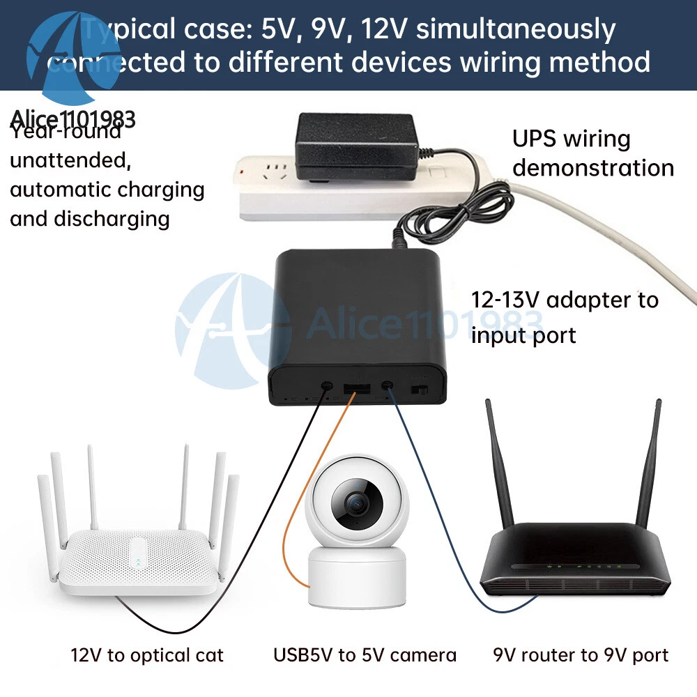 Visit store Items for sale About us Product Details Features: 1. Welding-free products, users can disassemble and replace the battery freely. 2.With DC isovoltage UPS function, automatic charge/discharge management without manual participation. 3. Covering optical cats, routers, surveillance cameras, etc. commonly used 5V, 9V, 12V three voltages 4. Strict quality control to ensure long-term stable operation and prolong service life. 5. Compact size, easy to carry, stable performance Parameter: Capacity: loadable battery capacity: 3 * 3.7V * 3400mah = 37 watt-hours; (batteries provided by the user) Output power: Independent output 12V3A, 9V1A, USB5V2-3A without considering UPS input. Whether voltage regulator: not regulated, 3 batteries in series direct output, full 12.6V, low voltage protection 8V, voltage increases or decreases with the amount of electricity Application Type: This product is designed for MODEM, router, surveillance camera equipment specially designed Battery type: 3.7V cylindrical 18650 battery UPS input voltage: 12-13V range charging, can not exceed 13V, below 12.6V can not be filled, recommended 12.7V UPS input power: input adapter power must meet >= load power + internal battery charging power of 6 watts; the greater the stability of the larger power Protection circuit parameters: overcharge protection: 4.25V * 3; low voltage protection: 2.75V * 3; overcurrent detection voltage: 0.1V +-0.025V Temperature range:-20~60℃ DC interface standard: DC5.5*2.1mm (inside positive and outside negative) Precautions: 1. Spring to the negative pole, copper to the positive pole, do not install the reverse, install the reverse will burn! 2. The use of high-quality batteries and require strict pairing, composed of battery packs of each individual battery should be the same parameters as far as possible! 3.This product can only use flat 18650 batteries, pointed batteries longer than 2MM, can not be used! Package include: Welding-free battery box * 1 Payment Method Shipping Policy Returns & Refund Policy Feedback Payment Method EBAY Managed Payment. But we only Accept your Ebay Address , please Make sure it's 100% right. Payment must be received in 5 business days of auction closing. Please leave note for your special request (e.g. Colors or Size) in PayPal when you pay the order. Any special request cannot be accepted after 24 hours of payment, because most of orders will be processed instantly and same day dispatched. Shipping Policy 1. We only ship to the confirmed address provided by eBay. please make sure your ebay address is 100% matches the address you would like us to ship to. If not, please let us know before we sent you the package, or we will not be responsible for any loss. hope you could understand. 2. Orders will be processed instantly and dispatched within 1-3 business days except hoilday, so we do NOT accept any email/message note after you place orders. 3. All package need to wait 30 days,Please take care it.Less than 30 days,we can't take a refund. Returns & Refund Policy All package need to wait 30 days (US only n eed 7-10 days) , Please take care it.Less than 30 days,we can't take a refund . If the item is defect when you receive it or you are not satisfied with it, please return it within 14 days for a replacement or money back. But the items must be back in factory condition. Please keep in touch with us and double check the return address before you return it. If is item is defective in 12 months, you can return it to us. We will send you a new replacement after receiving the defective item. Feedback We maintain high standards of excellence and strive for 100% customer satisfaction! Feedback is very important to us. We request that you keep in touch with us immediately BEFORE you give us neutral or negative feedback, so that we can satisfactorily address your concerns.