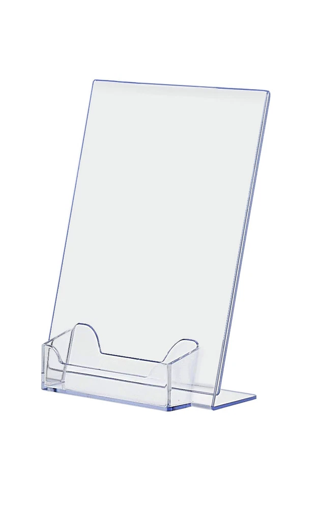 5”W x 7”H Side Load Slanted Table Tent Sign Holder with Business Card Pocket Product Features: Holds 5"W x 7"H literature and 3.5”W x 2”H standard sized business cards, appointment, membership, gift or rewards cards Overall Dimensions: 5”W x 2.75”D x 7”H Slanted Combination Tabletop Sign Holder with Business Card Pocket Display on desks, tables, and counters in restaurants, bars, retail stores, trade show booths, hotels and other business locations Side loading makes sign changes quick and easy Proudly made in the USA with premium high quality acrylic Tired of walking into professional business offices, restaurants or retail shops and seeing paper signs taped to the wall or business cards all over the counters? Don’t be that person, how tacky! Here at Marketing Holders you can display your announcements for a low price! This 5" x 7" slant back advertising sign frame is perfect for displaying sales signage, graphic images, printed media or to showcase documents that you would like to have on display in your retail shop or office. This combination holder also holds a set of your business cards in the attached clear pocket. Use these holders to inform your customers or clients about upcoming sales or general informational notices and distribute business contact information. These are lightweight and portable which means they can be placed in the reception area of any business or hotel. Perfect for use in salons, spas, doctors offices or medical facilities to hold appointment reminder cards. These desktop display stands can be used practically anywhere, from trade shows to conventions, expos, weddings or any other events. They are easy to use, simply slide your paper sign graphics flier or any other printed literature anywhere you want the general public and or office staff to see them. Our products can be and have been purchased for businesses like offices, retail stores, shopping centers, salons, medical facilities, doctors office, hospitals, clinics, malls, apartment buildings, colleges, schools, City Hall, government buildings, city buildings, stores, warehouses, home and work spaces. Easy to use, easy to clean – each frame has an opening to easily insert announcements, business cards, advertisements, menus and any other kind of information that you want to display. Done with them for now? Just wipe them clean with a soft cloth and store until next time! These countertop sign holders are made to use over and over and over again. The light acrylic material is highly durable. These see through table display frames ensure that your printed media stays clean and easily viewable and business cards are easy to access. *All sizes are approximate *Tolerances: Thickness +/- 10% Return Policy 30 Day Return Policy: By purchasing our product you are agreeing to our return policy, so please read! Perfect returns (NO used merchandise) on stock items are accepted within 30 days of delivery. Any visual appearance that the product is used will result in 00 refund. All returns are subject to a 20% inspection, re-boxing and restocking fee. All returns must be repacked and returned in their original packaging for protection. (MUST return on pallet if received on Pallet) Packages being returned should be insured by you for your protection No credits are issued on shipping costs. Absolutely no returns accepted on custom order displays, including orders with custom text, imprinting or graphics Return Policy 30 Day Return Policy: By purchasing our product you are agreeing to our return policy, so please read! Perfect returns (NO used merchandise) on stock items are accepted within 30 days of delivery. Any visual appearance that the product is used will result in 00 refund. All returns are subject to a 20% inspection, re-boxing and restocking fee. All returns must be repacked and returned in their original packaging for protection. (MUST return on pallet if received on Pallet) Packages being returned should be insured by you for your protection No credits are issued on shipping costs. Absolutely no returns accepted on custom order displays, including orders with custom text, imprinting or graphics All packages must be opened and inspected within 72 hours of delivery, we must be notified immediately if there are any damages to your product. Photos are required for refunds or replacements.