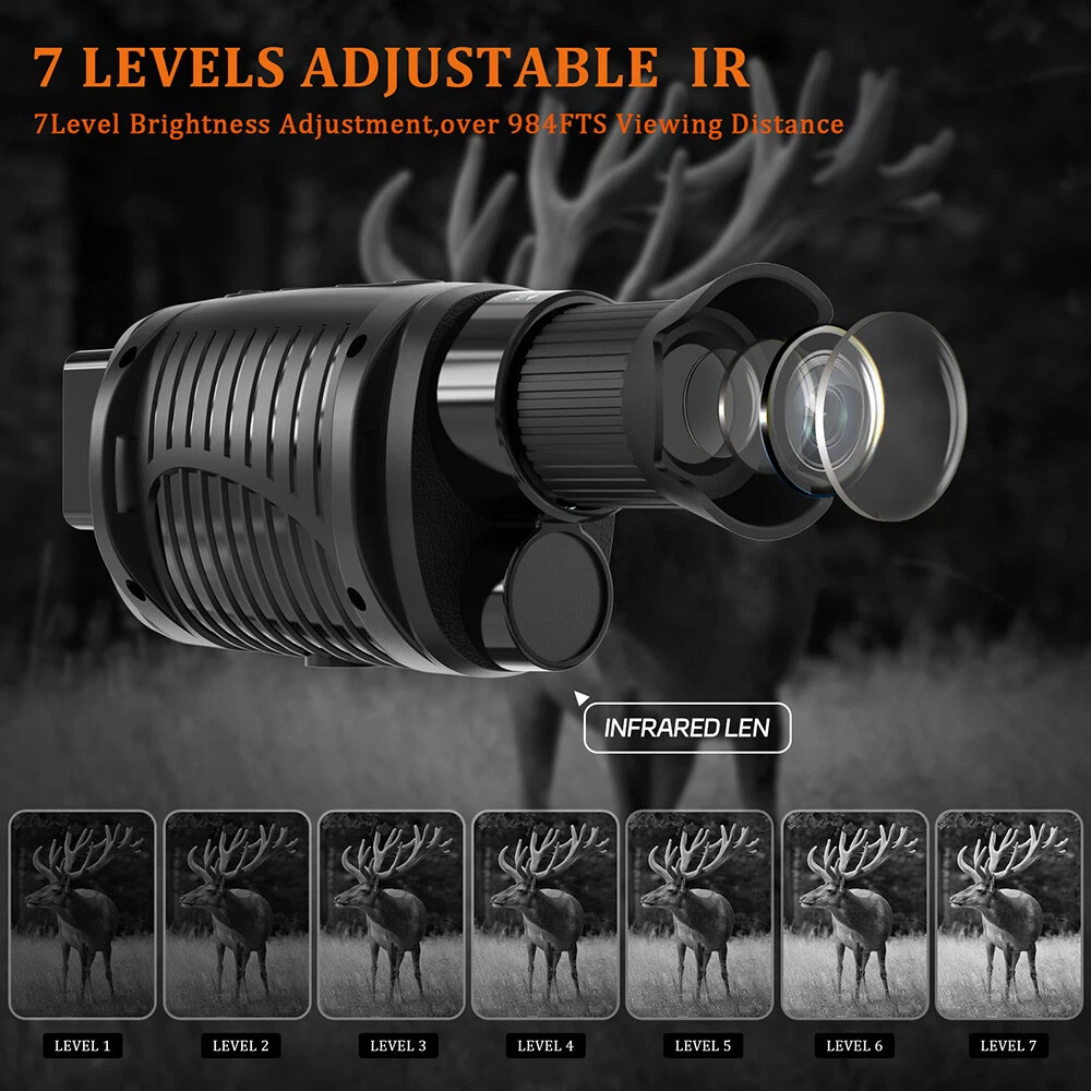 5X Digital Zoom Monocular Night Vision Goggles Visión Nocturna Caza Cámara NVG Características 1. Observación de larga distancia por la noche con lámpara infrarroja de gran calidad 2. Sensor de alto nivel, luz débil observación remota 3. El proceso de observación puede ser fotografiado / grabado en vídeo 4. La máquina es compacta y fácil de transportar Descripción Resolución de la foto: 10MP (3648 * 2736)/8MP (3456 * 2448)/5MP (2592 * 1956)/3MP (2048 * 1536) VGA (640 * 480) Resolución de vídeo: FHD (1920x1080@30FPS), HD (1280x720@30FPS) Zoom digital: 5X veces Almacenamiento: tarjeta TF de hasta 128 GB Formatos de archivo Foto: JPG; Video: AVI Distancia de visión en completa oscuridad: unos 250-300 m Baja luz o distancia de observación diurna: 3 metros hasta el infinito Lente: F1.2 gran apertura, f = 25 mm Interfaz USB: TIPO C 2.0 Pantalla de visualización: pantalla interior de 1,54 pulgadas (240 x 240) de alta definición TFT LCD Fuente de alimentación: ¿batería de litio incorporada de 2000 mAh? ¿Cable de transporte incluido? Lente: F1.2 mayor apertura f = 25 mm Ángulo de la lente: FOV = 10 ° Micrófono incorporado: no Altavoz: no Apagado automático: 1 min/2 min/3 min/5 min/10 min/OFF IR LED: 3W, 850nm fuerte foco infrarrojo 7 grados de ajuste infrarrojo Estampillas de fecha: soporte para establecer fecha y hora. Sello de fecha y hora en archivos de fotos y videos. Botones de operación: 5 botones Temperatura de funcionamiento: '-20 a +60 Temperatura de almacenamiento: '-30 a +70 OSD Idioma: English, Français, Español, Português, Nederlands, Italiano, 中文, Русский язык, 日本語 Date Stamps :Support to set date and time. Date and time stamp on photo and video files. Operation Buttons: 5 buttons(Up,Down,Menu,Power On/off,Mode/Menu) Mode: Photo,Video,Playback Operation Temperature: '-20 to +60 Storage Temperature:'-30 to +70 Dimensions & Weight: 140X43X33MM, 193G Package includes: 1* Instructions 1* USB cable 1* Cloth bag 1* Wrist strap 1* Lens cloth 1* Night Vision Device 1* 32G Memory card 1* Card reader El paquete incluye Monocular, cable USB, manual de usuario, bolsa de almacenamiento, tarjeta de 32 GB con lector Payment Shipping Return Contact us Feedback Payment 1.You can checkout and pay immediately after the auction ends or you complete the purchases. 2.If you need an eBay invoice sent to you by Email, please contact us after making payments. Shipping 1.Please allow up to 1-2 days for shipping arrangement after payment confirmed (weekend & holiday excluded), if you need the item urgently, please contact us for detail before purchase. 2.We ship items only to the ebay address. We will not be responsible for any loss because of wrong or undeliverable shipping address. 3.We do not offer in store pick up and return service, hope you can understand. Return 1.If you are not satisfied with our products. Please kindly contact us before you open the return request. We provides 30 days Warranty. 2.Please Kindly contact us for the RMA No.and address before returning the item back. Contact us 1.Please email us through "My Messages" or "Contact seller" if you have any question about our listings or your purchasing. 2.Please contact us if you are not satisfied with the item after receive it.You can find the " Ask the seller a question" link on eBay. 3.All replies will be sent to your email, if you don't get response within 1-2 business days, pls check your My messages' in case your email provider has an overly-aggressive spam filterblocking eBay's emails. Please email us AGAIN. Feedback 1. Please contact us before leaving a neutral or negative feedback. We would try our best to help you solve the problem. Please allow us to reply your email within 48 hours. 2.We will provide the service as best as we can, cause the positive feedback is what we are striving for.